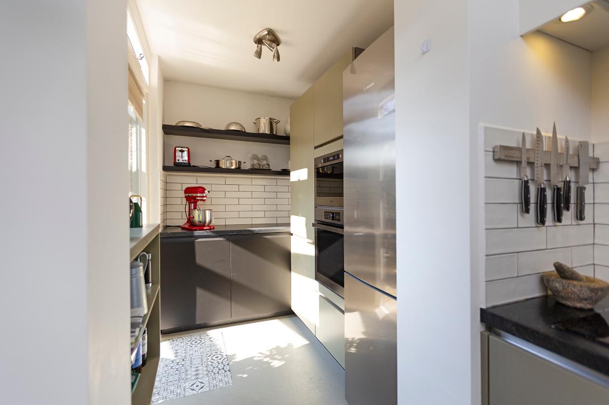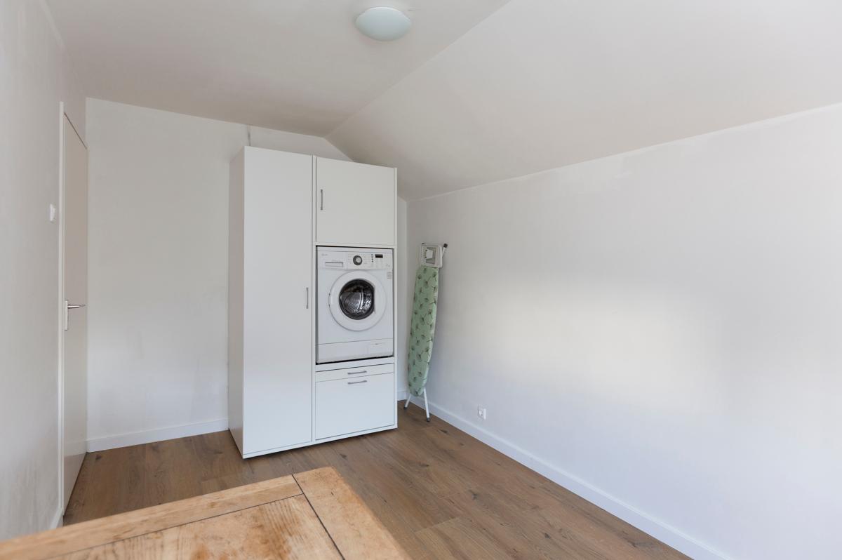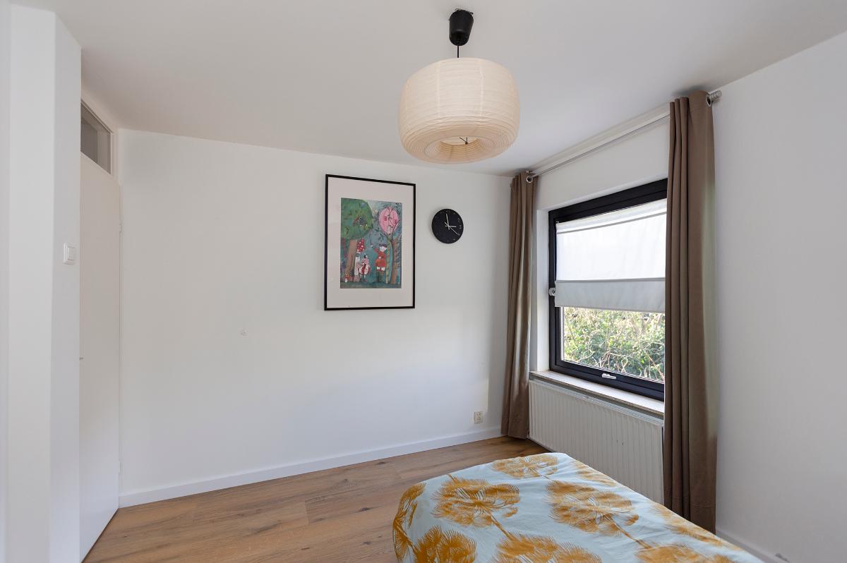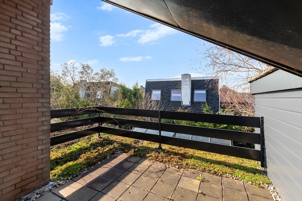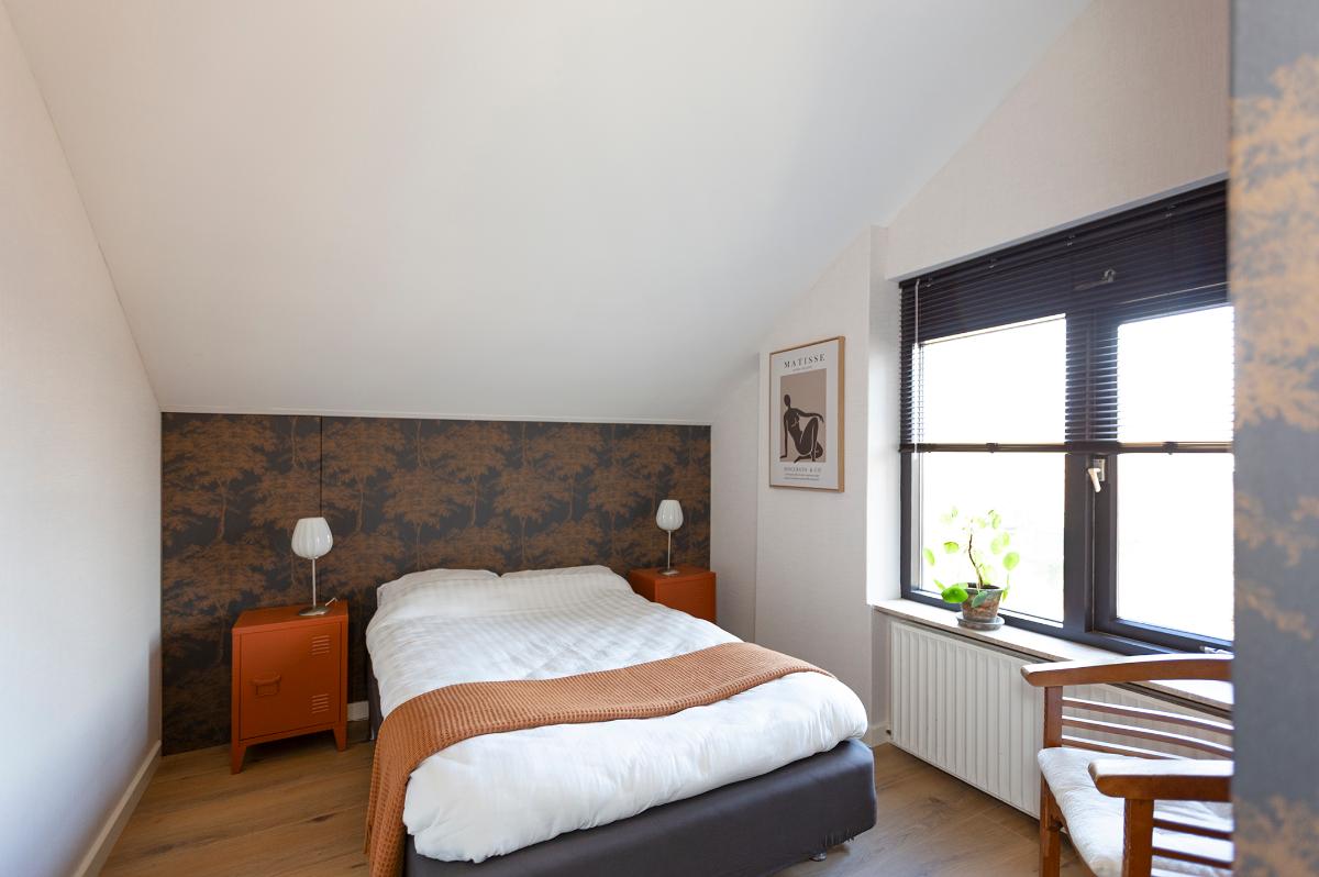 Eerste verdieping: Ruime overloop, kast met opstelplaats combi ketel (Intergas HR combiketel uit 2016). Grote slaapkamer aan de voorzijde met een ruime inloopkast. De badkamer is vanaf de overloop bereikbaar en is voorzien van een inloop douche, 2e toilet, wastafel, design radiator en Velux dakraam. Tweede slaapkamer aan de voorzijde (boven de garage) met bergruimte. 3 slaapkamers aan de achterzijde waarvan 1 met toegang tot het dakterras/balkon met eveneens een grote bergruimte. De slaapkamer aan de achterzijde die grenst aan de badkamer is thans in gebruik als waskamer omdat hier ook de aansluitpunten voor de wasmachine en droger zijn gemaakt. Vanaf de overloop is een luik met Vlizotrap naar de flinke, deels bevloerde flinke bergzolder met een stahoogte van 1,76m onder de nok.