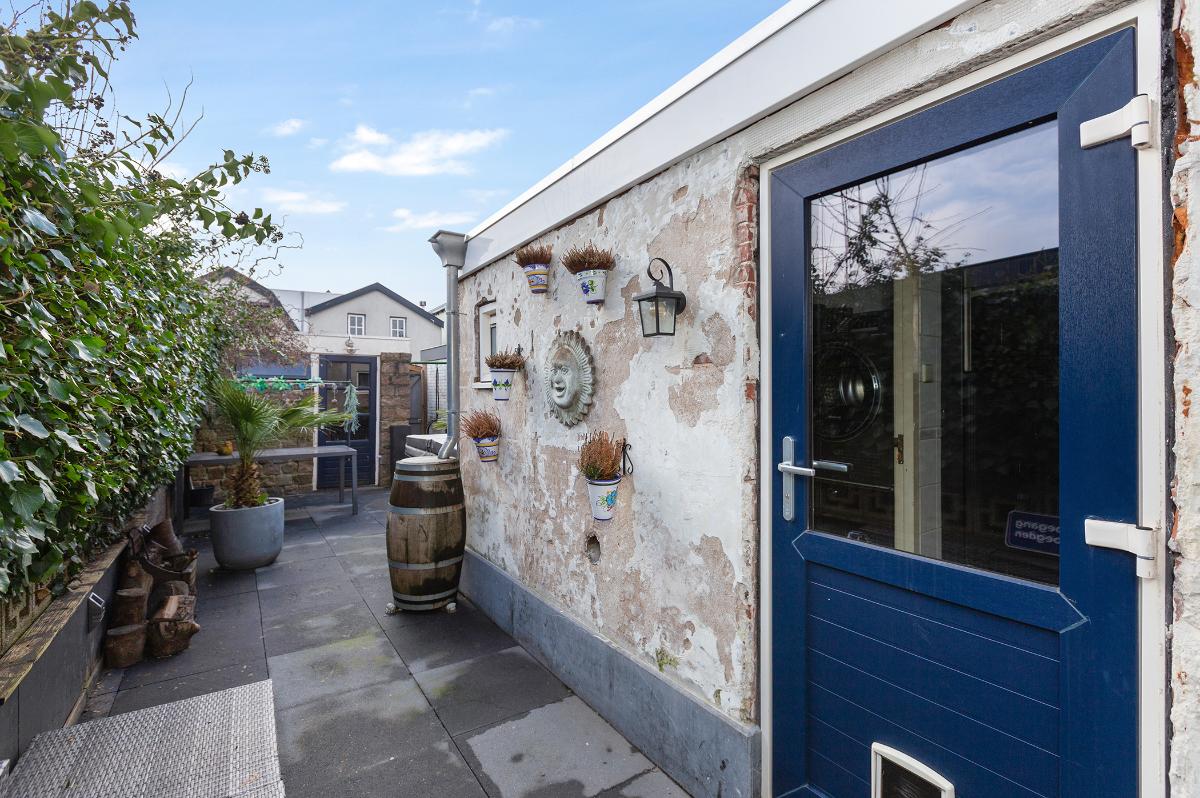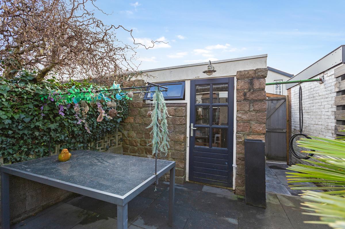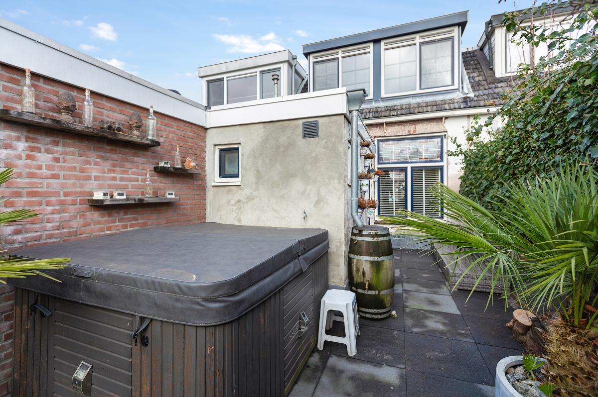 Vanuit de keuken is de deur naar de zonnige achtertuin met een achterom en een stenen berging voorzien van elektra. In de met sierbestrating aangelegde tuin kunt u van 's ochtends tot 's avonds heerlijk genieten van de zon of heerlijk relaxen in de jacuzzi.