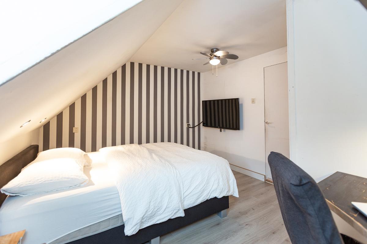 1e verdieping: Vanuit de woonkamer is een open trap naar boven. Er is een ruime ouderslaapkamer aan de voorzijde van de woning met een dakkapel en een vaste kast met louvredeurtjes. Aan de achterzijde van de woning zijn nog een tweetal kamers met een dakkapel over de volle breedte van de woning. In 1 kamer is de opstelplaats voor de cv ketel (Remeha combi ketel (2016). Let op, dit betreft een lease ketel). In de andere kamer is een vaste kast met louvredeurtjes.