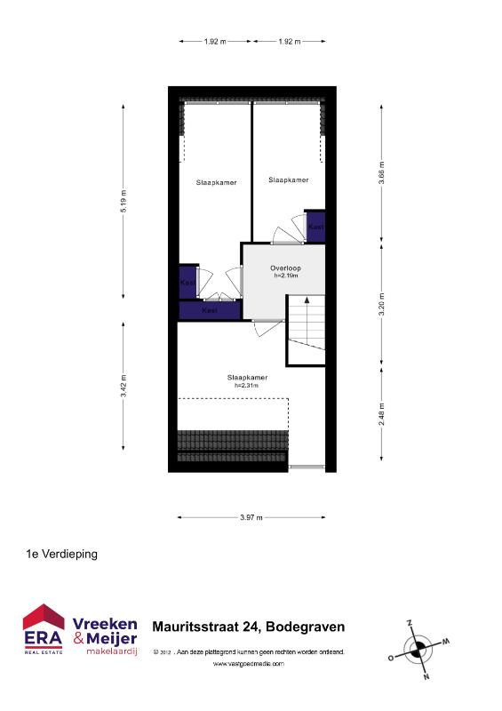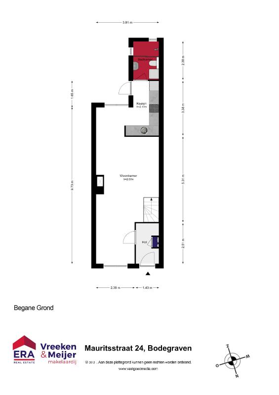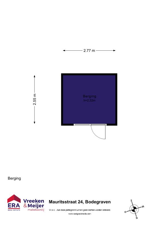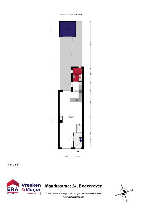 De presentatie is met zorg samengesteld. Bij het ontbreken van informatie of aan eventuele onjuistheden kunnen geen rechten worden ontleend. De woning is opgemeten conform de branche brede meetinstructie, gebaseerd op de norm NEN2580. Aan deze maten kunnen geen rechten worden ontleend. De op de plattegronden genoemde maten zijn slechts indicatief en zijn niet bedoeld voor het bestellen van keuken, sanitair en/of stoffering.