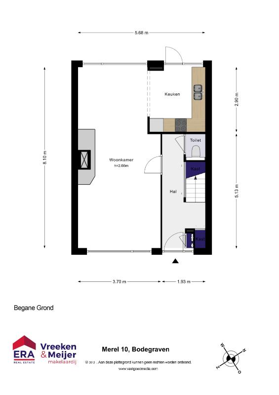 De presentatie is met zorg samengesteld. Bij het ontbreken van informatie of aan eventuele onjuistheden kunnen geen rechten worden ontleend. De woning is opgemeten conform de branchebrede meetinstructie, gebaseerd op de norm NEN2580. Aan deze maten kunnen geen rechten worden ontleend. Op de plattegronden genoemde maten zijn slechts indicatief en zijn niet bestemd om te worden gebruikt voor bestelling van keuken, sanitair en/of stofferingen.