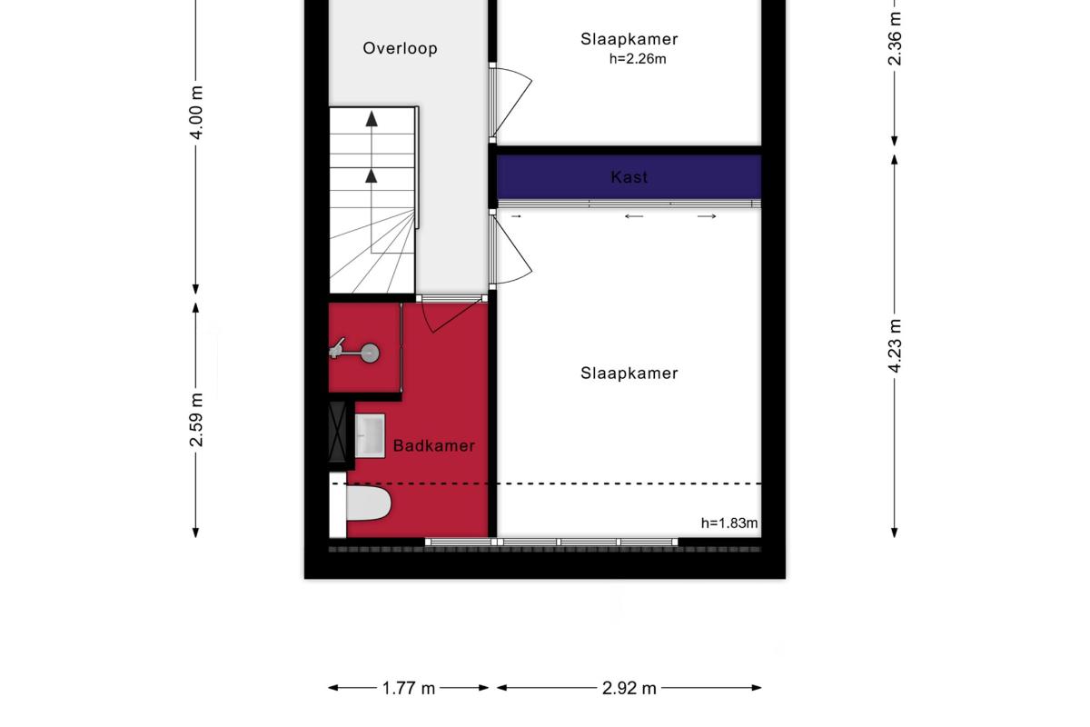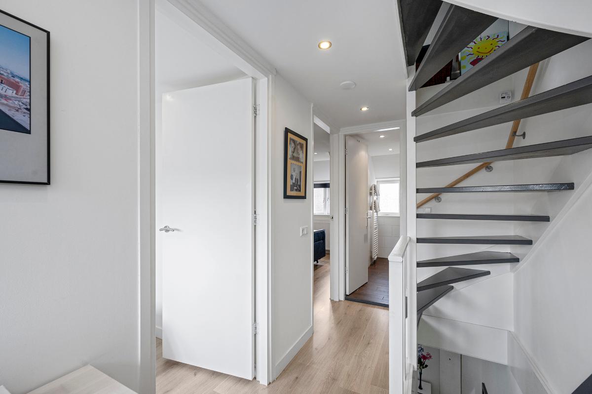 Eerste verdieping: Via de trap in de hal kom je op de eerste etage. Hier tref je de ruime overloop met mogelijkheid voor study-/hobbyhoek, twee slaapkamers en de badkamer aan. De slaapkamers en de overloop zijn voorzien van een mooie laminaatvloer. Beide slaapkamers zijn strak afgewerkt en hebben inbouwspots. De grote slaapkamer aan de voorzijde heeft een praktische kastenwand. De badkamer beschikt over een royale doucheruimte, vaste wastafel met ombouw, spiegel, zwevend toilet en een designradiator. Tevens heeft deze ruimte een raam om extra te ventileren.