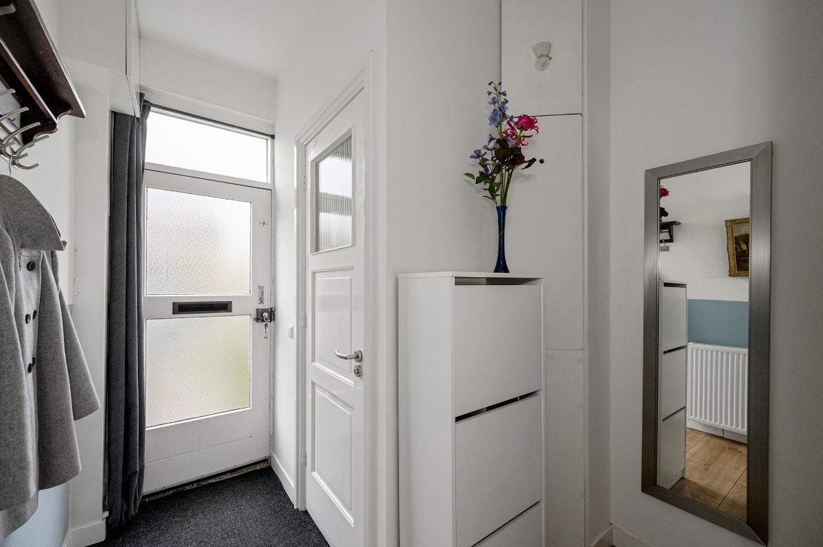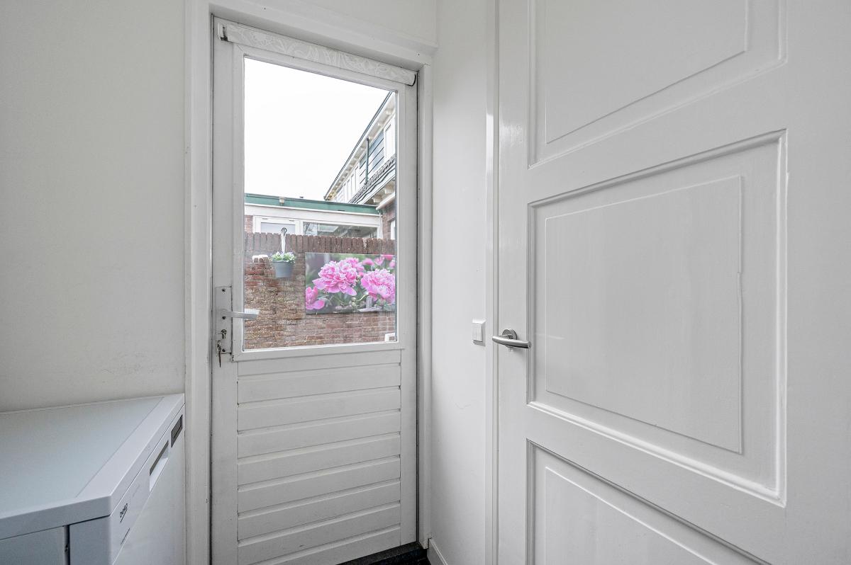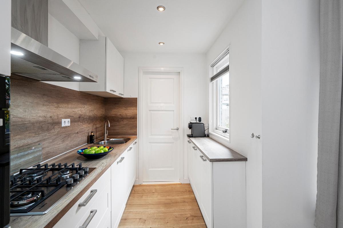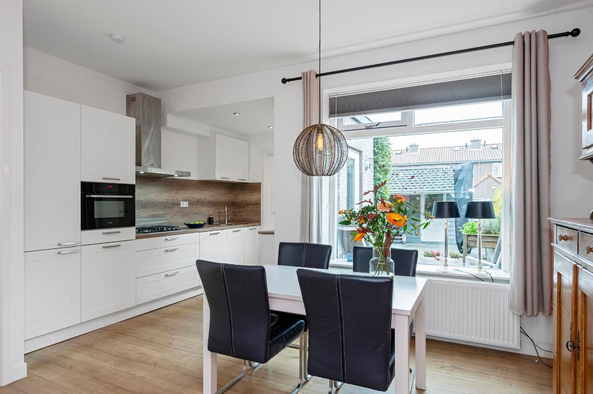 Begane grond: Via de voortuin, wat voor de woningen in de Prinsenstraat uniek is, kom je in de hal. Praktische hal met meterkast (moderne groepenkast), moderne toiletruimte, trapopgang naar de verdieping en de toegang tot de sfeervolle woonkamer. De woonkamer is onderverdeeld in een smaller (voor) en breder (achter) gedeelte waardoor het tot een tuingerichte living is in te delen. De woonkamer is voorzien van een laminaat vloerafwerking en heeft strakke gestuukte wanden en plafond. De iets verdiepte ruimte onder de trapopgang wordt benut als provisiekast. Vanuit de kamer loop je zo naar de open keuken welke in 2020 is vernieuwd en zo is ingericht dat er aan twee zijden een keukenblok is en voorzien van een 4 pits gaskookplaat, afzuigkap, combi-magnetron, vaatwasser, koel-vriescombinatie en een close-in boiler. Het raam geeft een prettige hoeveelheid licht op het werkgedeelte. Vanuit de keuken kom je in de bijkeuken waar de wasmachine en droger geplaatst zijn en via de achterdeur de tuin te bereiken is.