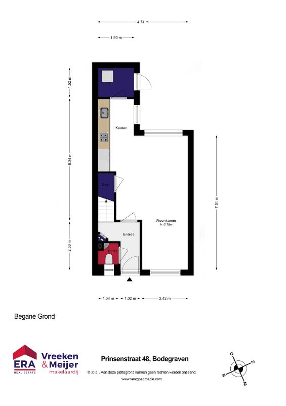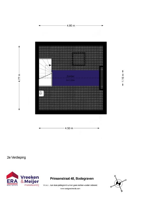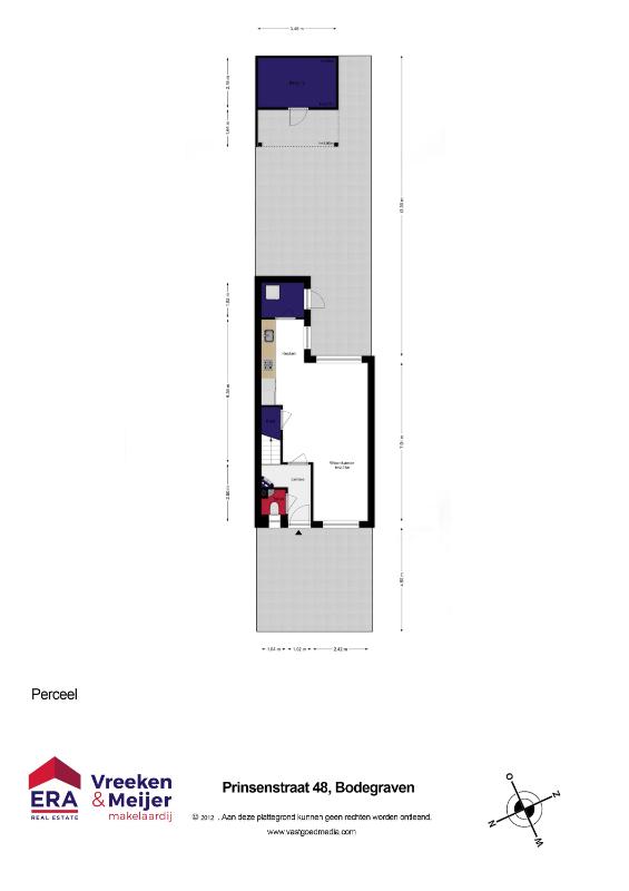 De presentatie is met zorg samengesteld. Bij het ontbreken van informatie of aan eventuele onjuistheden kunnen geen rechten worden ontleend. De woning is opgemeten conform de branchebrede meetinstructie, gebaseerd op de norm NEN2580. Aan deze maten kunnen geen rechten worden ontleend. De op de plattegronden genoemde maten zijn slechts indicatief en zijn niet bedoeld voor het bestellen van keuken, sanitair en/of stoffering.