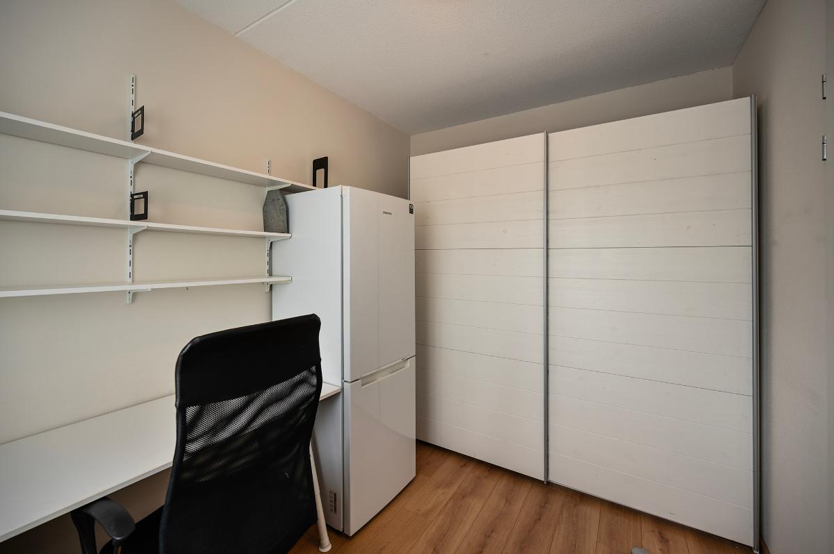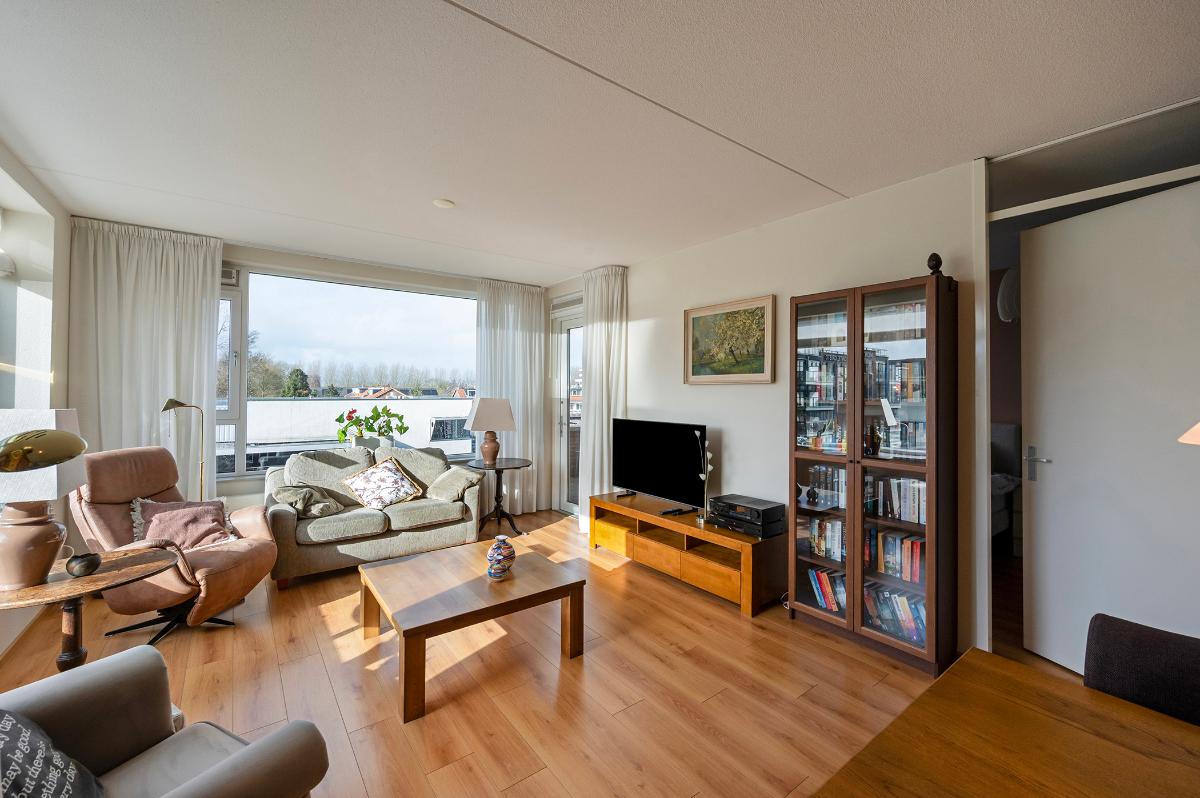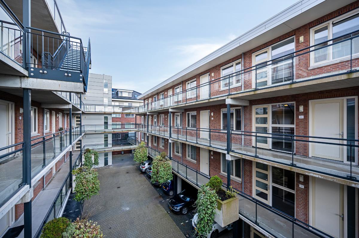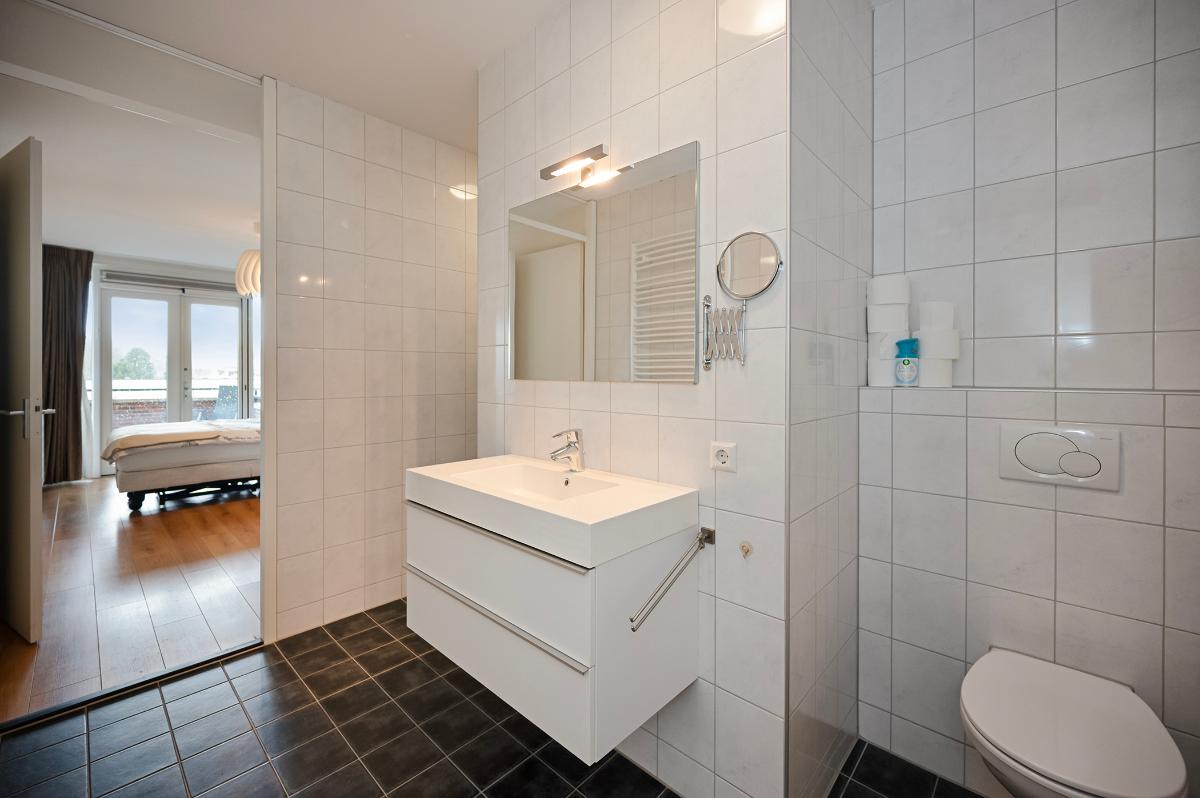 Wonen op de derde woonlaag (2e verdieping): Entree van de woning, brede gang met een moderne meterkast met voldoende groepen, een toilet met fonteintje, 2 slaapkamers aan de galerij-zijde, een bergkast met de opstelplaats voor de cv ketel (Intergas HR combi ketel uit 2025) en aansluitpunt voor de wasmachine en droger. De ruime badkamer is voorzien van een 2e toilet, wastafel meubel alsmede een inloop douche. Zowel vanuit de woonkamer als de badkamer is de toegang tot de 3e slaapkamer. Deze ruimte heeft een deur naar het balkon/terras. De lichte en prettige woonkamer heeft mede vanwege het zij-raam een fraai en ver uitzicht door de Willem de Zwijgerstraat. In het woongedeelte is eveneens een deur naar het balkon/terras. De keuken is geïntegreerd in de woonkamer en is voorzien van een ingebouwde koelkast, combi magnetron, inductie kookplaat, afzuigkap (recirculatie), vaatwasser en carrousel kast .