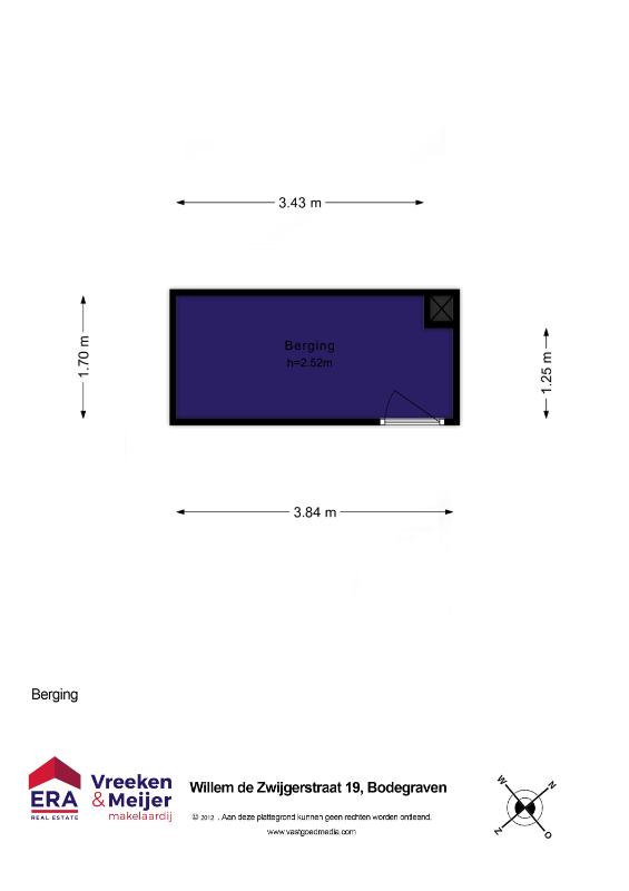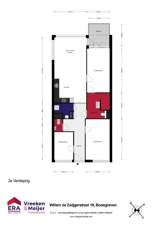 De presentatie is met zorg samengesteld. Bij het ontbreken van informatie of aan eventuele onjuistheden kunnen geen rechten worden ontleend. De woning is opgemeten conform de branche brede meetinstructie, gebaseerd op de norm NEN2580. Aan deze maten kunnen geen rechten worden ontleend. De op de plattegronden genoemde maten zijn slechts indicatief en zijn niet bedoeld voor het bestellen van keuken, sanitair en/of stoffering.
