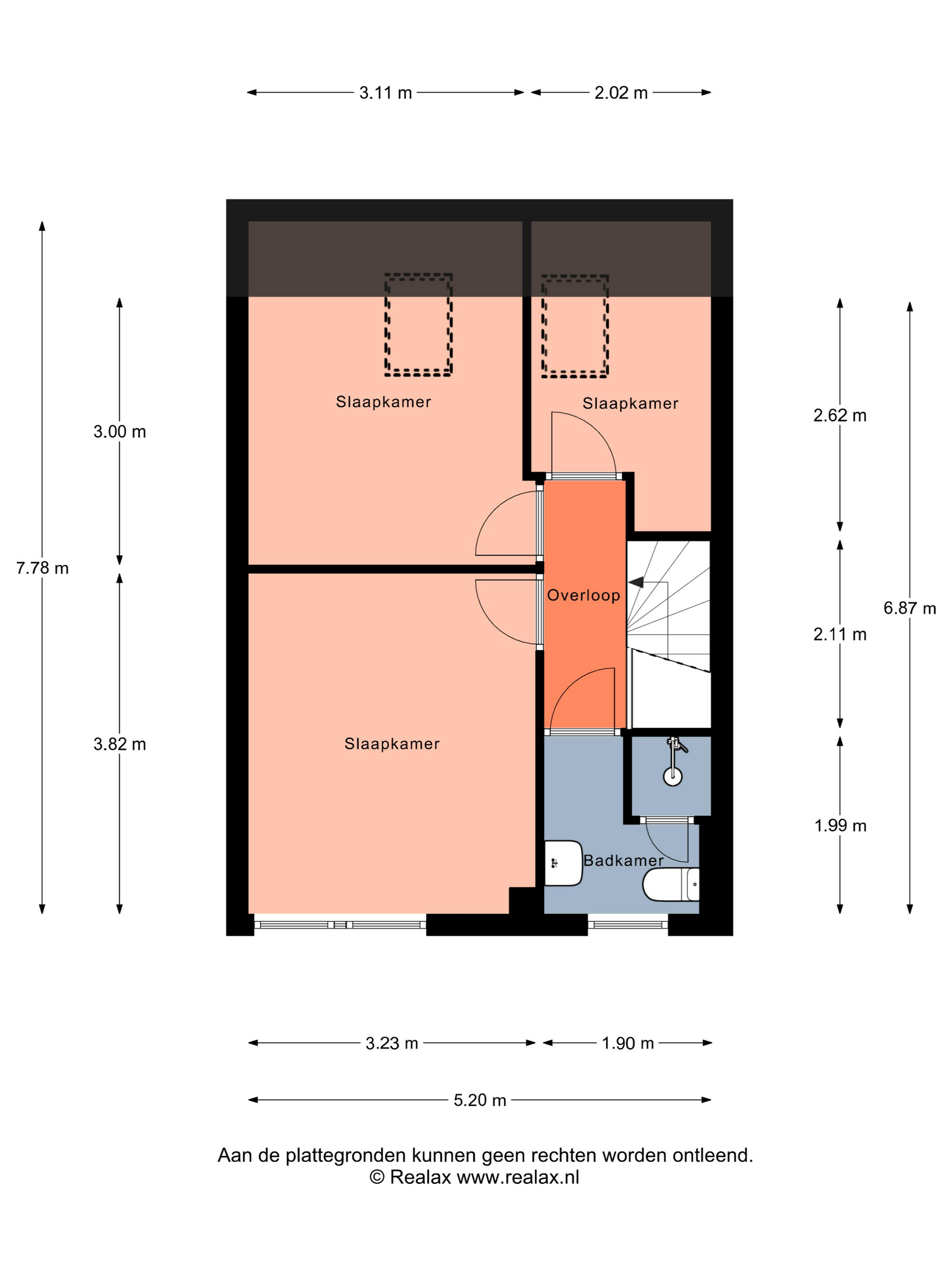 Indeling: Begane grond: entree, hal, meterkast, toilet, trapopgang, open keuken in een U-vormige opstelling voorzien van inbouwapparatuur, tuingerichte woonkamer met provisiekast en toegang tot de tuin. 1e verdieping: overloop, 3 slaapkamers, badkamer met wastafel, toilet en douche. 2e verdieping: middels vlizotrap bereikbare bergzolder met technische opstelling.