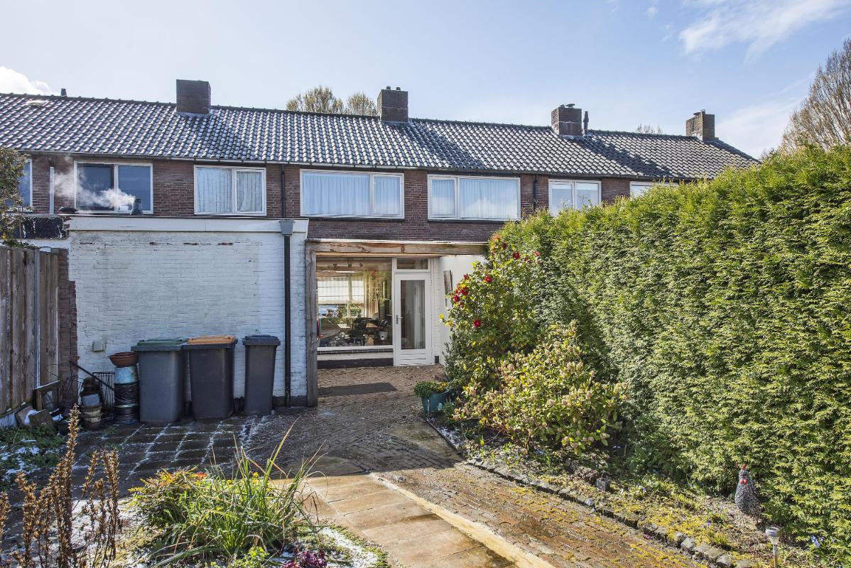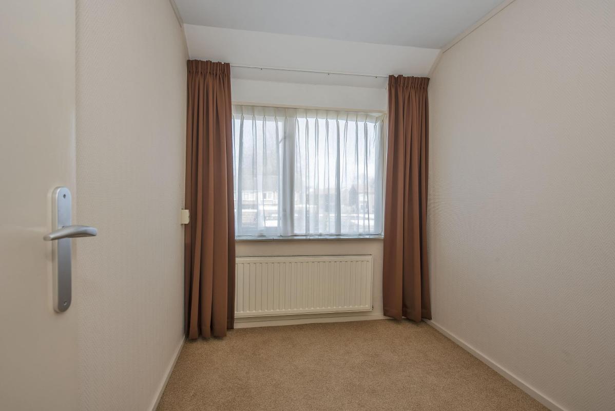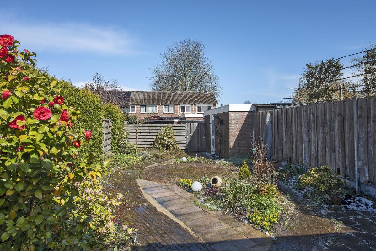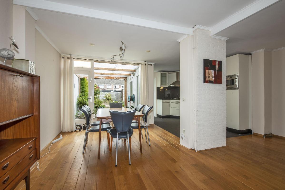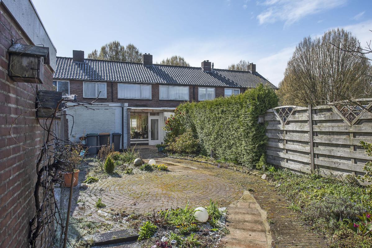Indeling: Begane grond: entree, toilet met fontein, meterkast en praktische trap-/provisiekast, uitgebouwde woonkamer voorzien van een fraaie parketvloer, eethoek met deur naar de tuin/overkapping, open keuken voorzien van 4-pits gaskookplaat, afzuigkap, combi- oven/magnetron, koelkast en vaatwasser, bijkeuken met cv-opstelling en opstelling wasapparatuur, en toegang tot achtertuin. 1e verdieping: overloop, 3 slaapkamers allen voorzien van vaste bergruimte, waarvan de slaapkamer aan de voorzijde tevens beschikt over een wastafel en rolluik, eenvoudige doucheruimte met douche en wastafel. Zolder: middels vlizotrap bereikbare bergzolder.
