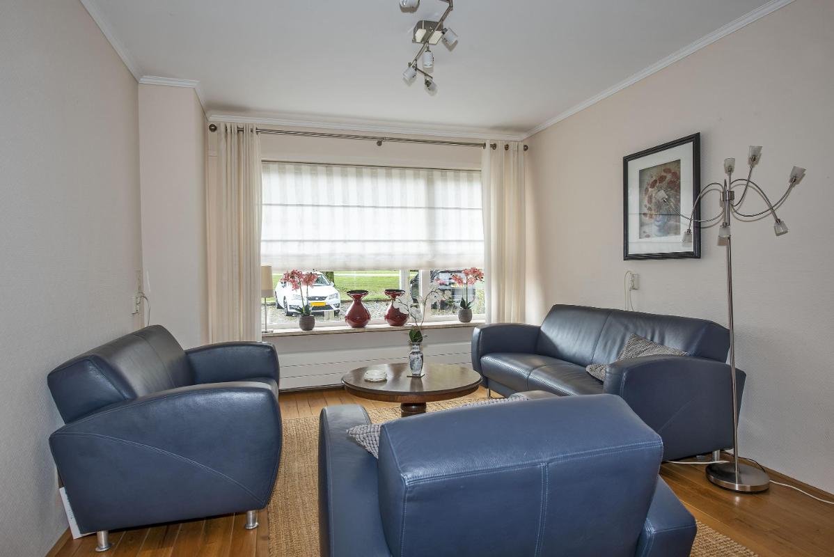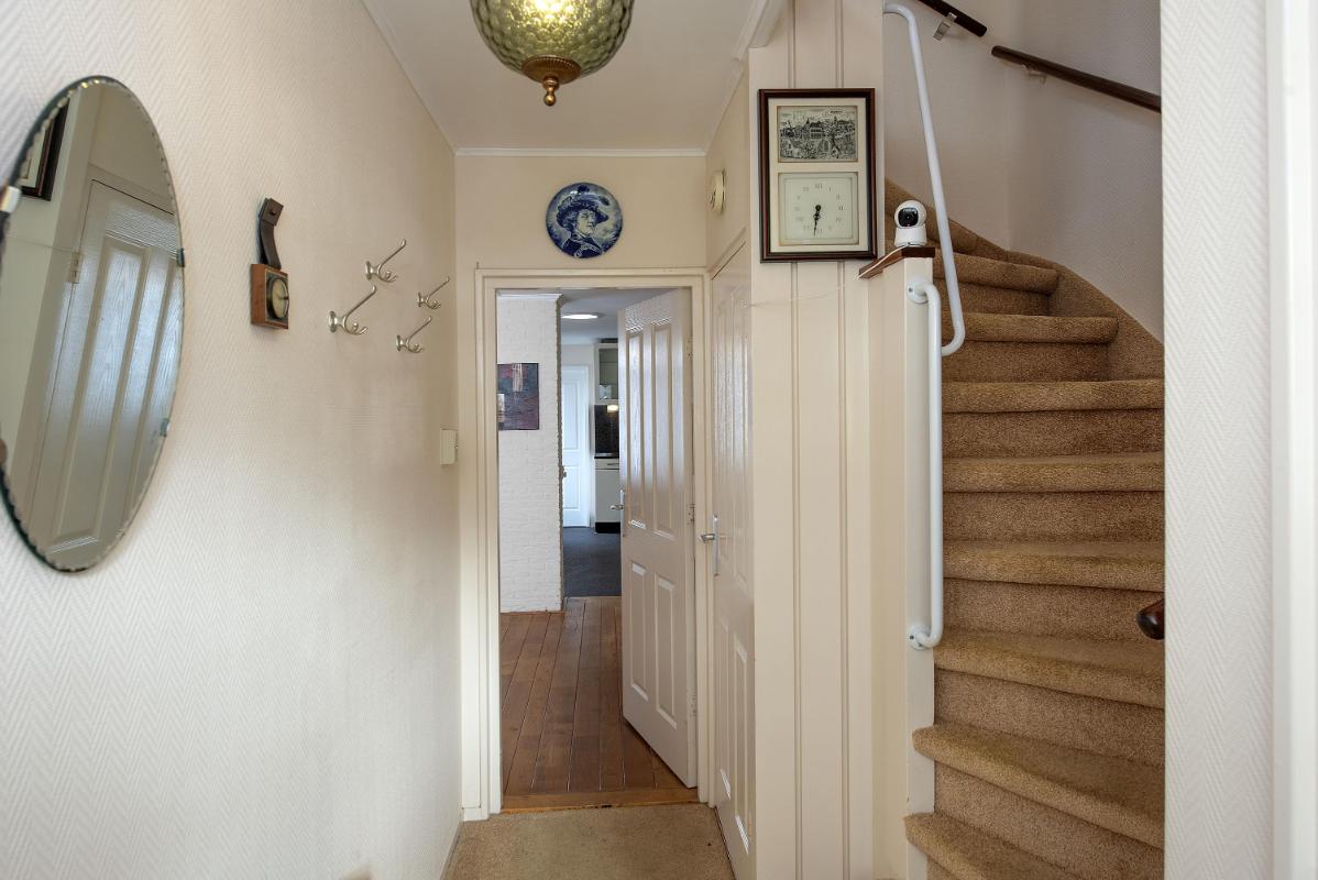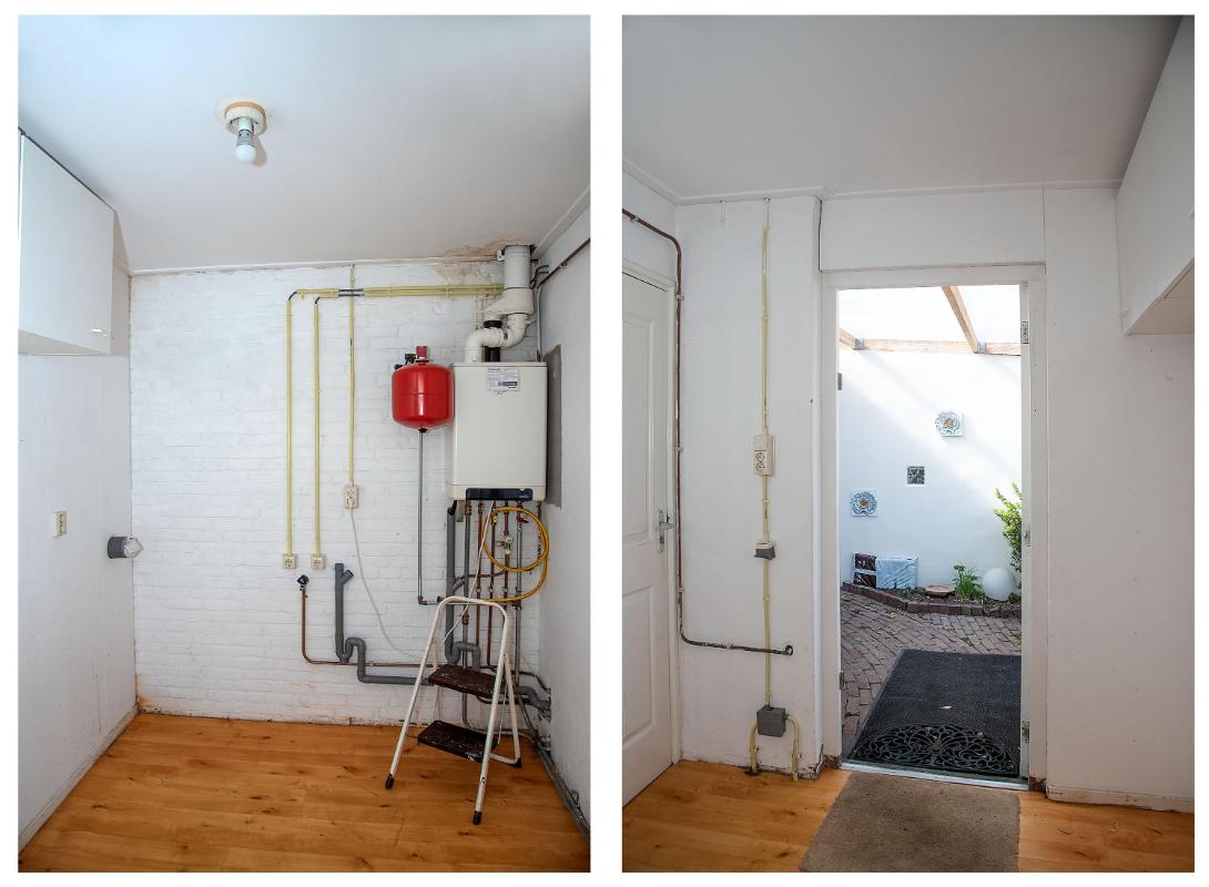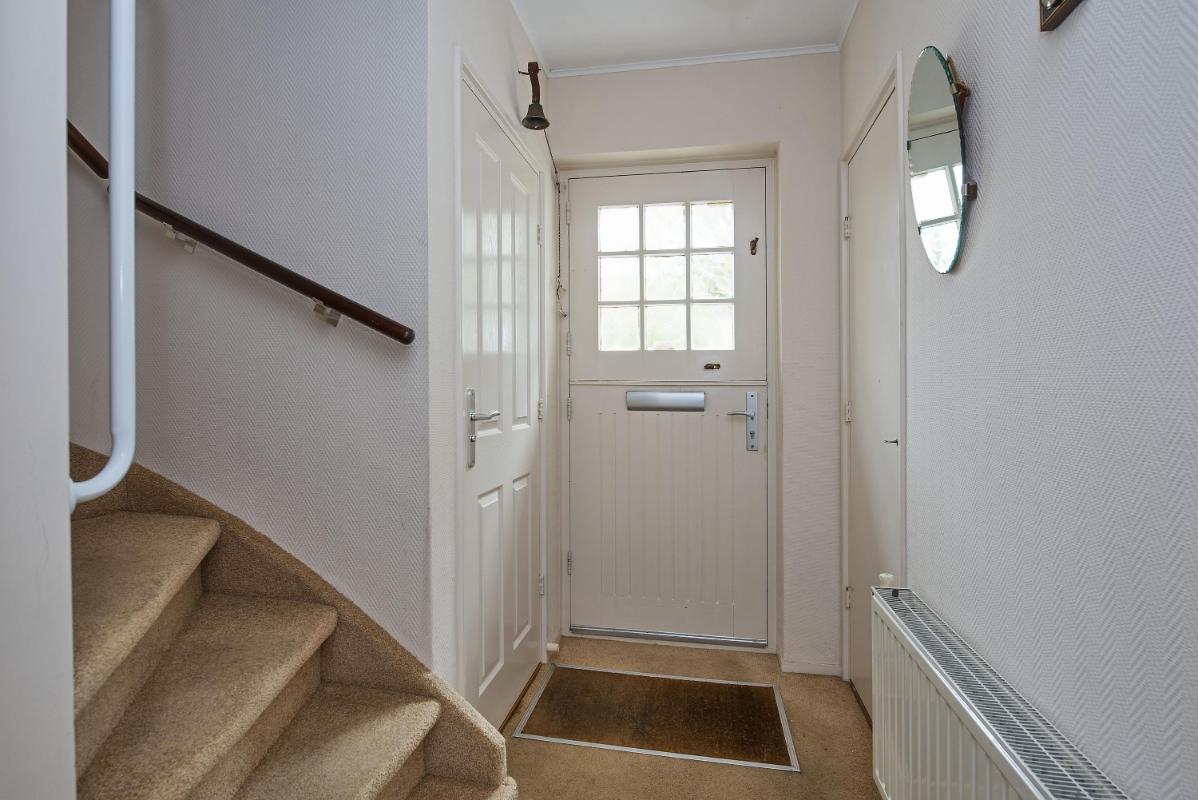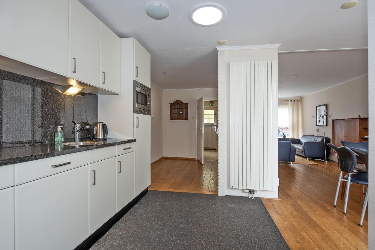 Indeling: Begane grond: entree, toilet met fontein, meterkast en praktische trap-/provisiekast, uitgebouwde woonkamer voorzien van een fraaie parketvloer, eethoek met deur naar de tuin/overkapping, open keuken voorzien van 4-pits gaskookplaat, afzuigkap, combi- oven/magnetron, koelkast en vaatwasser, bijkeuken met cv-opstelling en opstelling wasapparatuur, en toegang tot achtertuin. 1e verdieping: overloop, 3 slaapkamers allen voorzien van vaste bergruimte, waarvan de slaapkamer aan de voorzijde tevens beschikt over een wastafel en rolluik, eenvoudige doucheruimte met douche en wastafel. Zolder: middels vlizotrap bereikbare bergzolder.