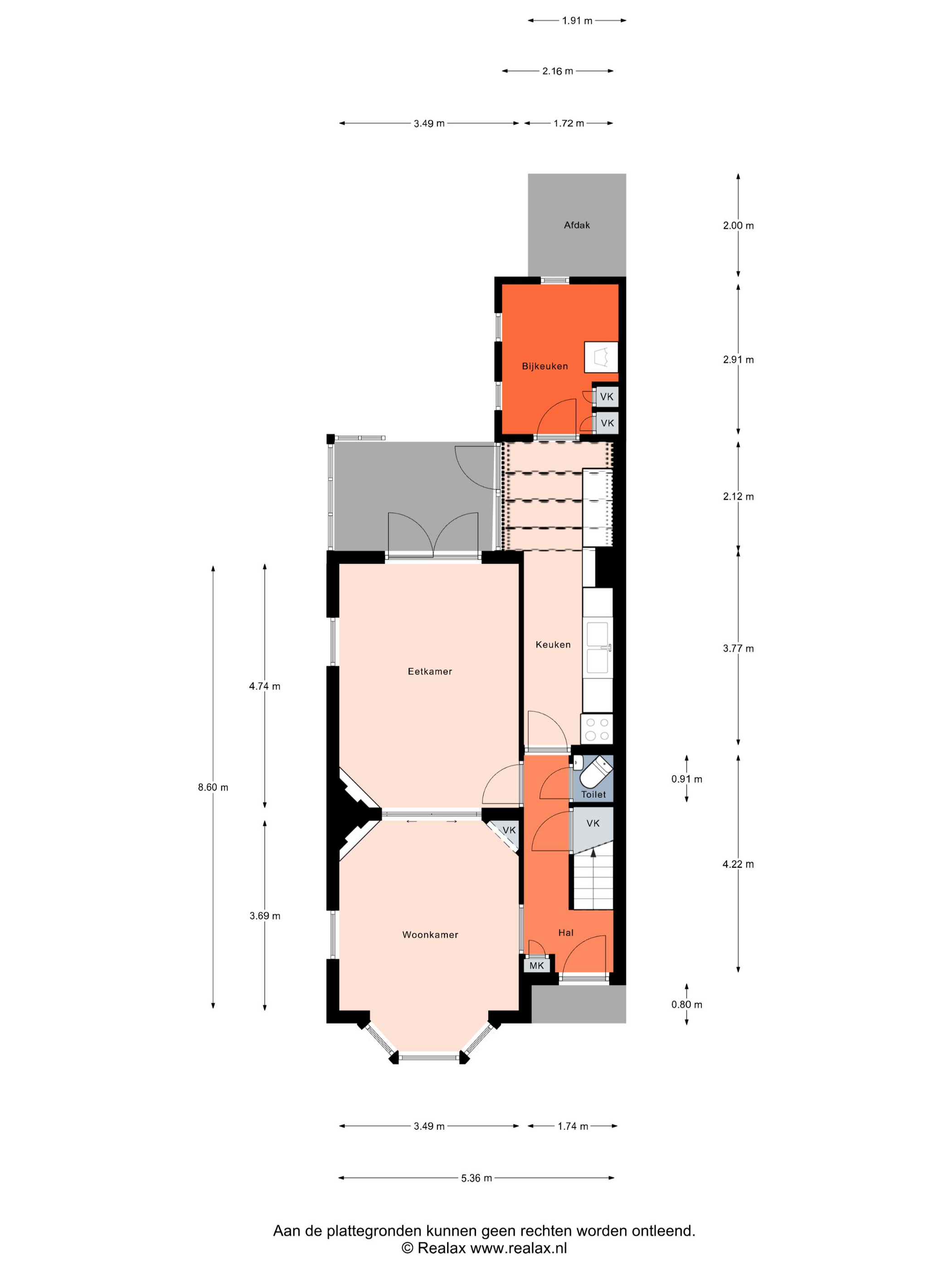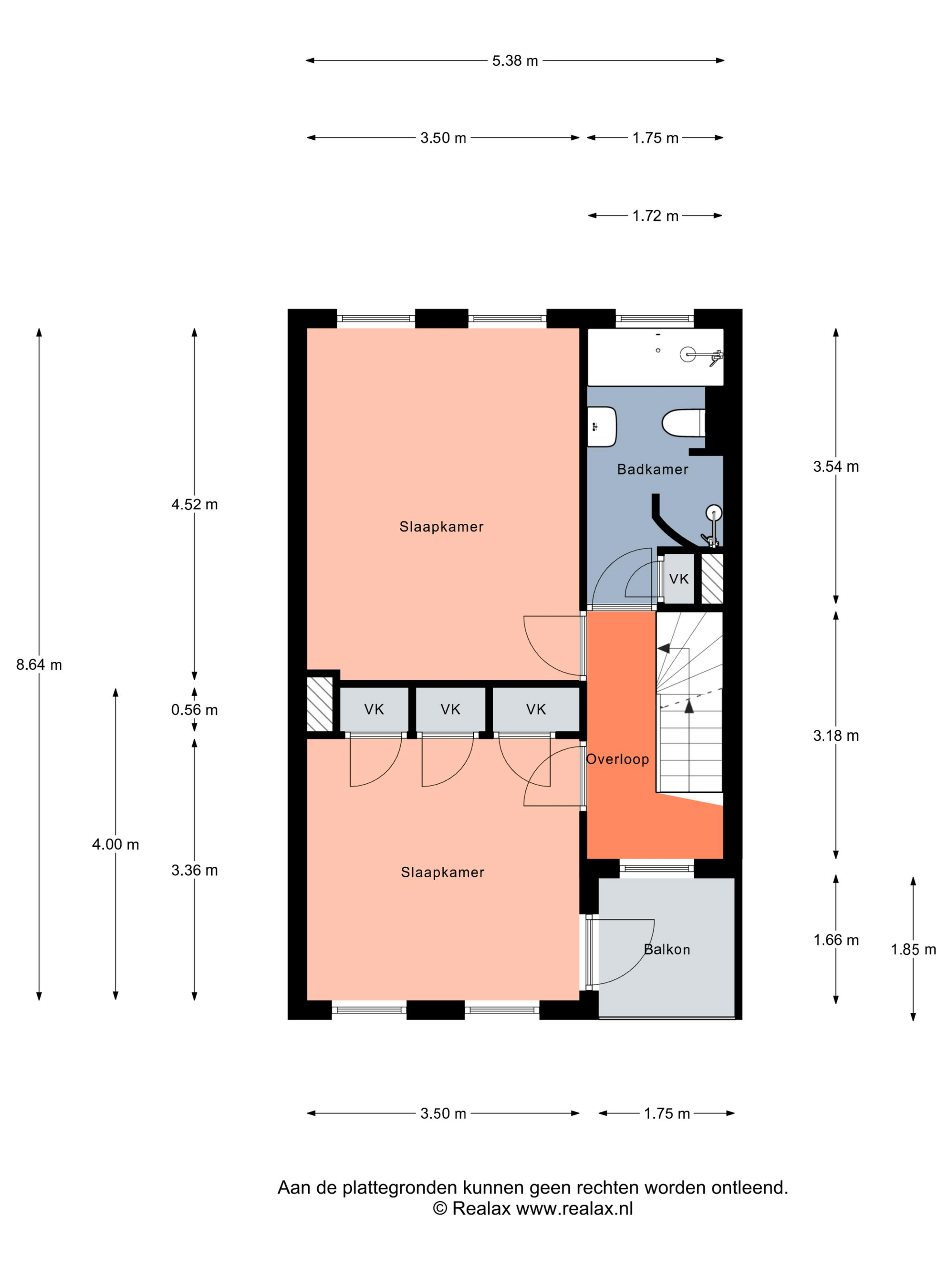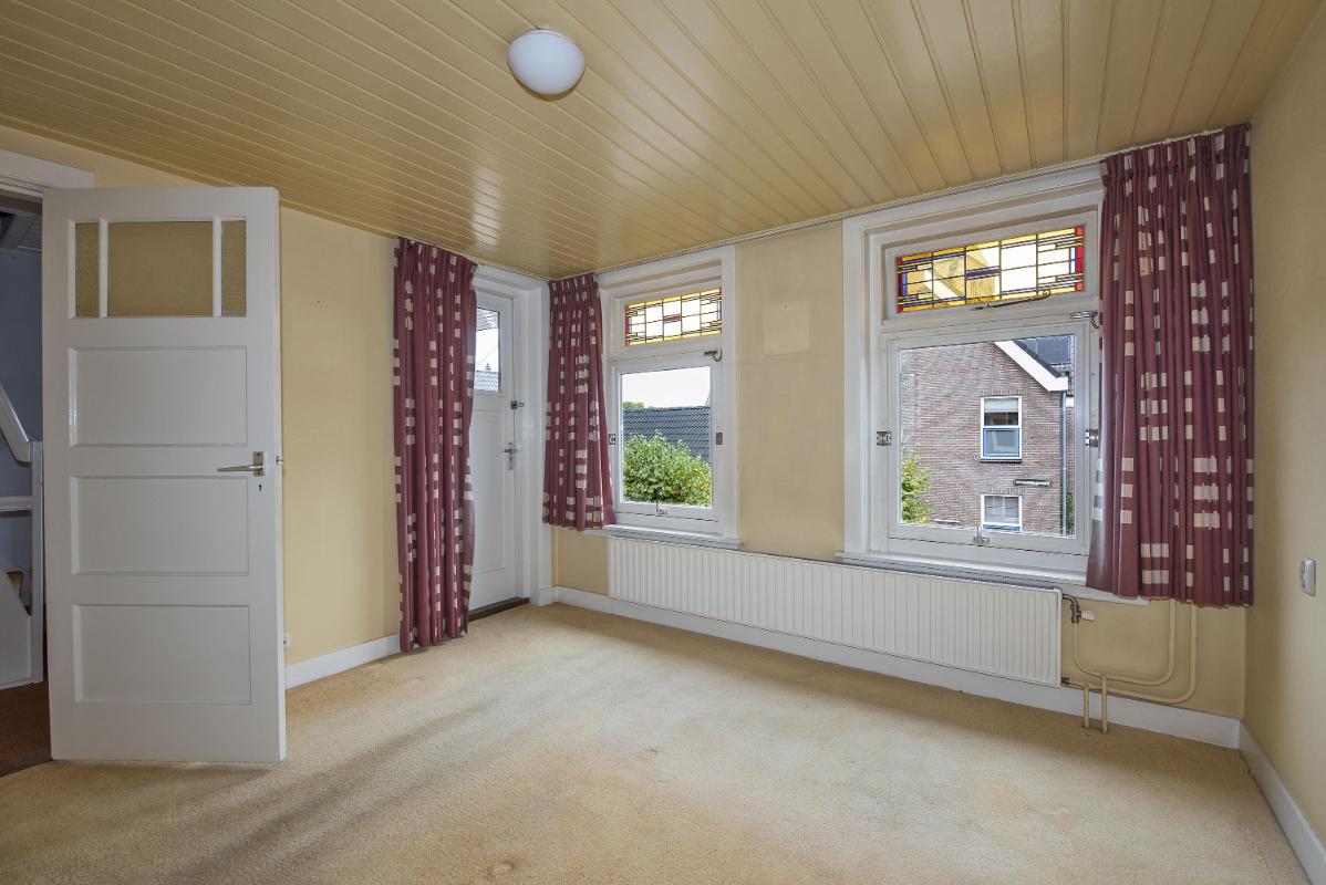 Indeling: Begane grond: entree, hal, meterkast, toilet, provisiekelder, voorkamer met erker en suitedeuren, tuingerichte woonkamer met openslaande tuindeuren, keuken voorzien van eenvoudige keukeninrichting, praktische aangebouwde bijkeuken/berging met aansluitingen voor de wasapparatuur. 1e verdieping: overloop, 2 ruime slaapkamers waarvan de slaapkamer aan de voorzijde toegang geeft tot het balkon, badkamer met douche, toilet, ligbad en wastafel. 2e verdieping: middels vaste trap bereikbaar, overloop, royale zolderruimte met indelingsmogelijkheden en technische opstelling.