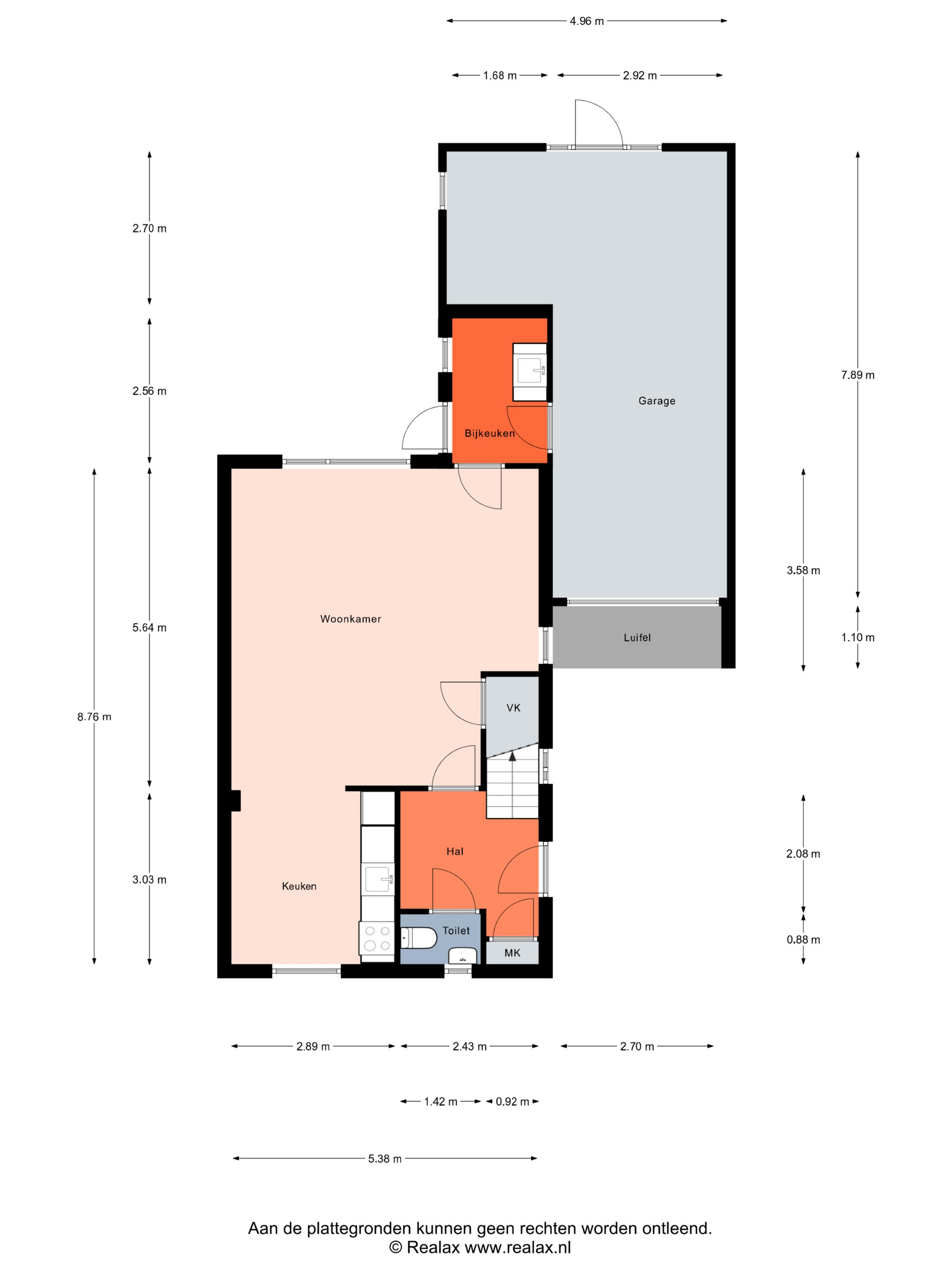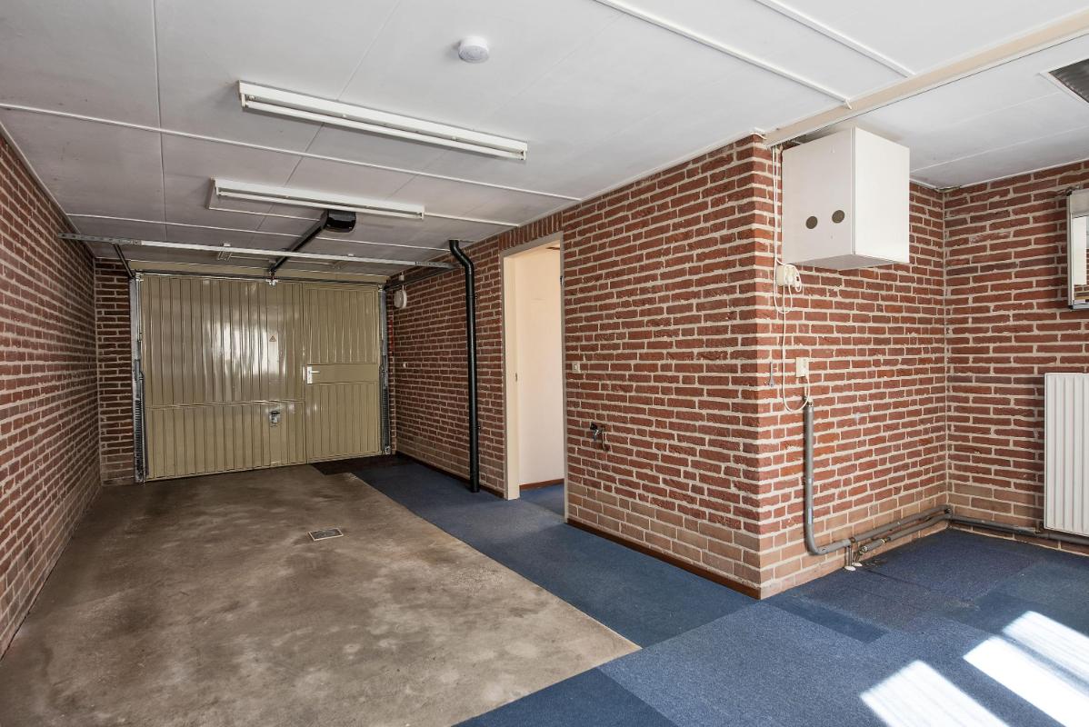 Indeling: Begane grond: entree, hal, meterkast, toilet met fontein, trapopgang, straatgerichte open keuken, royale woonkamer met indelingsmogelijkheden, praktisch bijkeuken met aansluitingen voor de wasapparatuur en toegang tot de inpandig te bereiken garage. 1e verdieping: overloop, 2 ruime slaapkamer, beide voorzien van vaste kastenwand, badkamer met douche, toilet en wastafelmeubel. Vaste trap naar 2e verdieping: middels vaste trap bereikbare zolderverdieping met bergruimte en cv-opstelling.