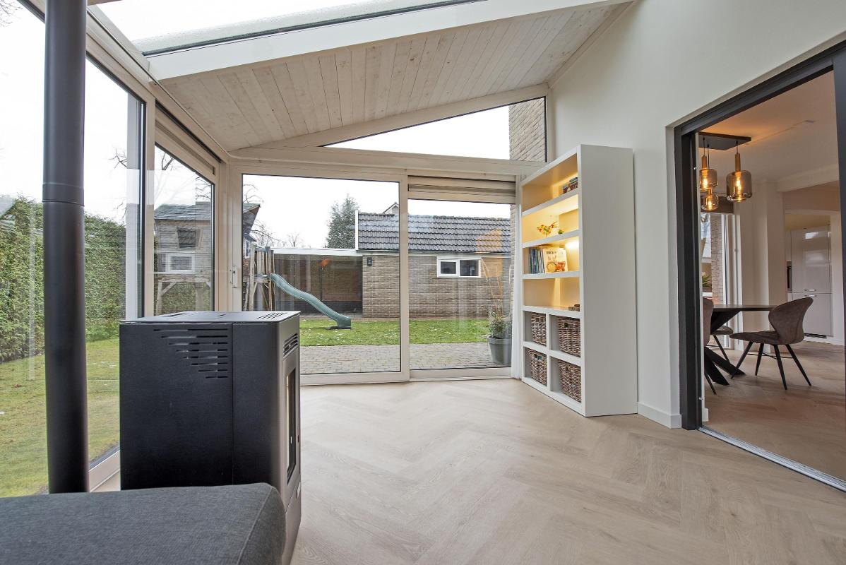 Indeling: Begane grond: entree, extra brede hal met genoeg ruimte voor de garderobe, meterkast, toilet met fontein, trapopgang en ideale trapkast, straatgerichte woonkamer voorzien van een fraaie, lichte pvc- visgraatvloer, royale aangebouwde serre, moderne keuken voorzien van inbouwapparatuur en toegang tot de achtertuin. 1e verdieping: overloop, 3 royale slaapkamers waarvan de ouderslaapkamer voorzien is van vaste kastruimte, een tv-aansluiting en een draaikiepdeur naar het balkon, badkamer met dubbele wastafel met meubel en dubbele spiegelkasten, inloopdouche, whirlpool en hangtoilet. De badkamer heeft retourleidingen in de vloer, wat zorgt voor een aangenaam warme vloer zonder dat er sprake is van vloerverwarming. 2e verdieping: via vaste trap bereikbare ruime overloop met bergruimte achter de knieschotten, wasmachine en droger opstelling CV-ketel, 4e slaapkamer met dakkapel (2020) en een op maat gemaakte kast, 5e slaapkamer (thans in gebruik als praktische strijkkamer) met grote bergkast.