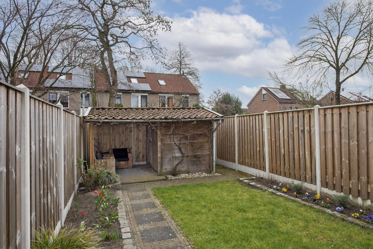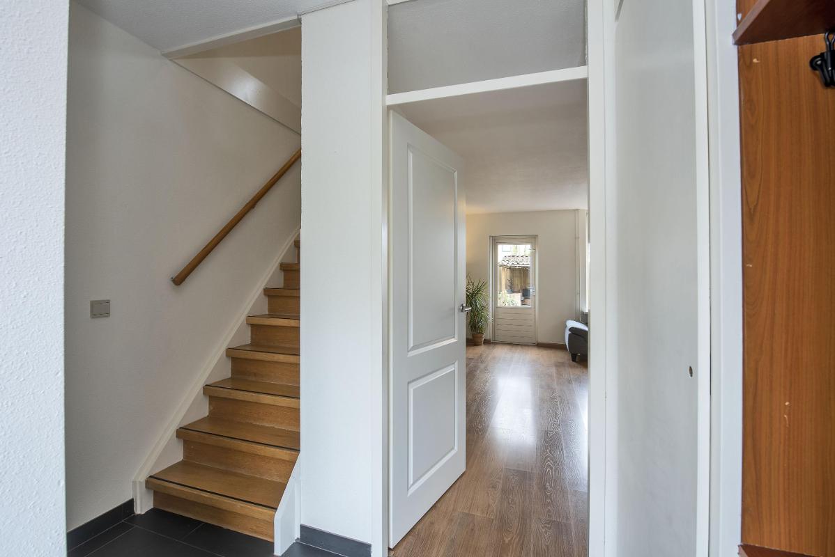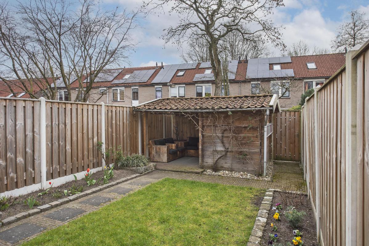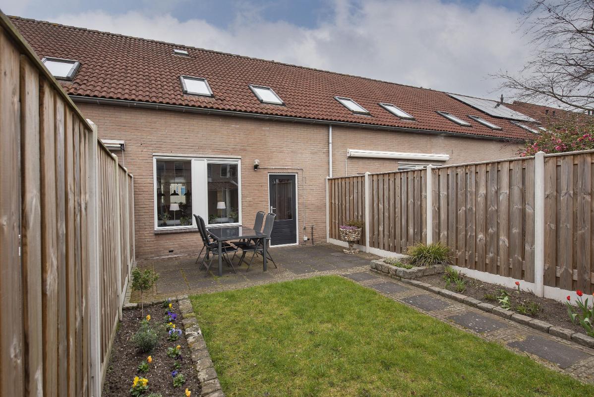 Indeling: Begane grond: entree, hal, toilet met fontein, trapopgang naar de eerste verdieping, meterkast, ruime tuingerichte woonkamer met toegang tot de achtertuin en praktische provisiekast, open keuken voorzien van inbouwapparatuur. De achtertuin is gesitueerd op het oosten en beschikt over een houten tuinhuis met overkapping en achterom. 1e verdieping: overloop, 3 slaapkamers, badkamer met douche, toilet, wastafelmeubel en handdoekradiator. Vlizotrap naar 2e verdieping: ruime zolder met dakraam en aansluitingen voor de wasapparatuur, cv-opstelling, bergruimte.