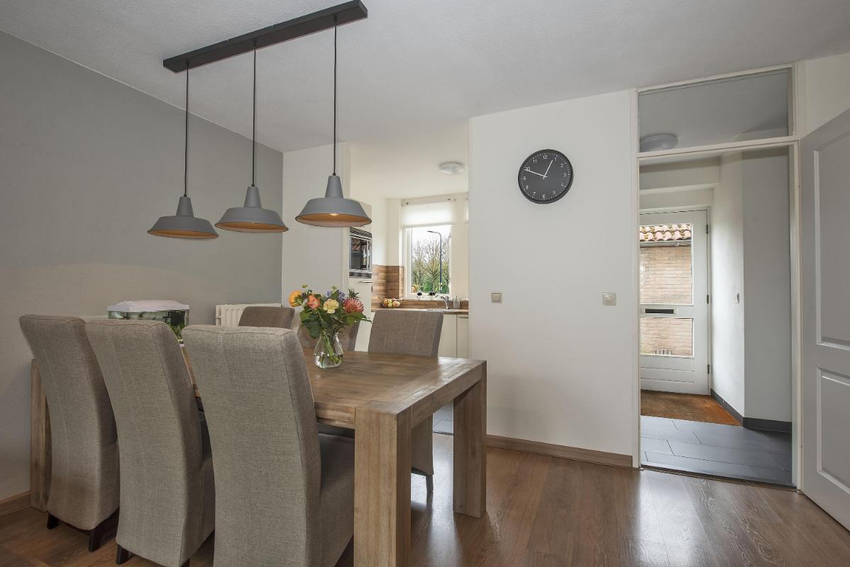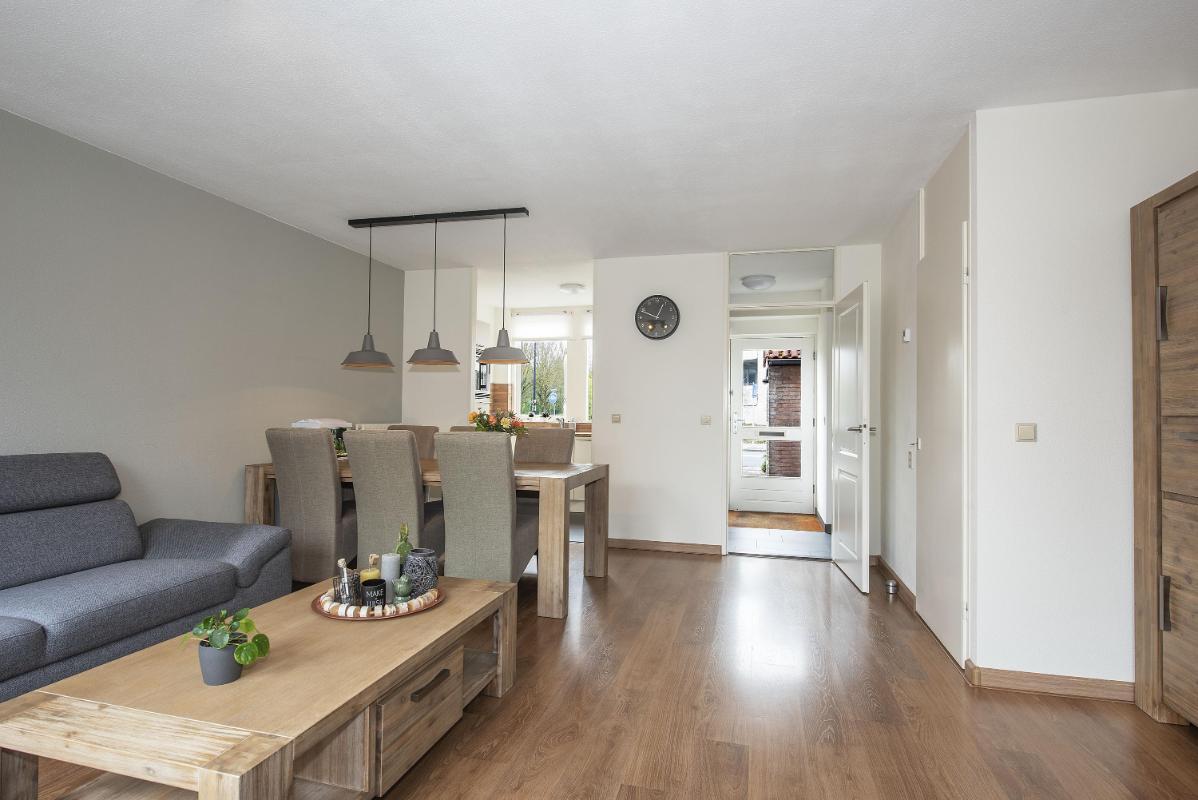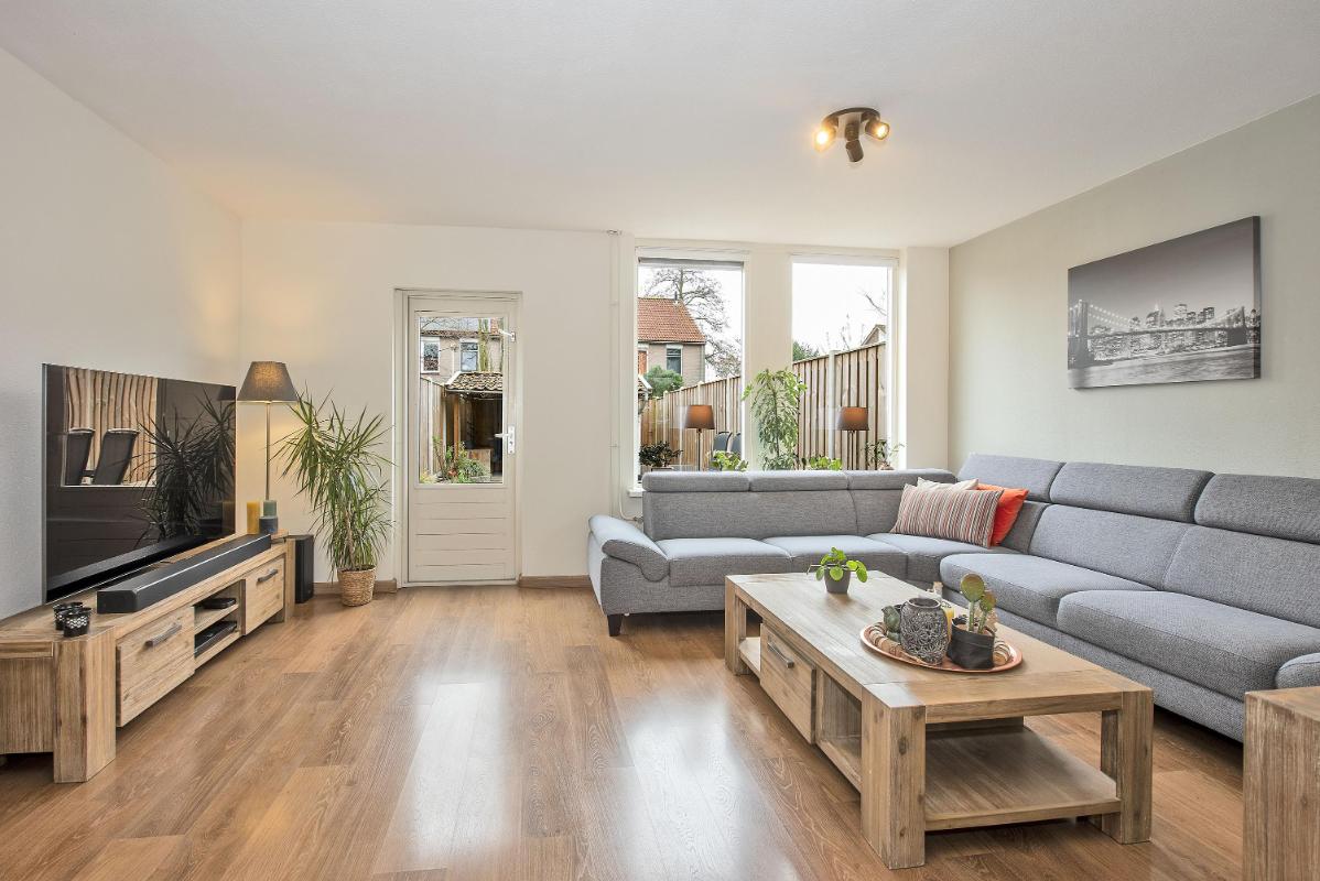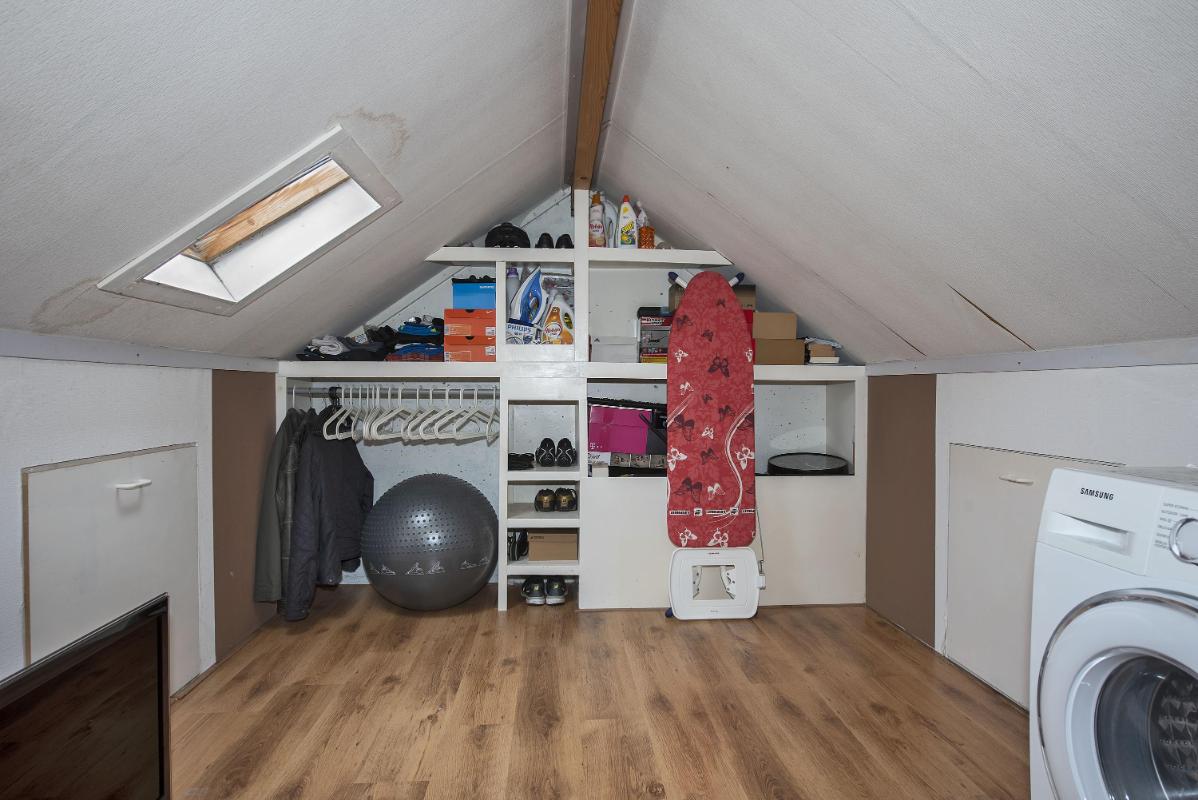 Indeling: Begane grond: entree, hal, toilet met fontein, trapopgang naar de eerste verdieping, meterkast, ruime tuingerichte woonkamer met toegang tot de achtertuin en praktische provisiekast, open keuken voorzien van inbouwapparatuur. De achtertuin is gesitueerd op het oosten en beschikt over een houten tuinhuis met overkapping en achterom. 1e verdieping: overloop, 3 slaapkamers, badkamer met douche, toilet, wastafelmeubel en handdoekradiator. Vlizotrap naar 2e verdieping: ruime zolder met dakraam en aansluitingen voor de wasapparatuur, cv-opstelling, bergruimte.