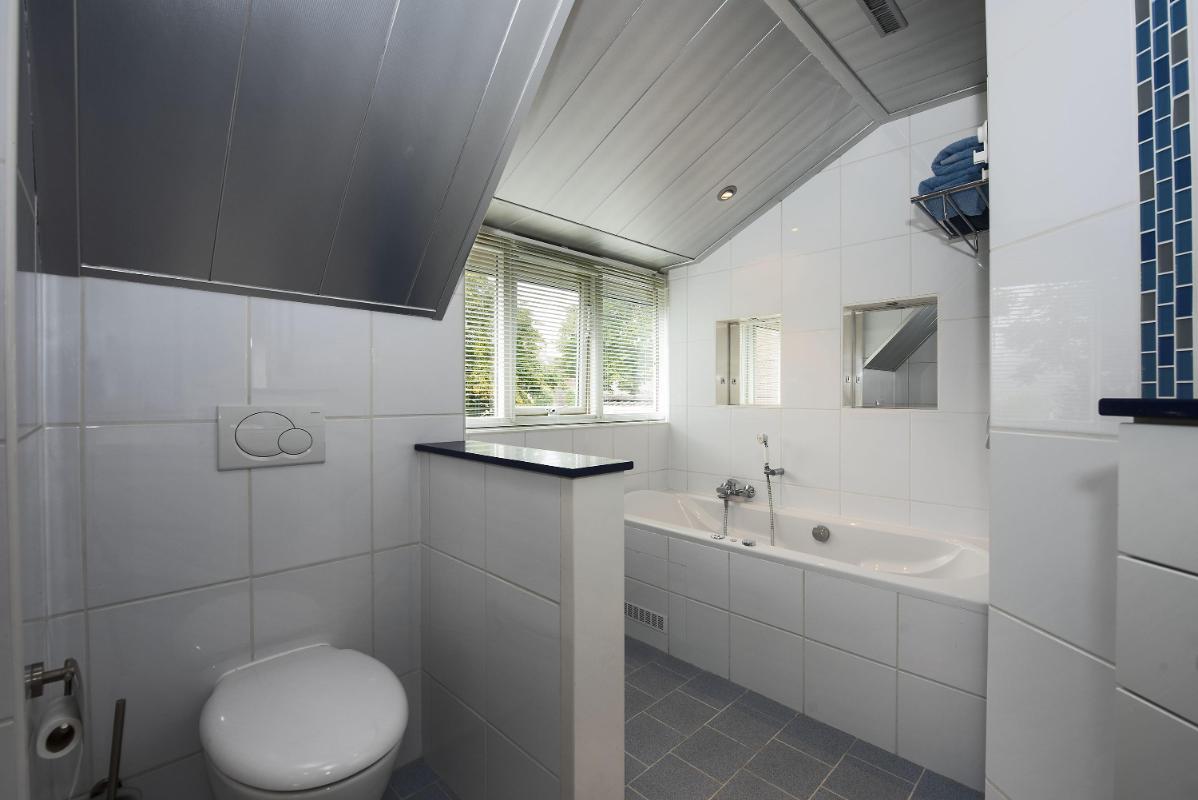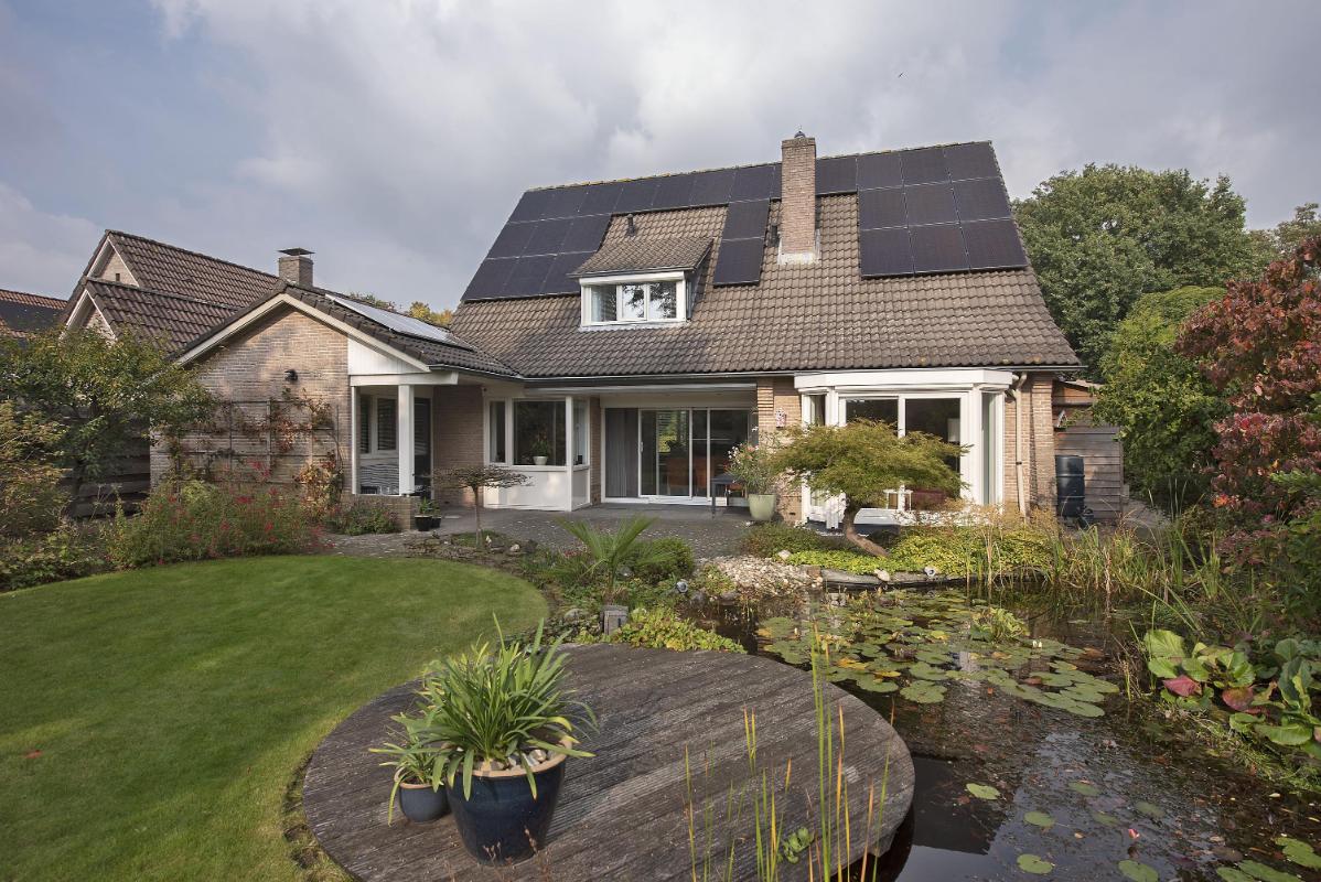 Indeling: Begane grond: entree, hal met trapopgang, toilet met fontein, meterkast met 3-fasen aansluiting, werk/-hobbykamer, woonkamer met houthaard en extra tuingerichte zithoek met schuifpui, eetkamer met schuifpui en tv-hoek, gesloten keuken voorzien van inbouwapparatuur en infraroodverwarming, praktische bijkeuken met keukenblad met spoelbak, aansluitingen voor de wasapparatuur, garage met loopdeur, openslaande deuren en vliering. 1e verdieping: royale overloop met bergkast, 4 zeer ruime slaapkamers waarvan de ouderslaapkamer beschikt over een eigen badkamer met wastafelmeubel, bubbelbad, toilet en douche. Vanuit de overloop is de tweede badkamer bereikbaar, deze is voorzien van een wastafelmeubel, toilet en douche. 2e verdieping: middels vaste trap bereikbaar, overloop met bergruimte, vijfde slaapkamer, zolderberging met boileropstelling.