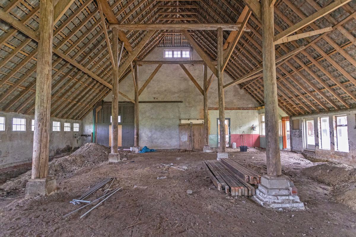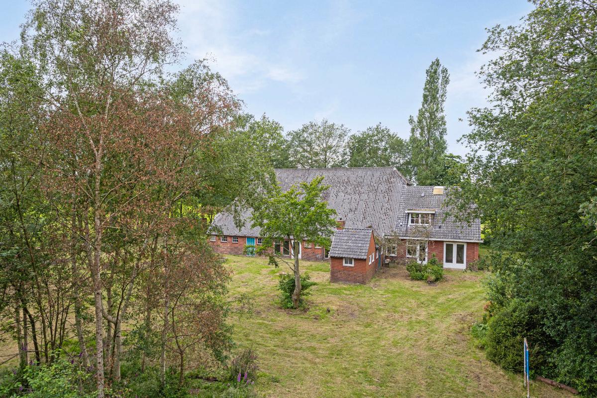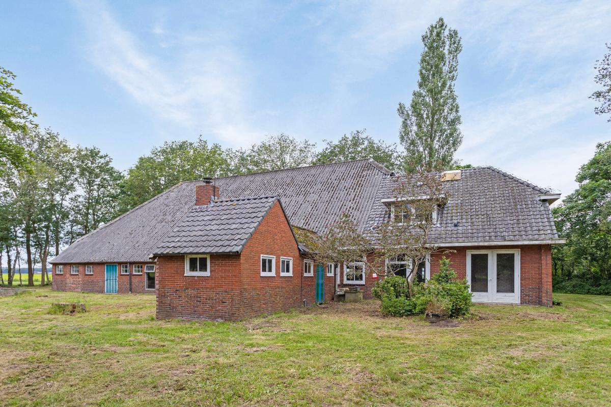 Aan het eind van een 2 kilometer lange doodlopende weg, staat deze te renoveren WOONBOERDERIJ, gesitueerd op werkelijk een unieke locatie grenzend aan het natuurgebied en met weidse uitzichten over de landerijen. Deze zeer ruim bemeten woonboerderij uit 1935 bestaat uit een groot voorhuis met daarachter een deelruimte van ruim 280m². Qua casco verkeert de boerderij in goede staat, de originele gebinten en balken uit 1930 zijn kaarsrecht, onaangetast en gaaf. Intern is de boerderij inmiddels gestript en de renovatieplannen & bouwtekeningen liggen klaar voor de nieuwe eigenaar.