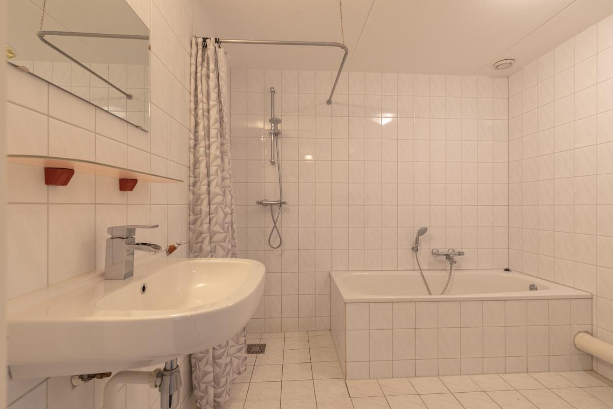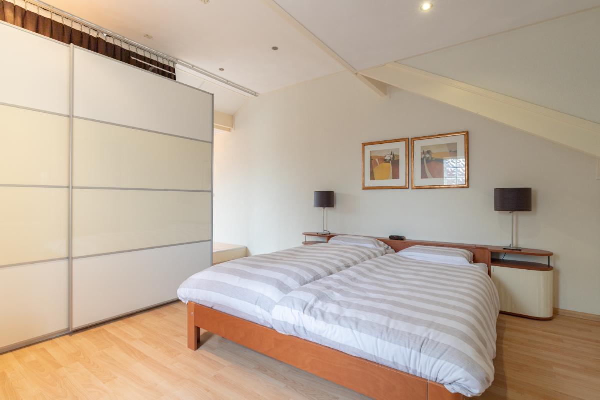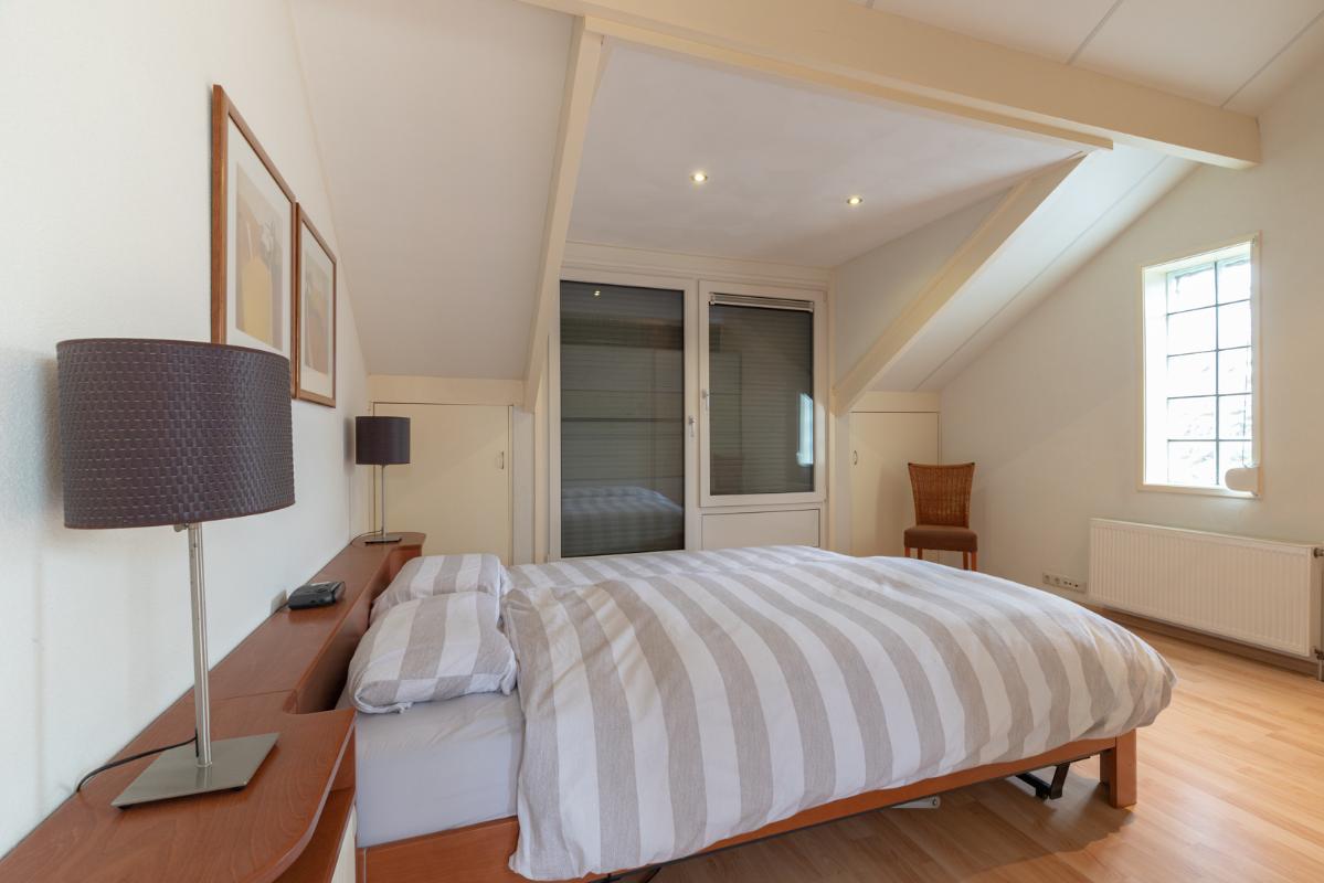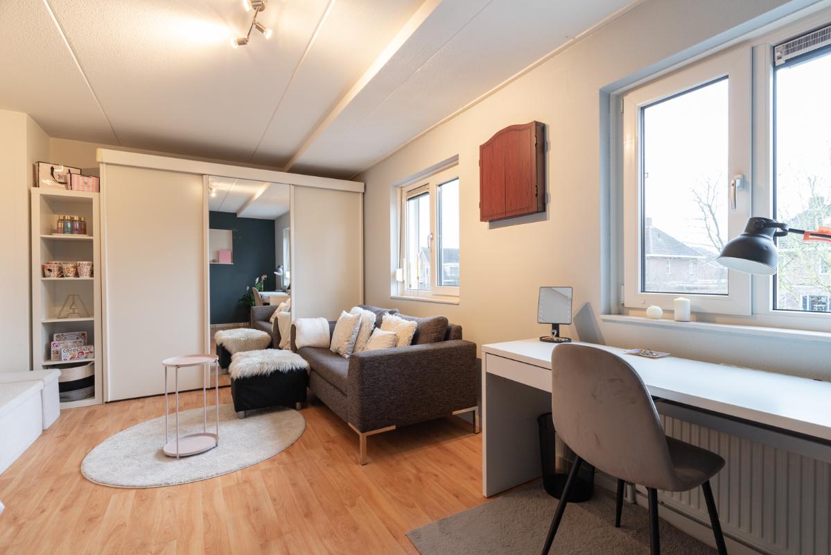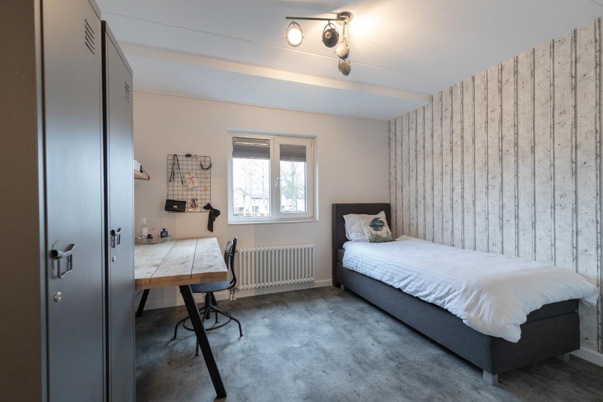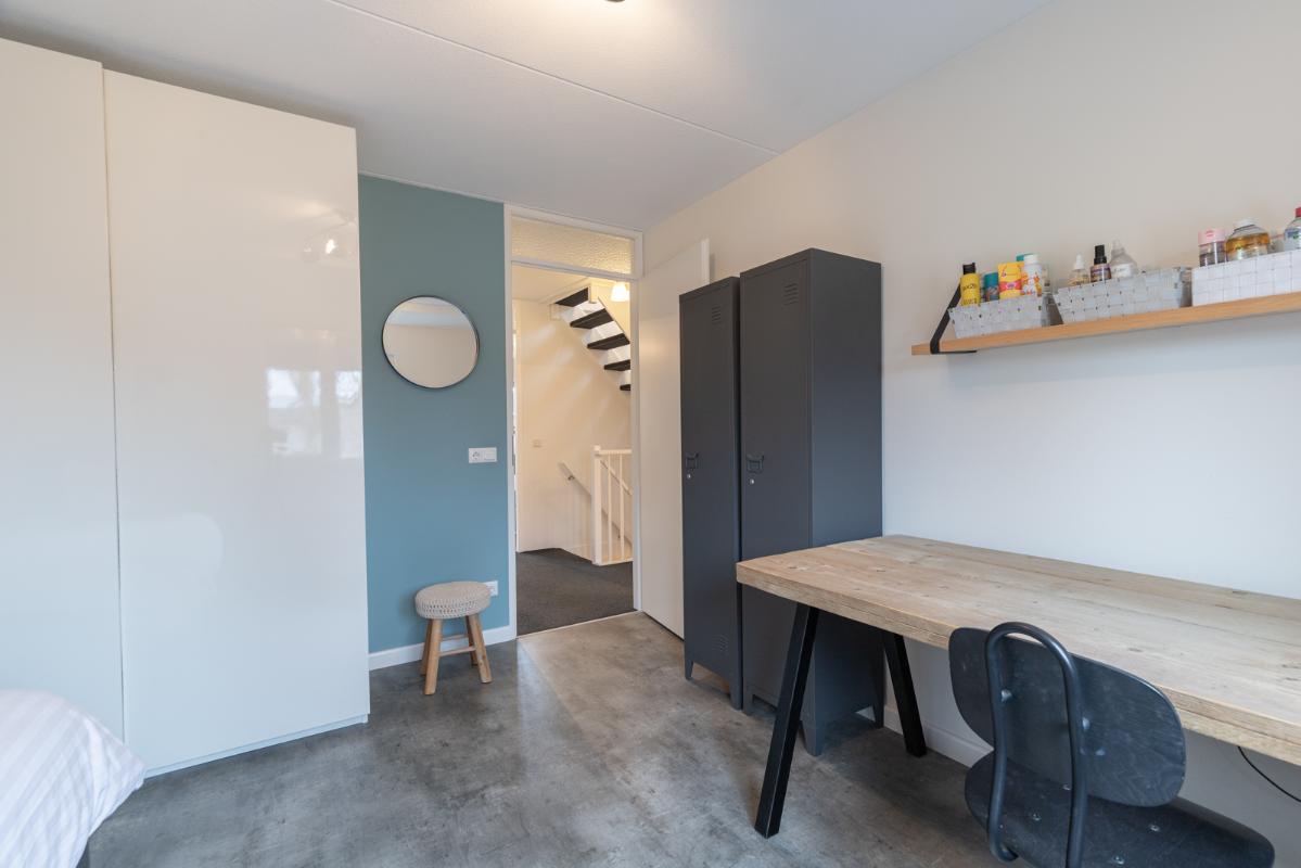 INDELING: Begane grond: overdekte entree/hal met toilet, garderobe en binnendoor naar de geïsoleerde garage; een royale L-vorm woonkamer met open keuken (circa 48m²) met openslaande deuren naar het terras en de tuin. De keurige en lichte keuken in hoekopstelling is voorzien van een gaskookplaat, afzuigschouw, koelkast, combi-oven (2021), vaatwasser (2021) en veel kastruimte. Direct naast de keuken toegang tot de bijkeuken met deur naar de tuin. Eerste verdieping: overloop, een eenvoudige maar nette badkamer (voorzien van ligbad, douche, wastafel en toilet) en 4 ruim bemeten slaapkamers (circa 28, 20, 12 en 8m²), waarvan de grootste met toegang tot het dakterras aan de tuinzijde. Tweede verdieping: via vaste trap te bereiken zolderverdieping (circa 28m² vloeroppervlakte) met Velux dakraam en extra bergruimte achter de knieschotten. Er is hier een uitstekende mogelijkheid om een 5e slaap-/werkkamer te realiseren.