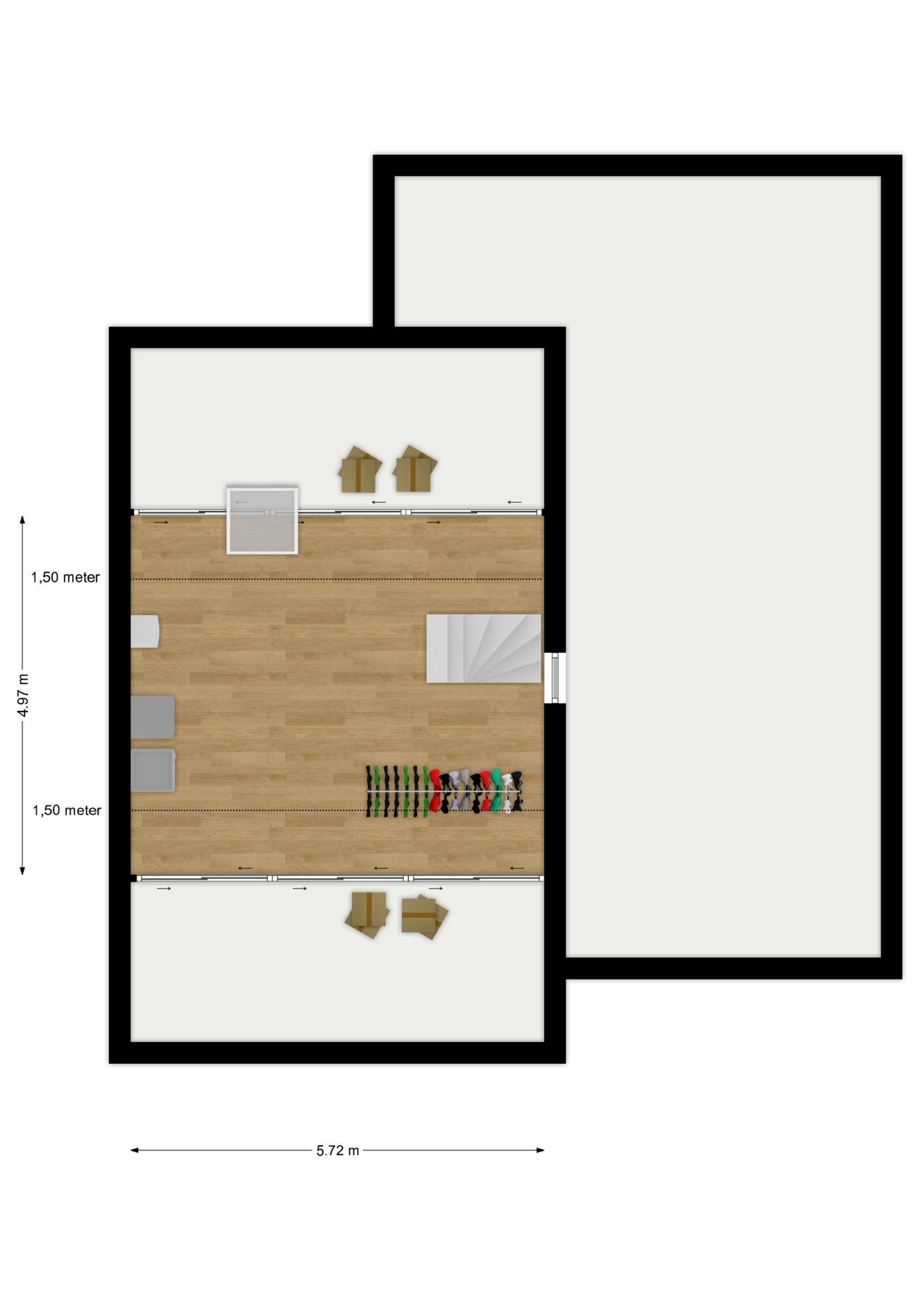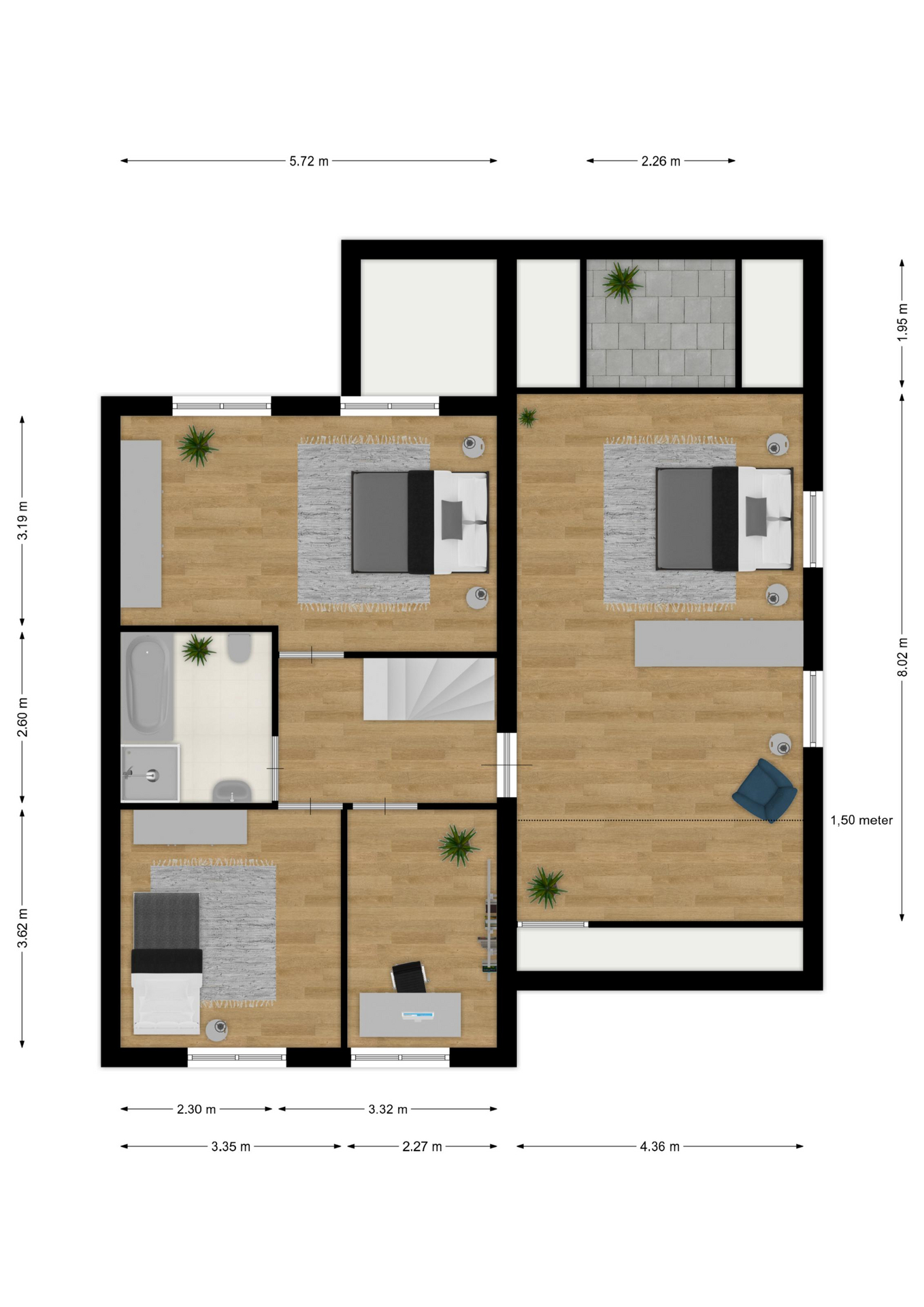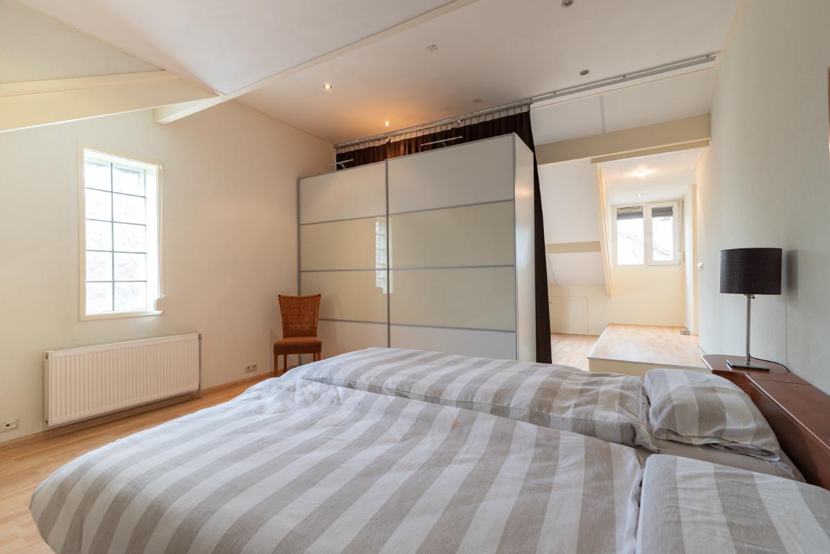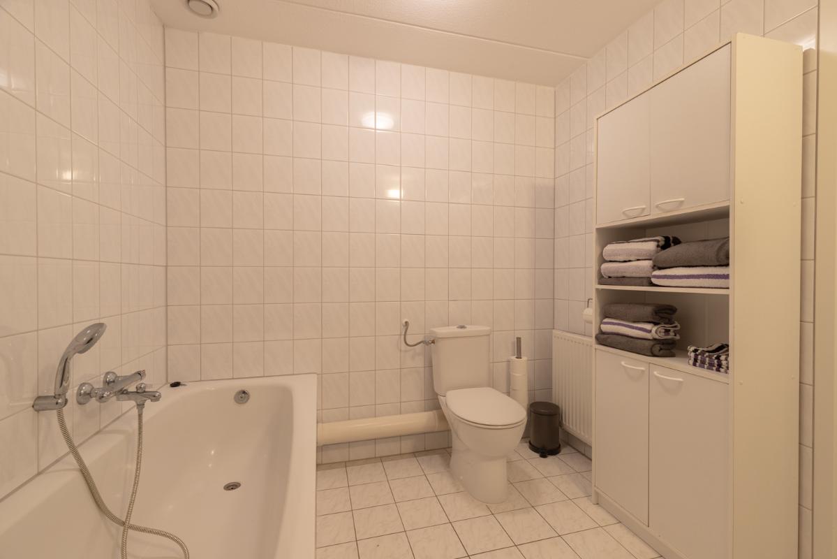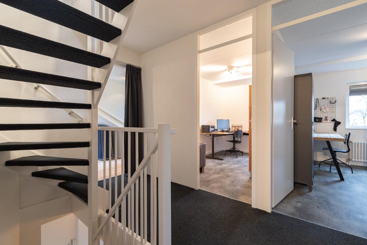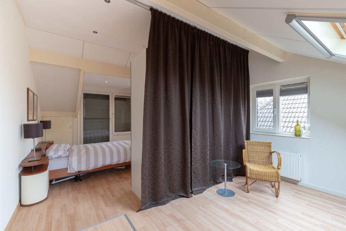 INDELING: Begane grond: overdekte entree/hal met toilet, garderobe en binnendoor naar de geïsoleerde garage; een royale L-vorm woonkamer met open keuken (circa 48m²) met openslaande deuren naar het terras en de tuin. De keurige en lichte keuken in hoekopstelling is voorzien van een gaskookplaat, afzuigschouw, koelkast, combi-oven (2021), vaatwasser (2021) en veel kastruimte. Direct naast de keuken toegang tot de bijkeuken met deur naar de tuin. Eerste verdieping: overloop, een eenvoudige maar nette badkamer (voorzien van ligbad, douche, wastafel en toilet) en 4 ruim bemeten slaapkamers (circa 28, 20, 12 en 8m²), waarvan de grootste met toegang tot het dakterras aan de tuinzijde. Tweede verdieping: via vaste trap te bereiken zolderverdieping (circa 28m² vloeroppervlakte) met Velux dakraam en extra bergruimte achter de knieschotten. Er is hier een uitstekende mogelijkheid om een 5e slaap-/werkkamer te realiseren.