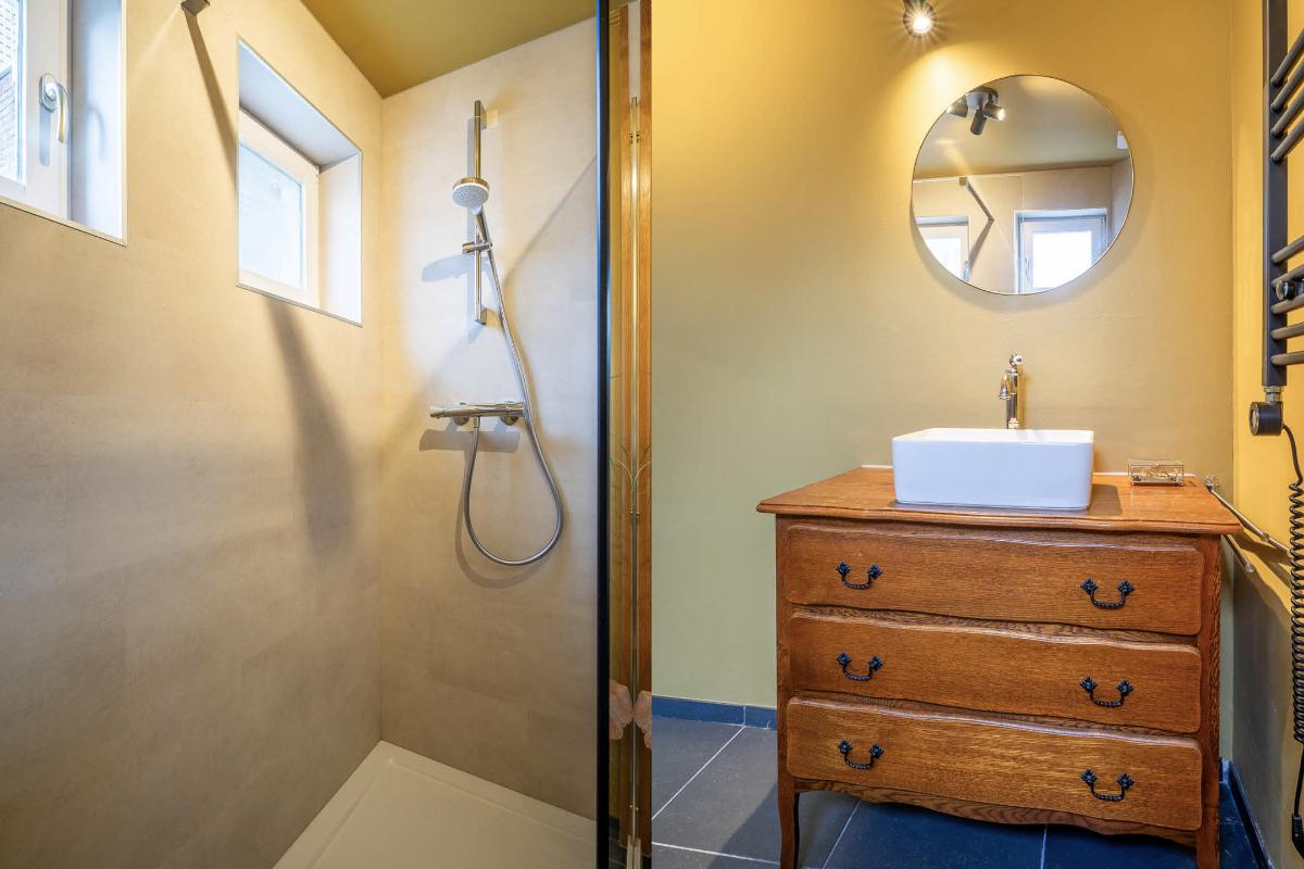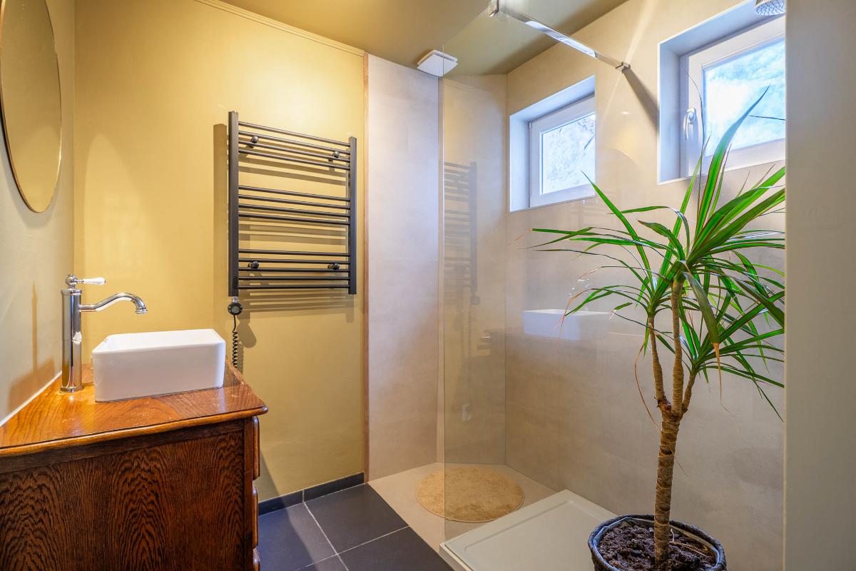 BADKAMER (2025) De zeer moderne badkamer is voorzien van een inloopdouche, wastafel met meubel, (elektrische) designradiator en ventilatie.
