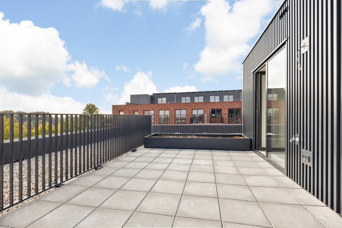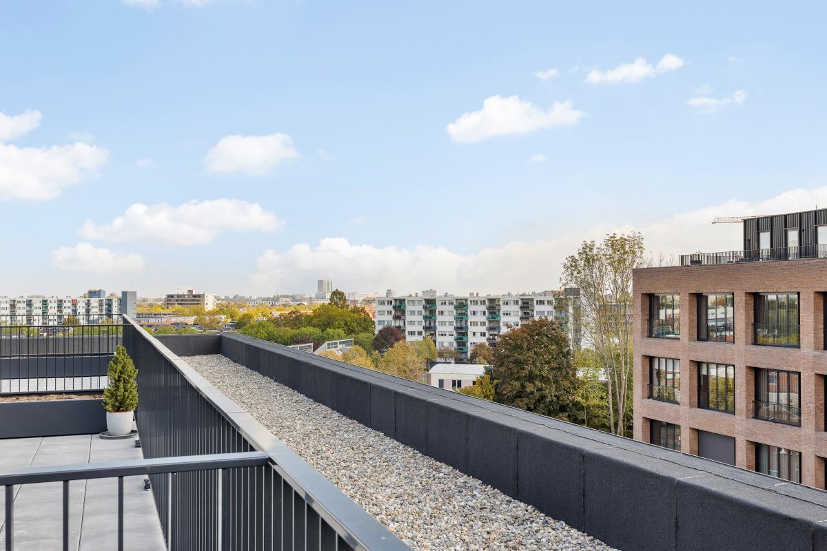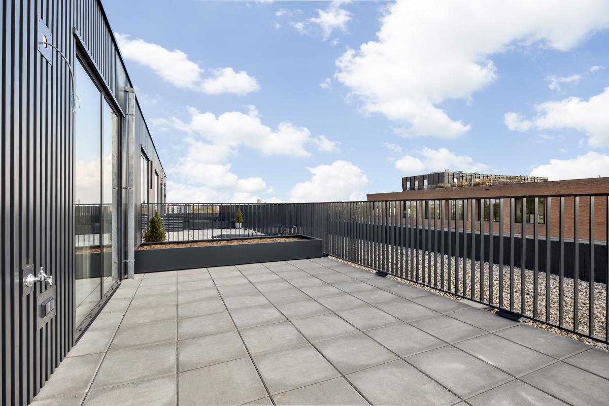 Een royaal dakterras van circa 33 m², gelegen op het zuidoosten. Dit terras biedt volop zon in de ochtend en middag, en is groot genoeg voor een loungeset, buitenkeuken of zelfs een jacuzzi. Een unieke buitenruimte met uitzicht over Breda en het groene Cosun Park.