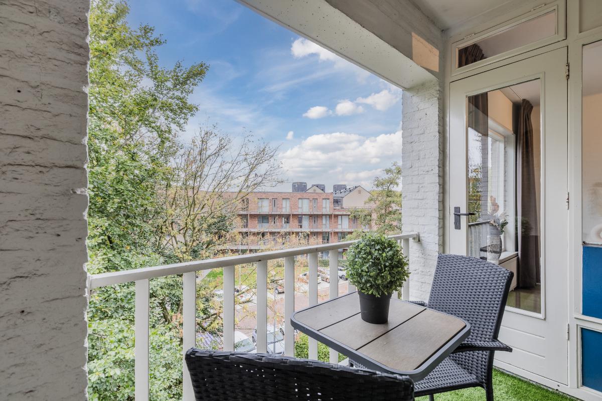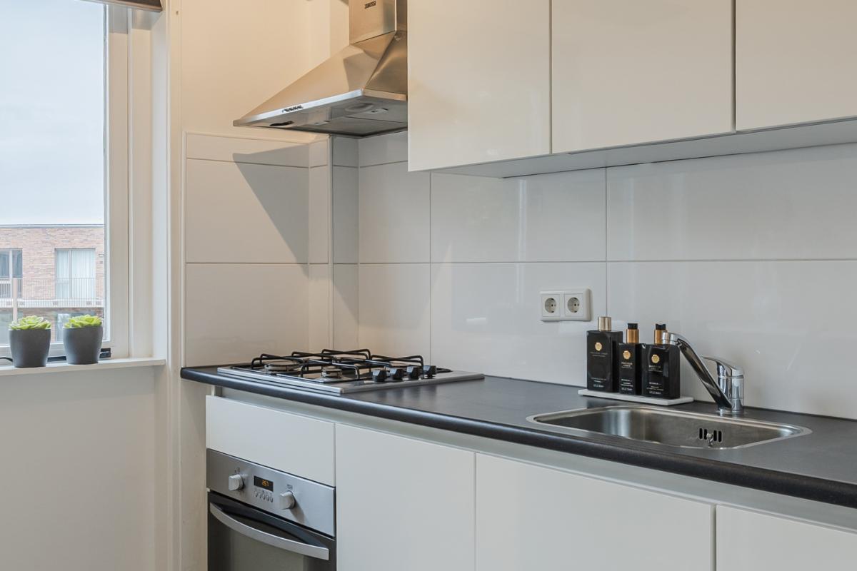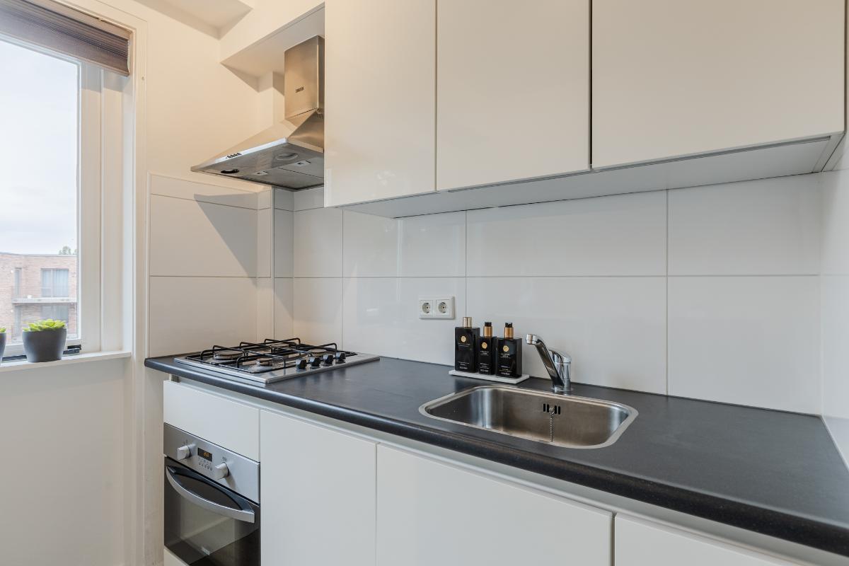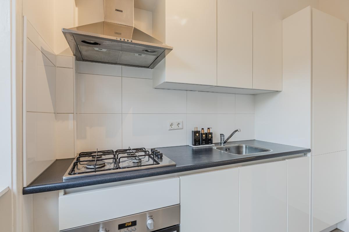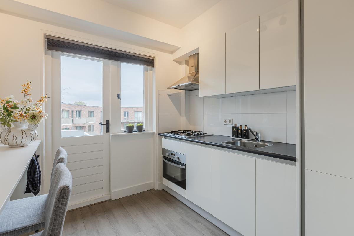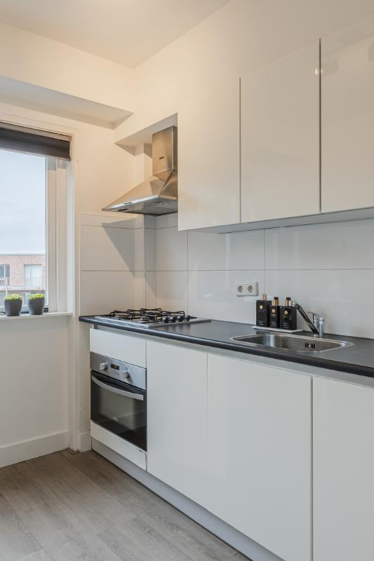 Keuken met balkon; Aan de achterzijde van het appartement bevindt zich de keuken, die toegang biedt tot een tweede buitenruimte: een balkon aan de binnentuin. De keuken is modern en functioneel ingericht en beschikt over een oven, kookplaat en voldoende kastruimte. Dankzij het balkon kun je hier ook genieten van frisse lucht tijdens het koken of een kruidentuintje aanleggen. De ligging aan de achterzijde zorgt voor levendig uitzicht en extra lichtinval.