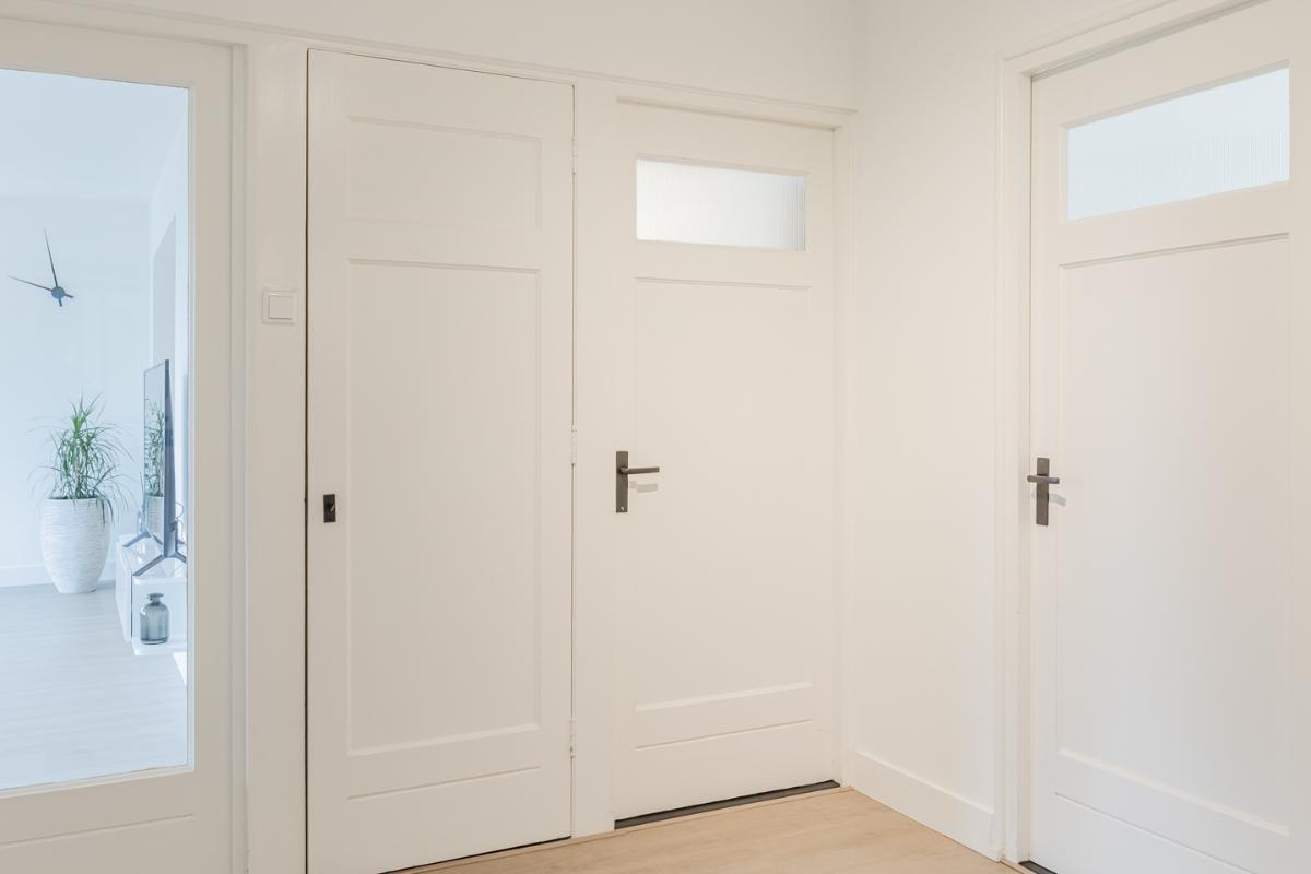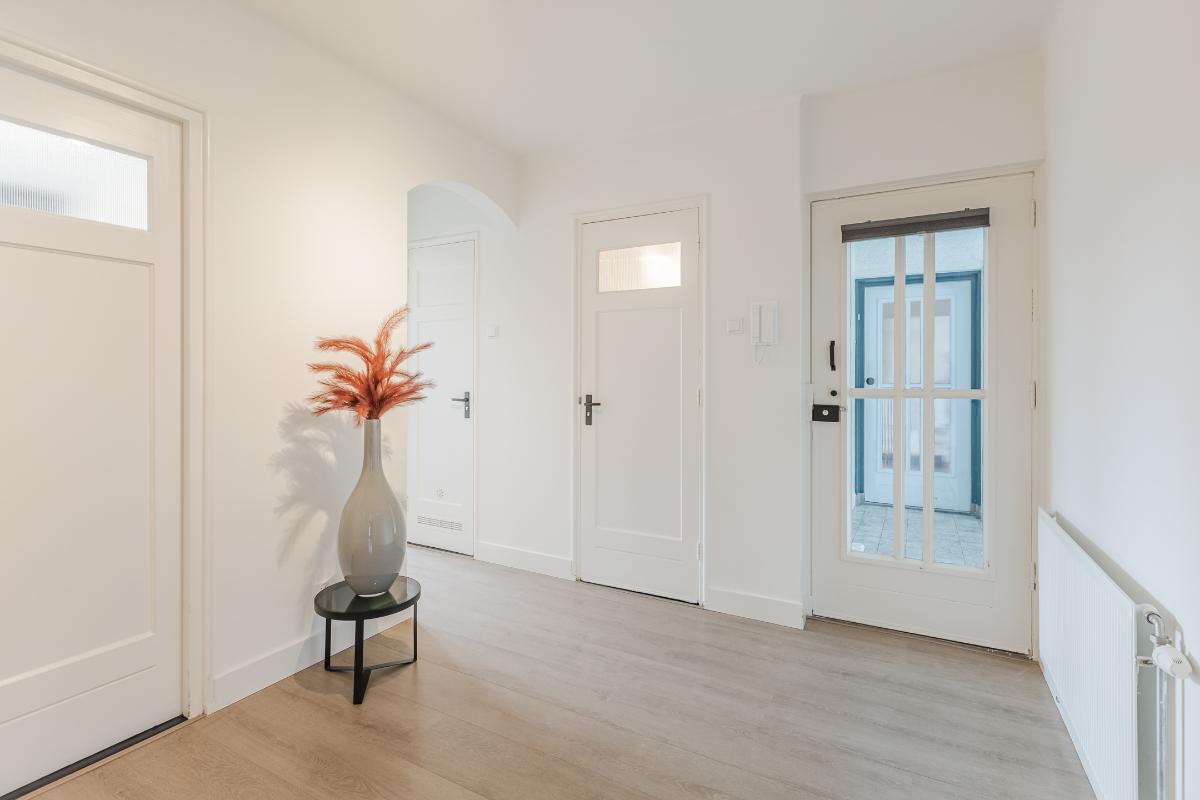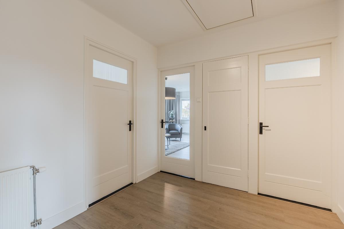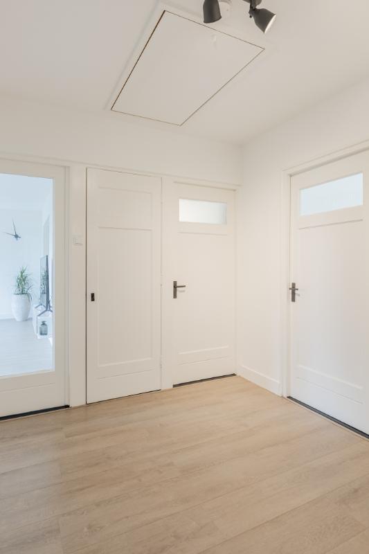 Ruime entree met toegang tot alle vertrekken; Bij binnenkomst in het appartement valt direct de royale entree op. Deze centrale hal biedt toegang tot alle vertrekken en zorgt voor een prettige verdeling van de ruimtes. Er is voldoende plek voor een garderobe, schoenenkast of zelfs een werkhoek. De indeling is praktisch en overzichtelijk, waardoor het appartement ruimtelijk en licht aanvoelt.