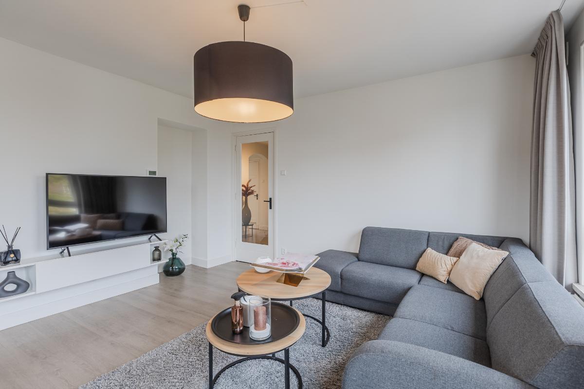 Royale woonkamer met loggia; De woonkamer is een van de absolute pluspunten van deze woning. Dankzij de royale afmetingen is er ruimte voor een comfortabele zithoek, een grote eettafel en eventueel een werkplek. De openslaande deuren geven toegang tot de loggia – een overdekt balkon dat grenst aan de gemeenschappelijke binnentuin. Hier kun je beschut buiten zitten, ongeacht het weer. De loggia is een verlengstuk van de woonkamer en biedt een fijne plek voor een kop koffie in de ochtend of een glas wijn in de avond.