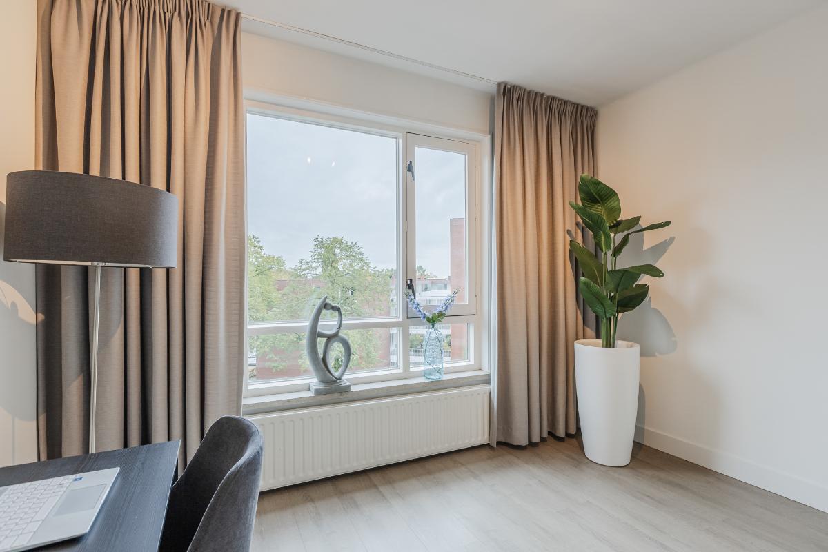 Drie slaapkamers – flexibel en ruim; Het appartement beschikt over drie slaapkamers, wat uitzonderlijk is in deze prijsklasse en locatie. De hoofdslaapkamer is ruim en licht, met uitzicht op de binnentuin. De tweede slaapkamer is eveneens goed bemeten en kan dienst doen als logeerkamer, kinderkamer of thuiskantoor. De derde slaapkamer is iets compacter, maar perfect als hobbyruimte, kleedkamer of extra werkplek. Dankzij de praktische indeling zijn alle kamers goed te benutten.
