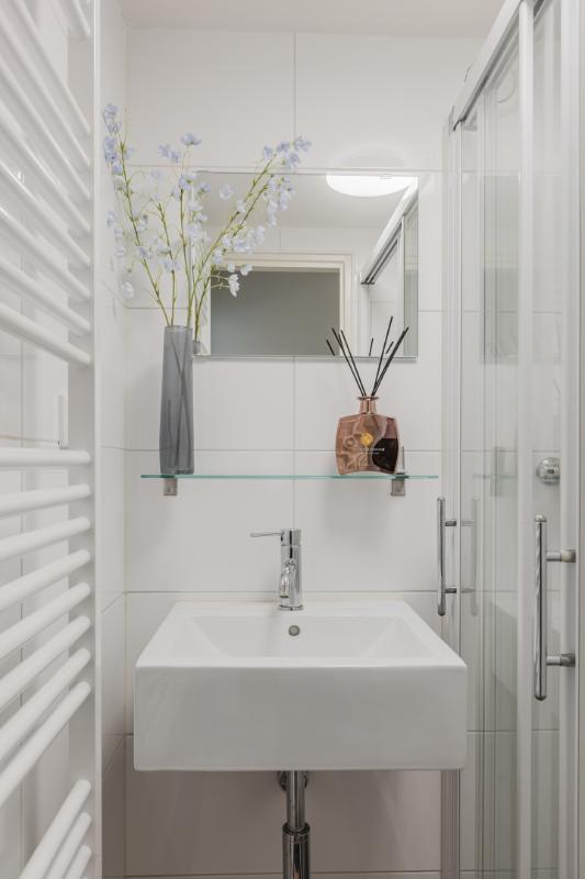 Badkamer en separaat toilet; De badkamer is netjes afgewerkt en voorzien van een douche en wastafelmeubel. Hier kun je comfortabel je dag beginnen of afsluiten. Het toilet is separaat en bevindt zich naast de badkamer, wat zorgt voor extra privacy en gemak. Beide ruimtes zijn functioneel en bieden mogelijkheden voor modernisering naar eigen smaak.