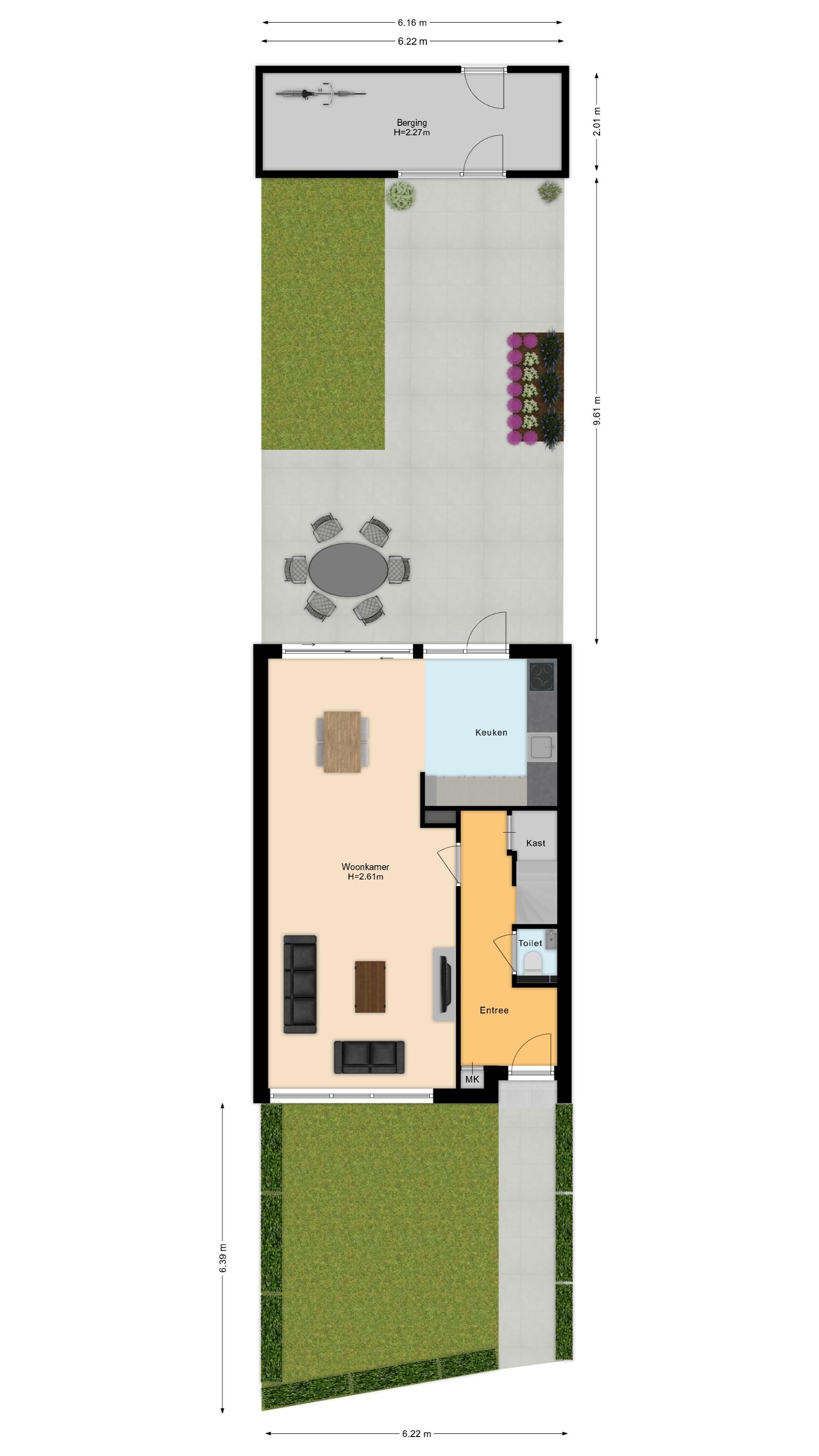 Buitenruimte; De achtertuin ligt op het zuidwesten en biedt volop zon en privacy. De tuin is onderhoudsvriendelijk aangelegd en biedt ruimte voor een terras, speelplek of buitenkeuken. Aan de voorzijde geniet u van het vrije uitzicht over het natuurgebied – een zeldzame combinatie van rust en ruimte.