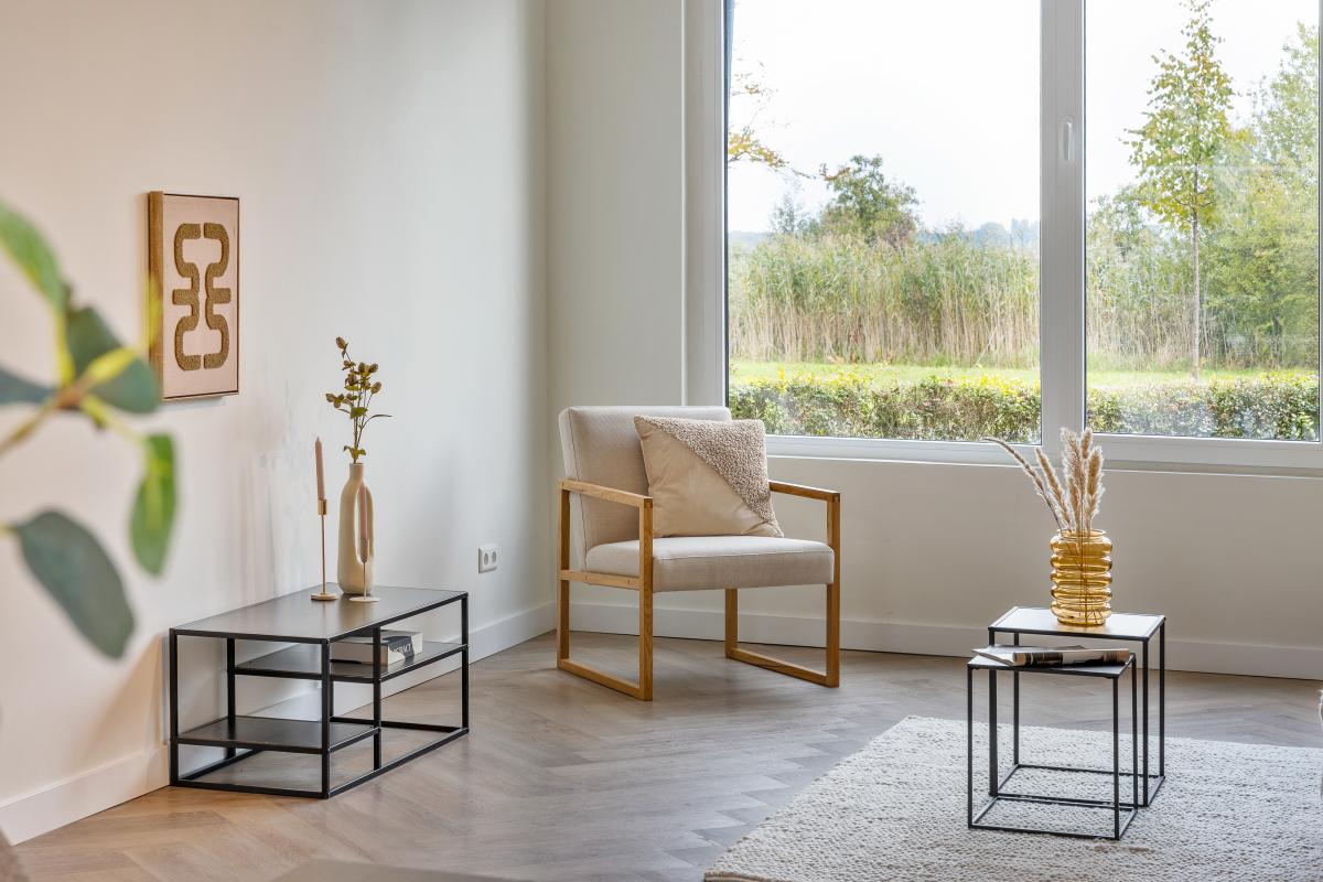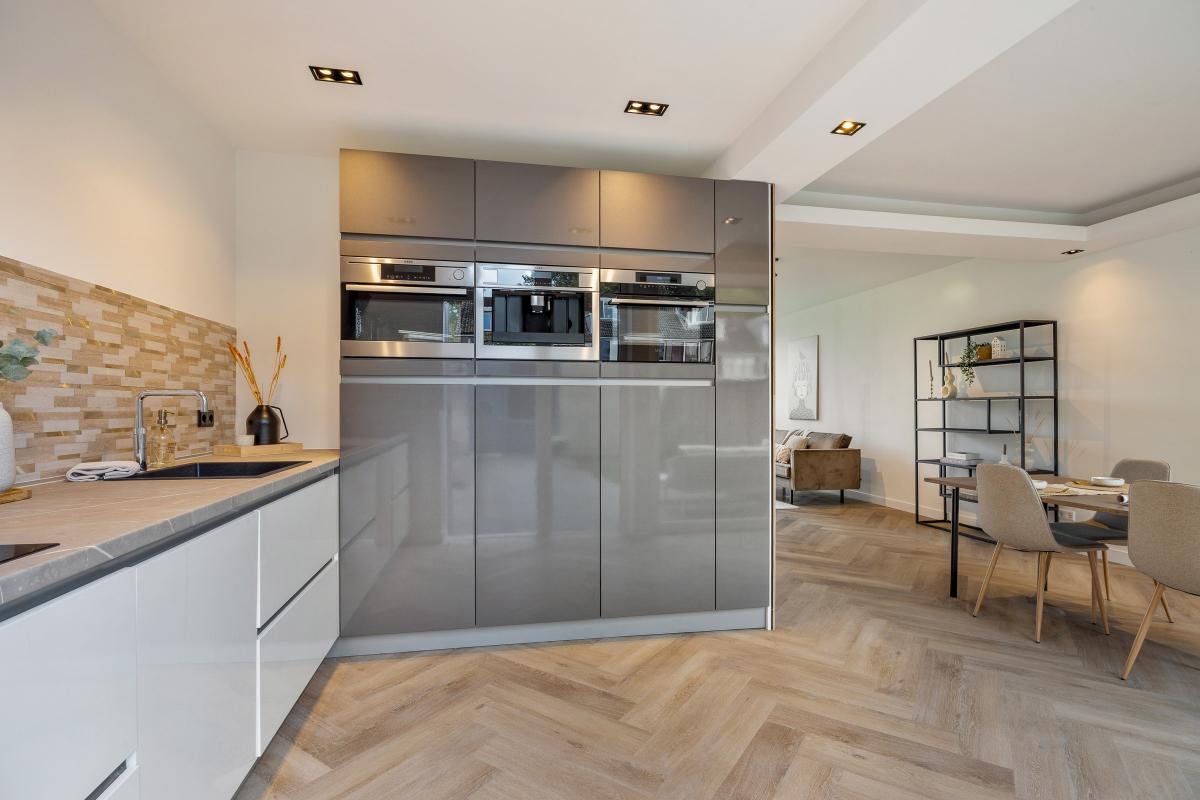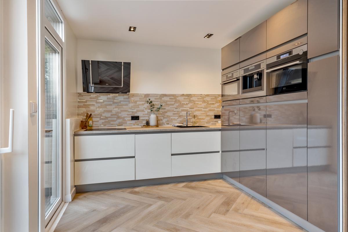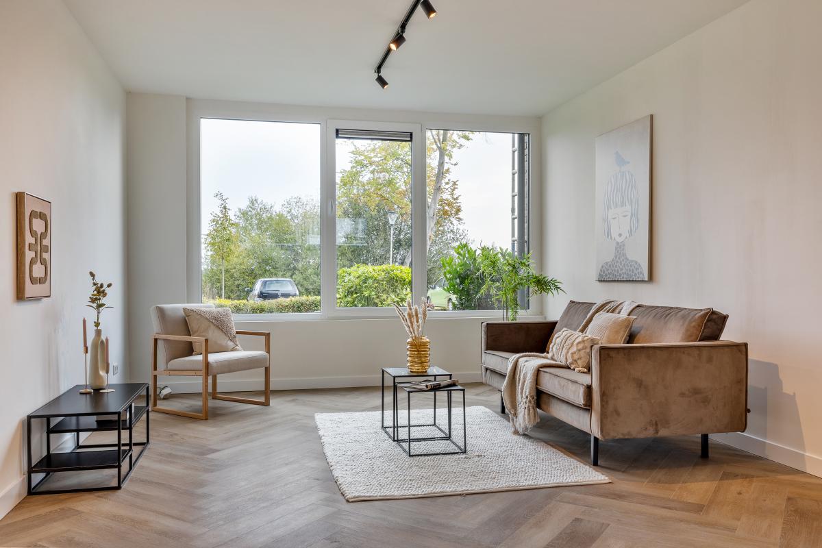 Begane grond – Licht, luxe en leefcomfort; Bij binnenkomst valt direct de hoogwaardige afwerking op. De ruime woonkamer met open keuken is voorzien van een stijlvolle pvc-visgraatvloer en vloerverwarming, wat zorgt voor een warme en moderne uitstraling. Grote raampartijen aan de voorzijde bieden een prachtig uitzicht over het natuurgebied en laten veel daglicht binnen. De open keuken is strak en luxe uitgevoerd, met moderne inbouwapparatuur zoals een inductiekookplaat, combi-oven, vaatwasser, quooker, inbouw koffiemachine, een koelkast en vriezer. De keuken biedt veel werk- en opbergruimte en sluit naadloos aan op de leefruimte. Via de achterzijde bereikt u de zonnige tuin op het zuidwesten – een heerlijke plek om te ontspannen, te tuinieren of te genieten van lange zomeravonden.
