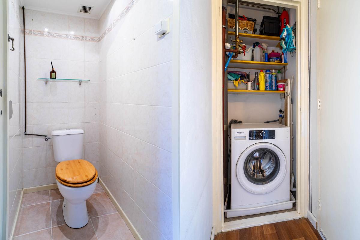 TOILETRUIMTE Geheel betegelde toiletruimte met closet.