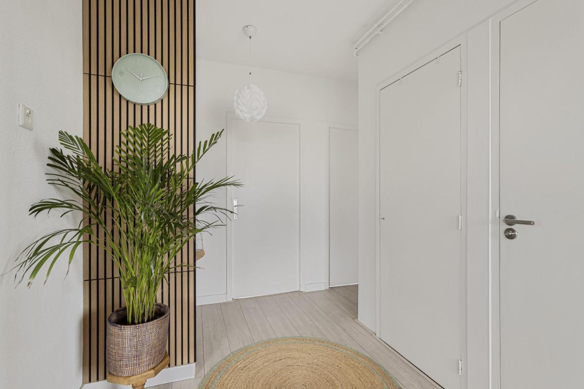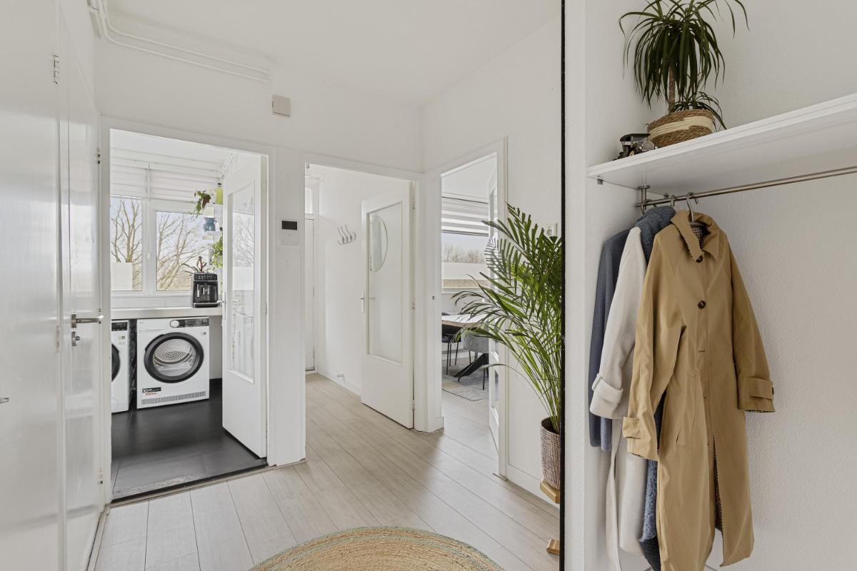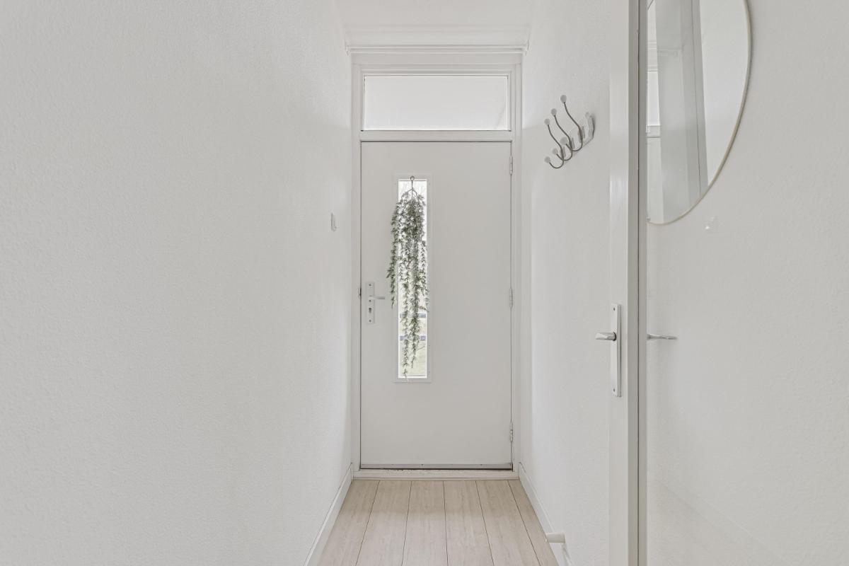 ENTREE (4e etage) Via de galerij bereik je de voordeur van het appartement, deze geeft toegang tot de hal. Vanuit de hal zijn alle vertrekken van het appartement bereikbaar. In de hal bevinden zich daarnaast ook de meterkast (8 groepen + 2 aardlekschakelaars).