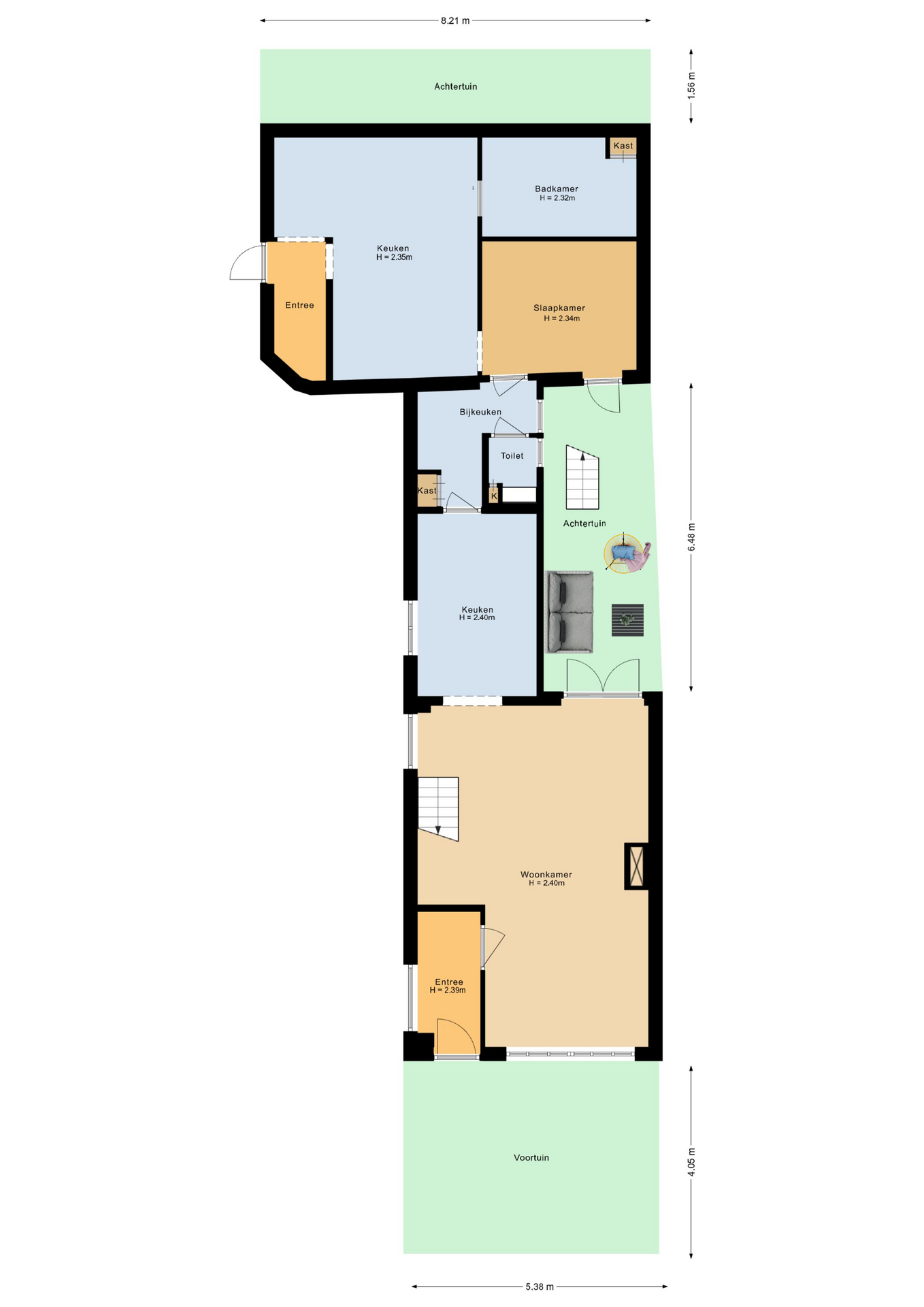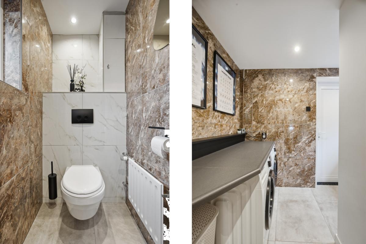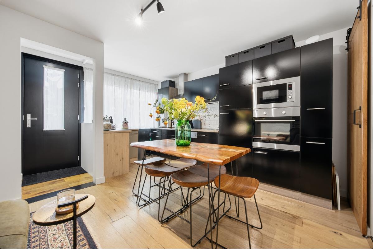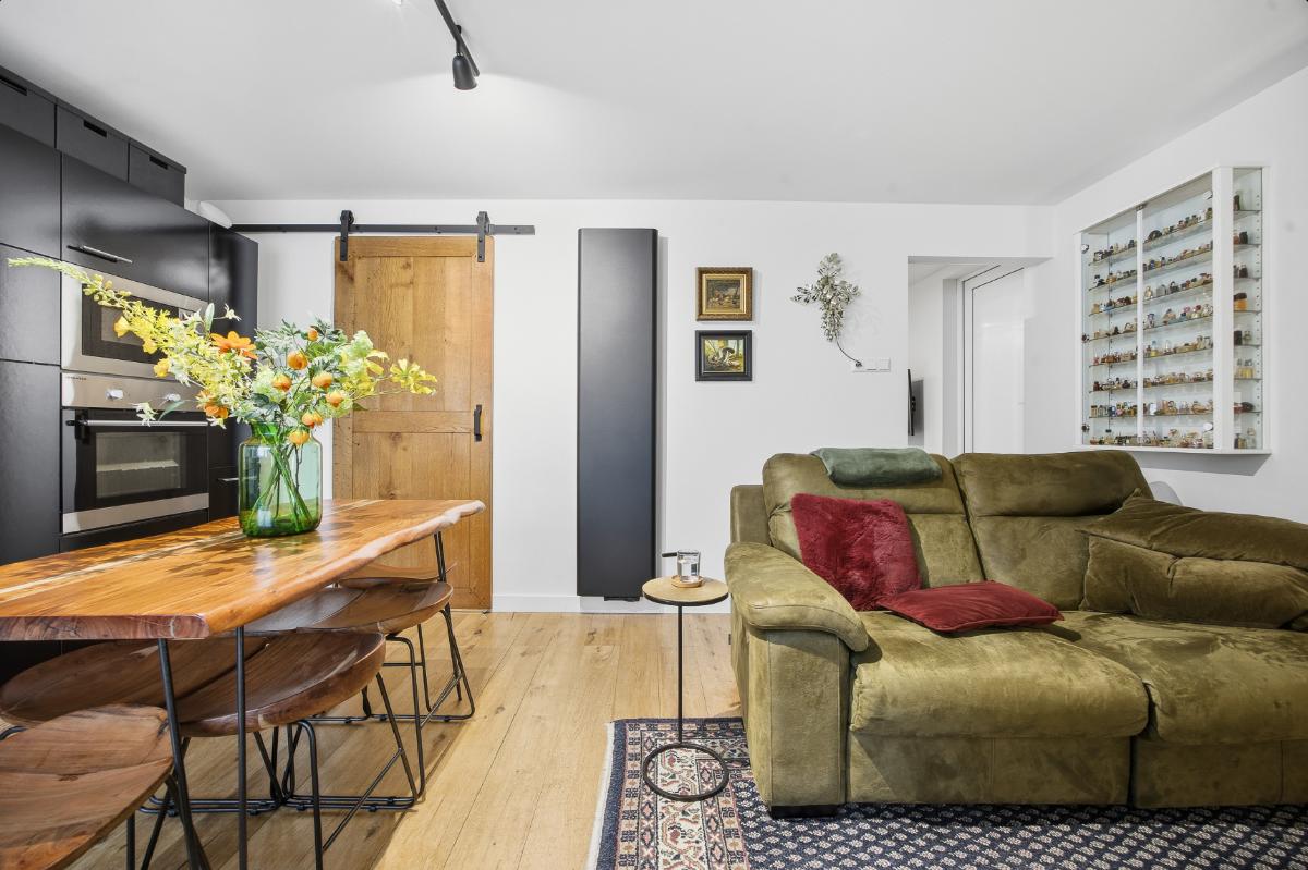 Begane grond: Hal-/entree voorzien van tegelvloer en toegangsdeur naar de woonkamer. De woonkamer is een gezellige leefruimte met elektrische sfeerhaard, openslaande deuren richting de binnentuin, toegang tot de keuken en de trapopgang naar de 1e verdieping. Ruime woonkamer met strak gestukte wanden en een klik pvc vloer. Half open moderne keuken (2023) voorzien van een wijnkoeler, een spoelbak, een warmwaterkraan, een 4-pits BORA inductie kookplaat, een combi-oven, een koel-vriescombinatie, een vaatwasser en een loopdeur naar de bijkeuken/ wasruimte en het toilet. Verder is er via de bijkeuken ook toegang tot de extra leefruimte.