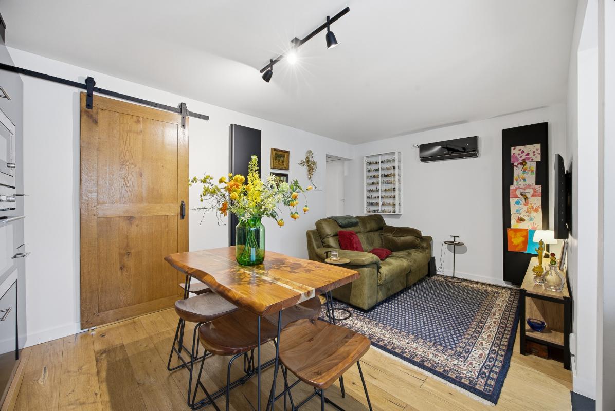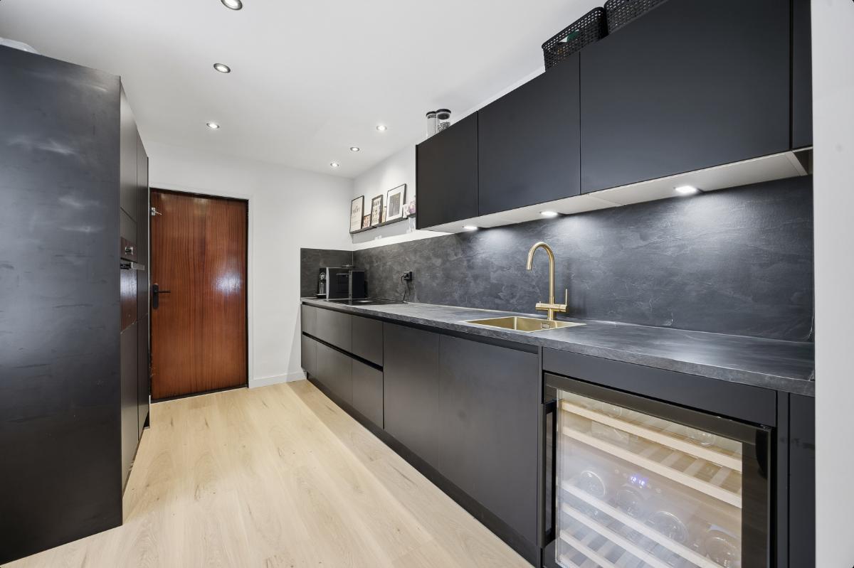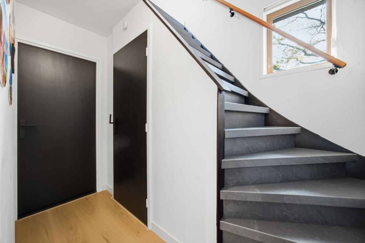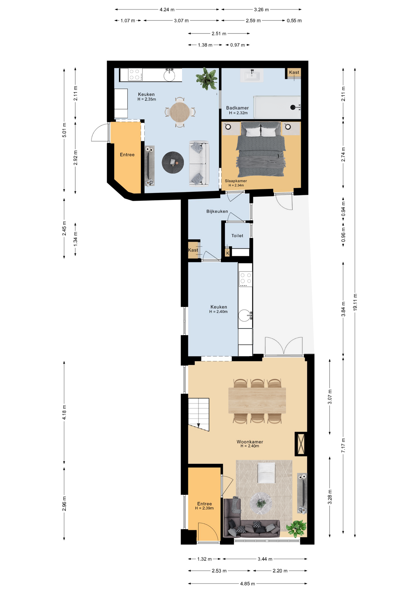 Begane grond: Hal-/entree voorzien van tegelvloer en toegangsdeur naar de woonkamer. De woonkamer is een gezellige leefruimte met elektrische sfeerhaard, openslaande deuren richting de binnentuin, toegang tot de keuken en de trapopgang naar de 1e verdieping. Ruime woonkamer met strak gestukte wanden en een klik pvc vloer. Half open moderne keuken (2023) voorzien van een wijnkoeler, een spoelbak, een warmwaterkraan, een 4-pits BORA inductie kookplaat, een combi-oven, een koel-vriescombinatie, een vaatwasser en een loopdeur naar de bijkeuken/ wasruimte en het toilet. Verder is er via de bijkeuken ook toegang tot de extra leefruimte.