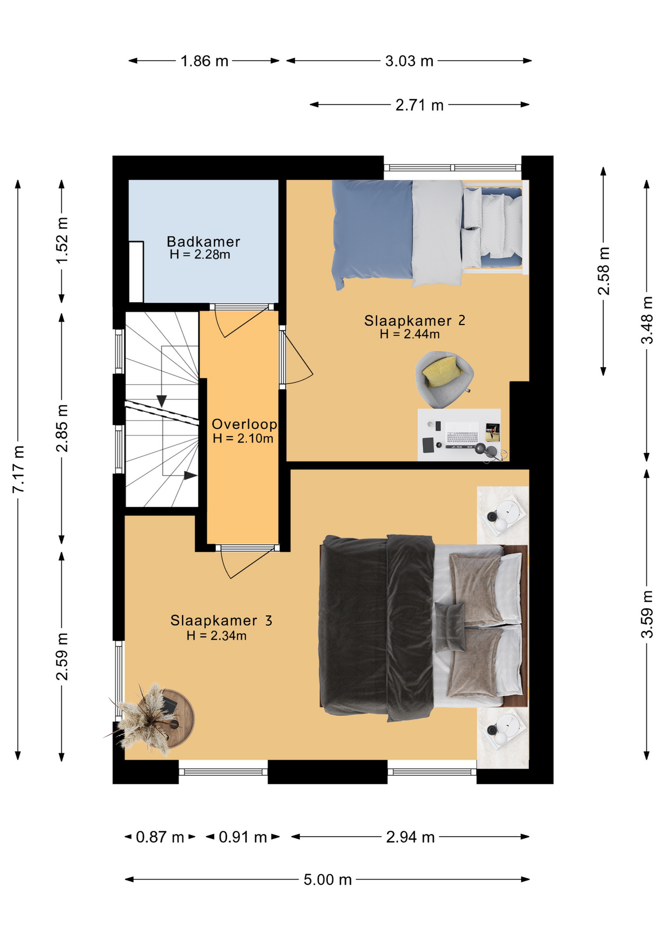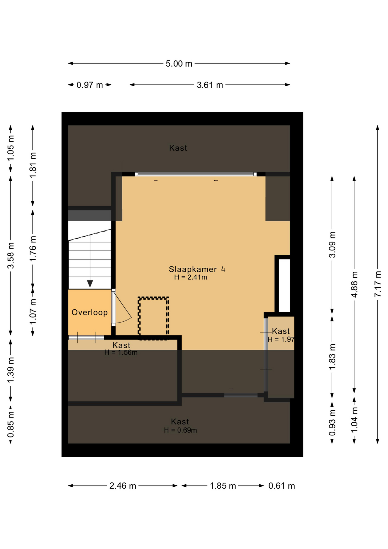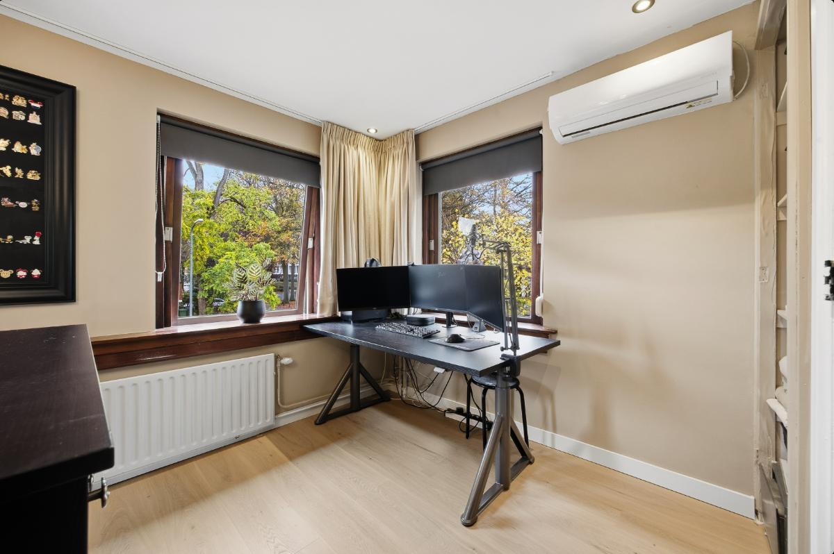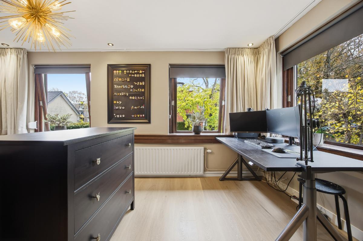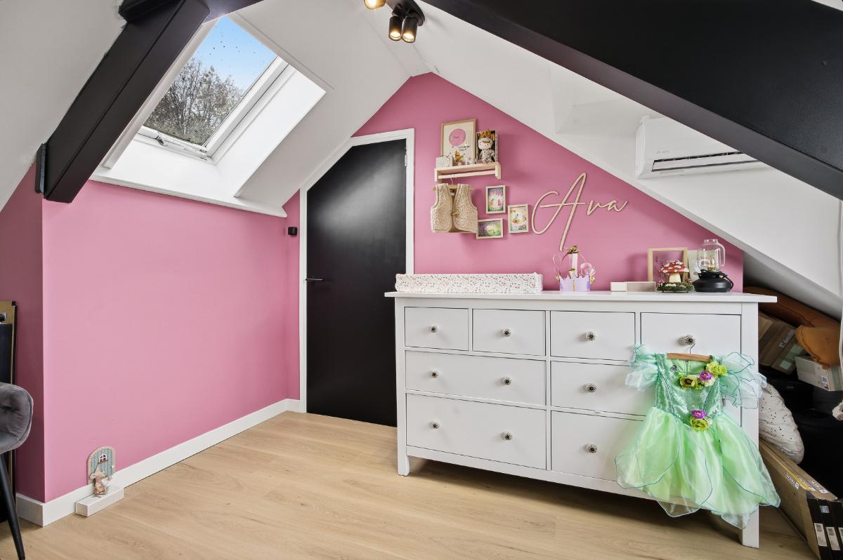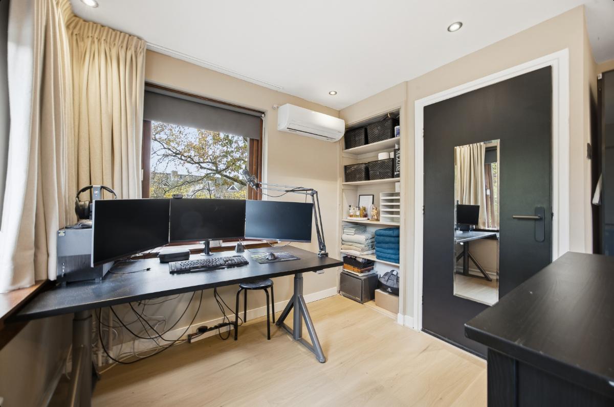 Tweede verdieping: Ook deze verdieping is weer voorzien van een keurige vloer. De slaapkamer (4) is voorzien van een dakraam en een dakkapel welke voor extra ruimte zorgt. Deze kamer is ook voorzien van een airco. Verder is er bergruimte in de schuinten van het dak.