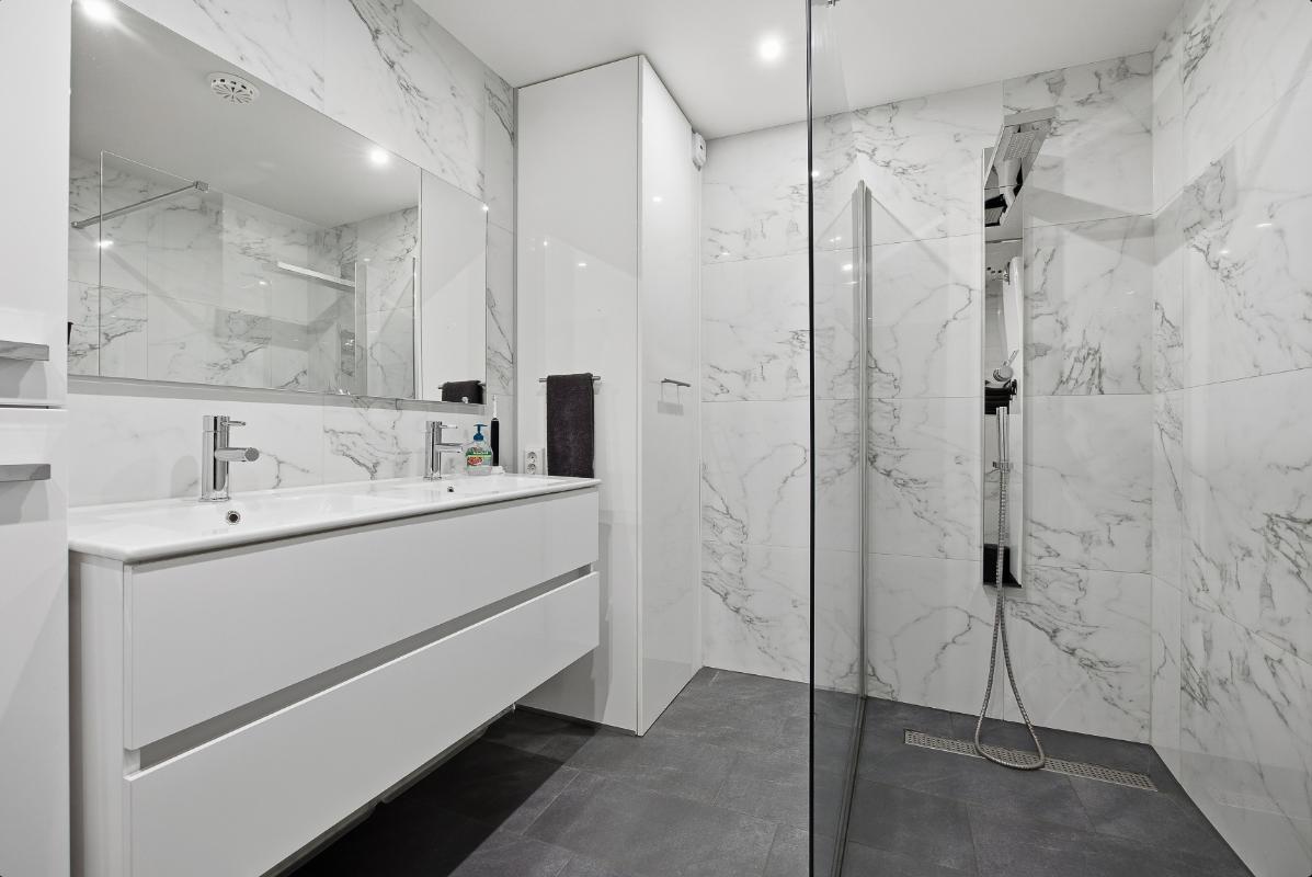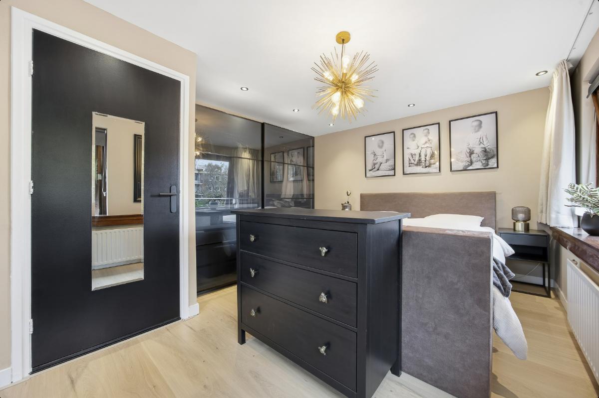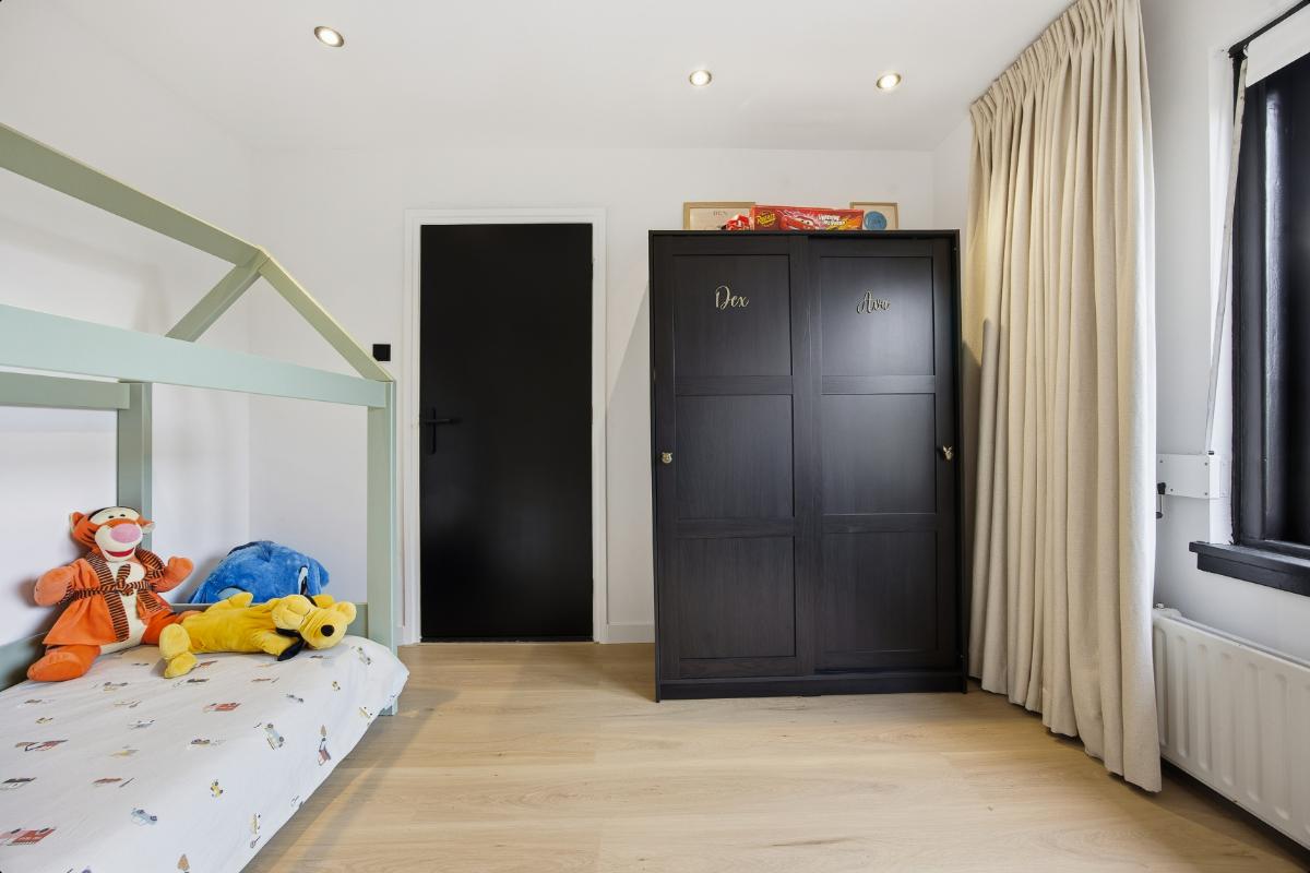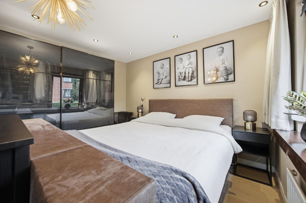 Eerste verdieping: Op deze verdieping zijn eveneens de wanden en vloeren keurig verzorgd. Vanuit de overloop is de toegang tot de slaapkamers en de badkamer. Slaapkamer (2) ligt aan de achterzijde en is door de grote raampartij voorzien van veel lichtinval. Tevens zijn er spots verwerkt in het plafond. Slaapkamer (3) is gelegen aan de voorzijde en heeft tevens veel lichtinval door de grote raampartij. Deze is voorzien van een airco en eveneens van spots in het plafond. De badkamer is voorzien van een modern wastafelmeubel, een ligbad en een 2e toilet.