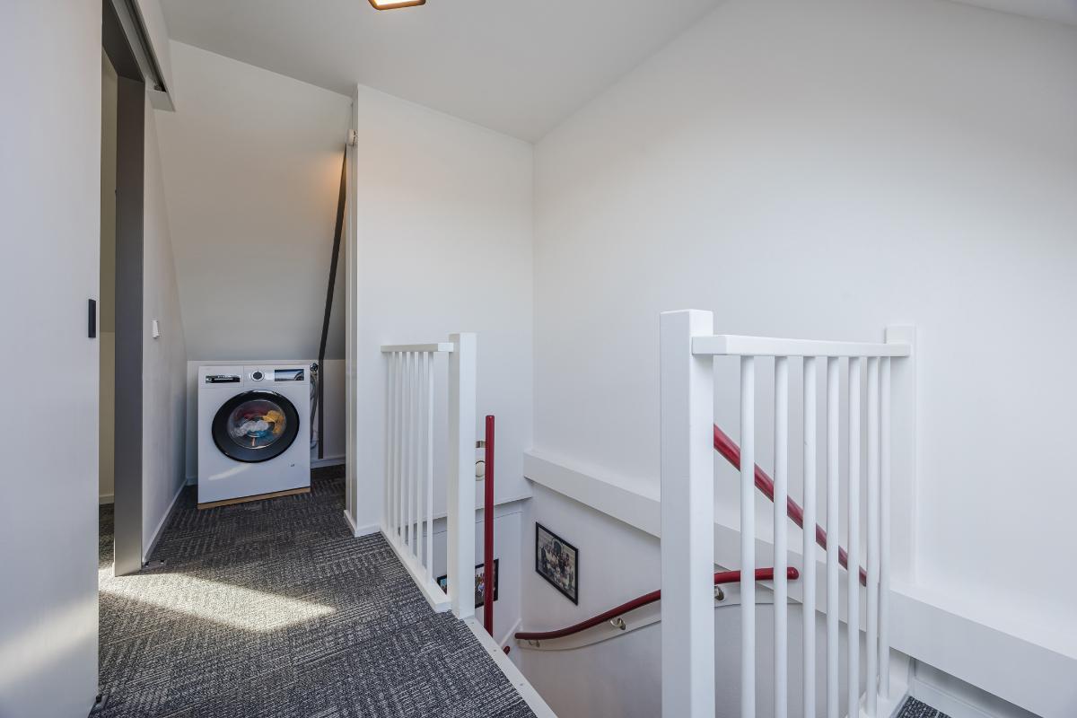 De moderne keuken is aan de voorzijde van de woning gesitueerd en is voorzien van eigentijdse inbouwapparatuur, waaronder een inductiekookplaat, combi-oven, vaatwasser en koel-vriescombinatie. De stijlvolle afwerking en praktische indeling maken deze keuken tot een plezierige plek om te koken en samen te komen.
