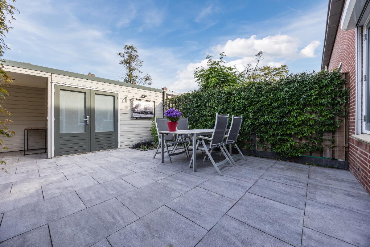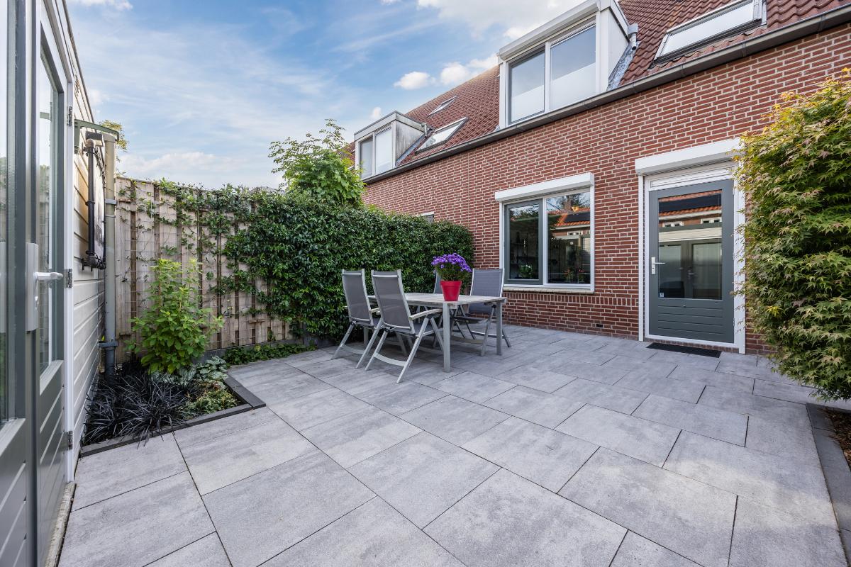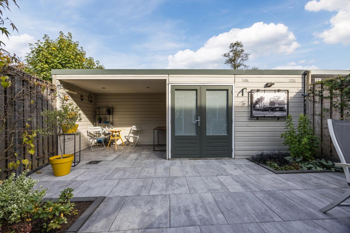 Tuin en buitenruimte Aan de voorzijde beschikt de woning over een nette voortuin op het westen, die zorgt voor een representatieve entree en een prettig uitzicht vanuit de keuken. Hier kunt u in de namiddag nog heerlijk genieten van de zon. De achtertuin is verzorgd en praktisch ingedeeld, met een gunstige ligging op het oosten. Hier geniet u van de ochtendzon bij het ontbijt of een ontspannen kop koffie. Achterin de tuin bevindt zich een berging, ideaal voor het opbergen van fietsen en tuingereedschap.