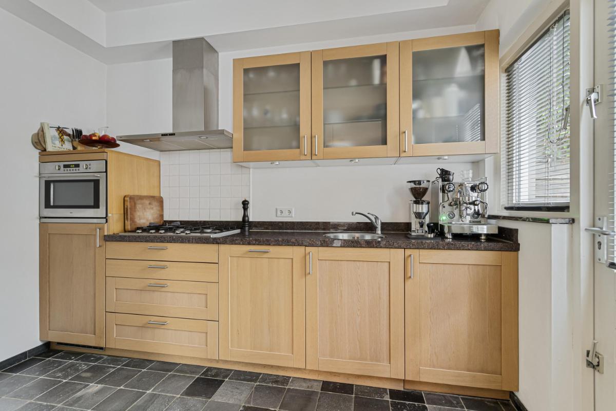 KEUKEN Complete keuken (ca. 3.31 x 2.00 / 2.48m.) in wandopstelling en gelegen aan de achterzijde. De keuken is uitgerust met o.a. een 5 pits gasfornuis, vaatwasser, combi-oven/magnetron, rvs afzuigkap, spoelbak, koelkast en diverse (op) bergkasten. In de keuken bevindt zich tevens de CV-ketel en daarnaast is vanuit deze ruimte de tuin én naastgelegen badkamer te bereiken.