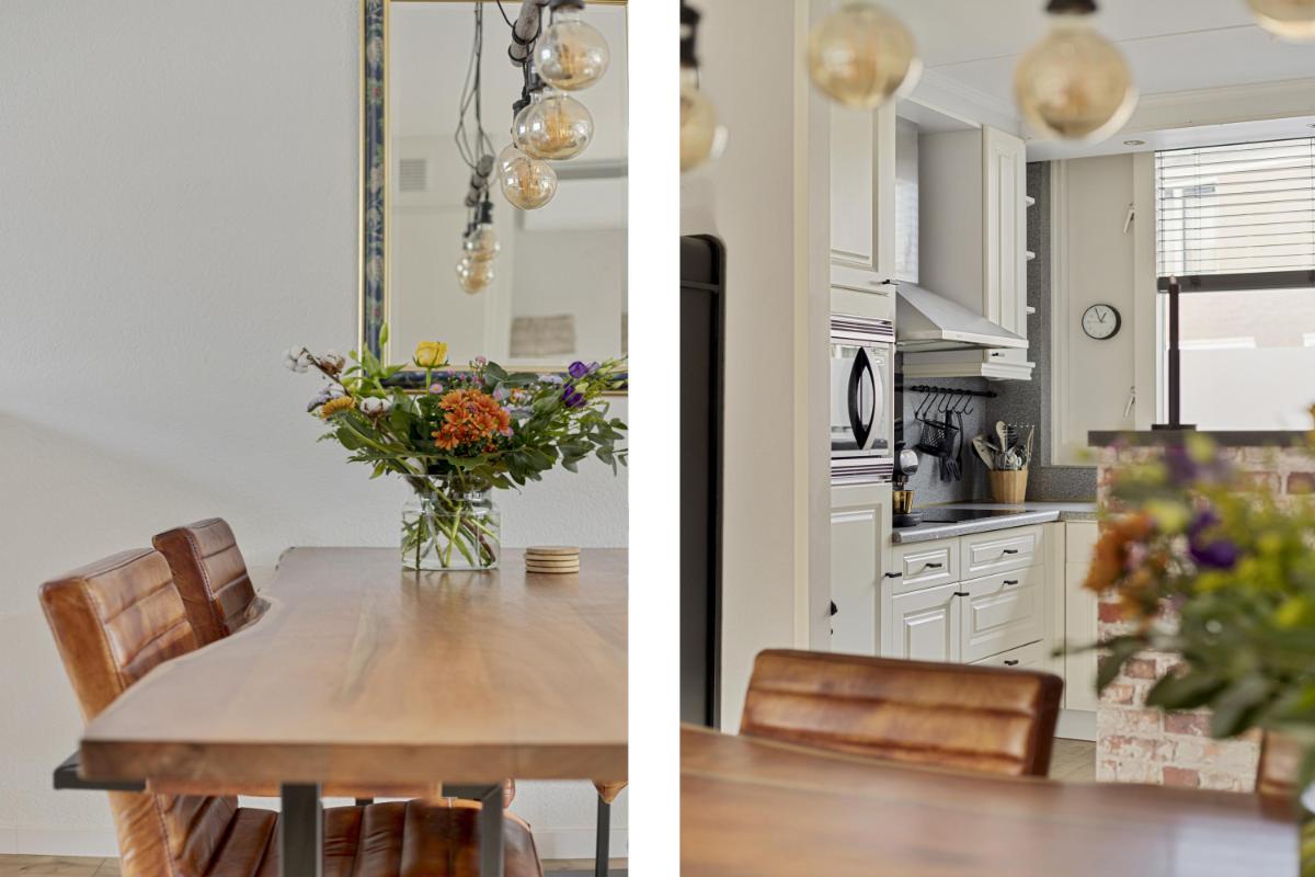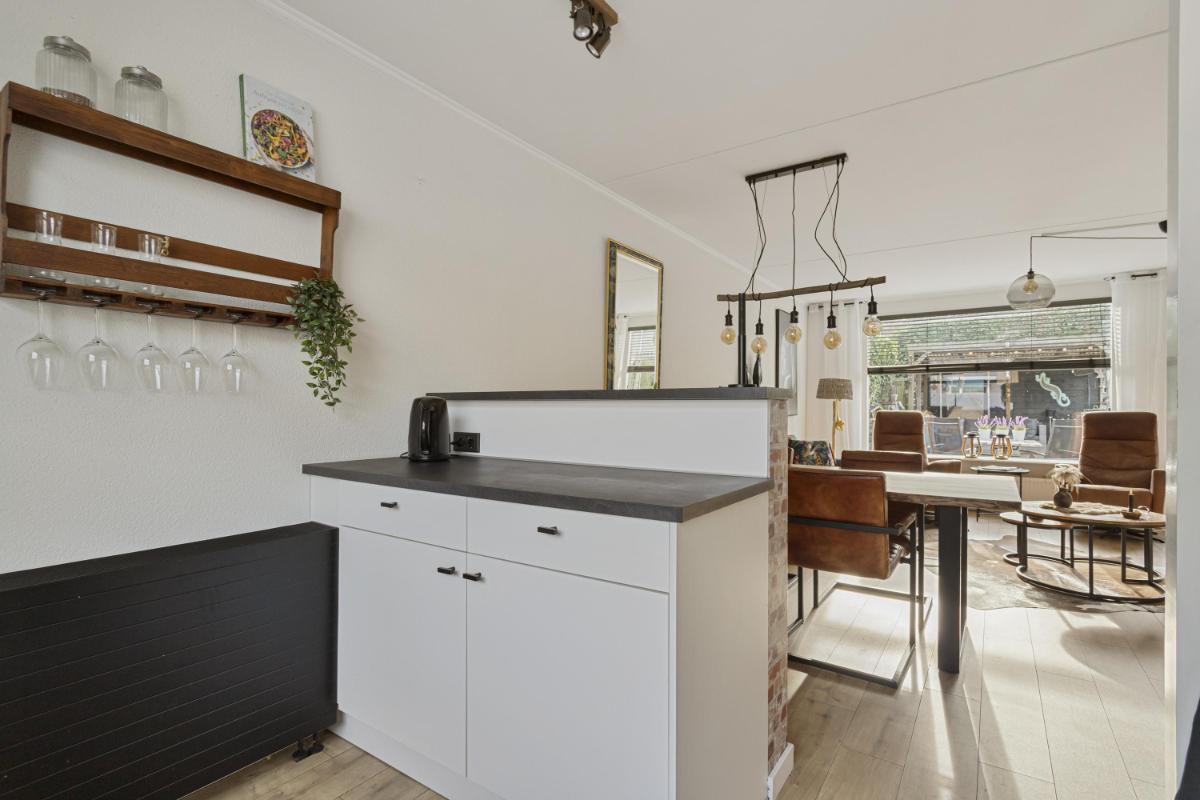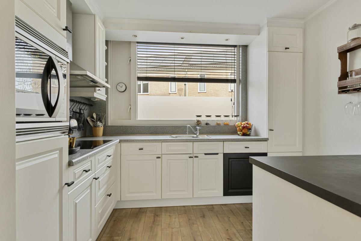 KEUKEN Complete keuken in hoekopstelling en handige kastenwand gelegen aan de voorzijde van de woning. De keuken is uitgerust met o.a. een koelkast, 4 pits inductiekookplaat (2023), rvs-afzuigkap, vaatwasser, spoelbak, magnetron en diverse onder- en bovenkasten.