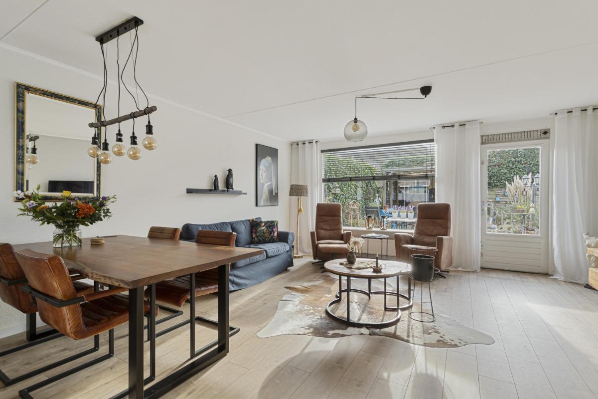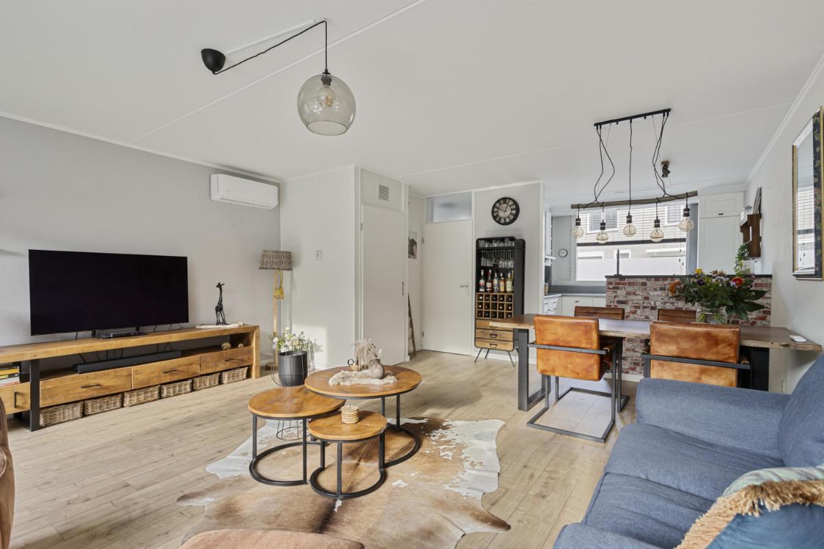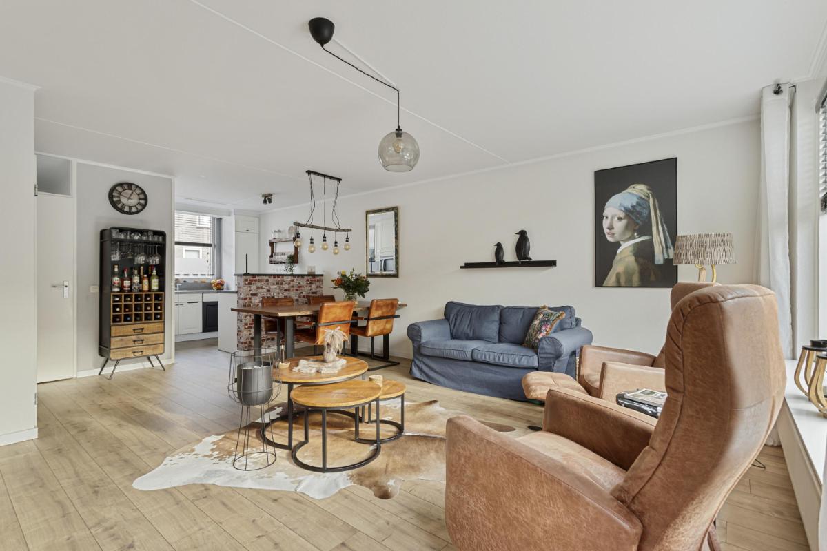 WOONKAMER Ruime, lichte woonkamer (ca 32m²) met laminaatvloer, airconditioning (2025) en praktische vaste trapkast voor voldoende bergruimte. De woonkamer staat aan de achterzijde in direct tuincontact middels de tuindeur en aan de voorzijde in verbinding met de open keuken.