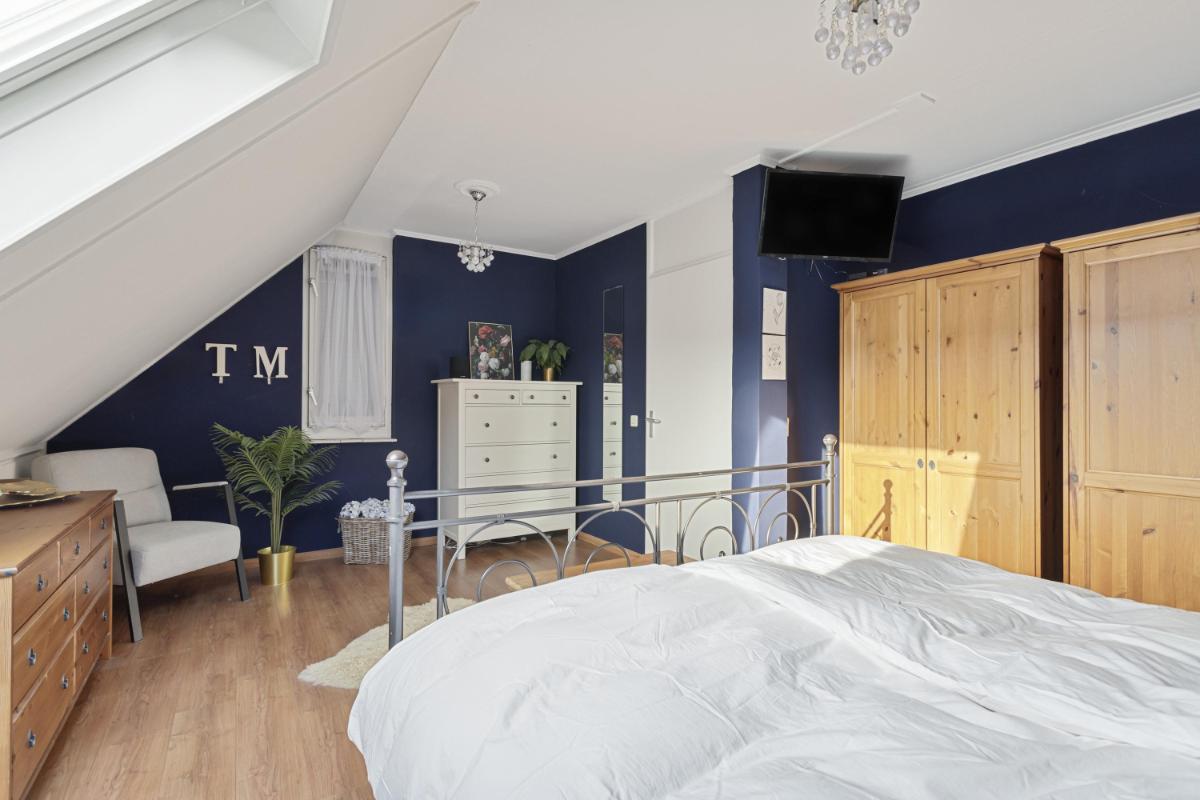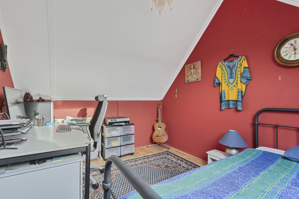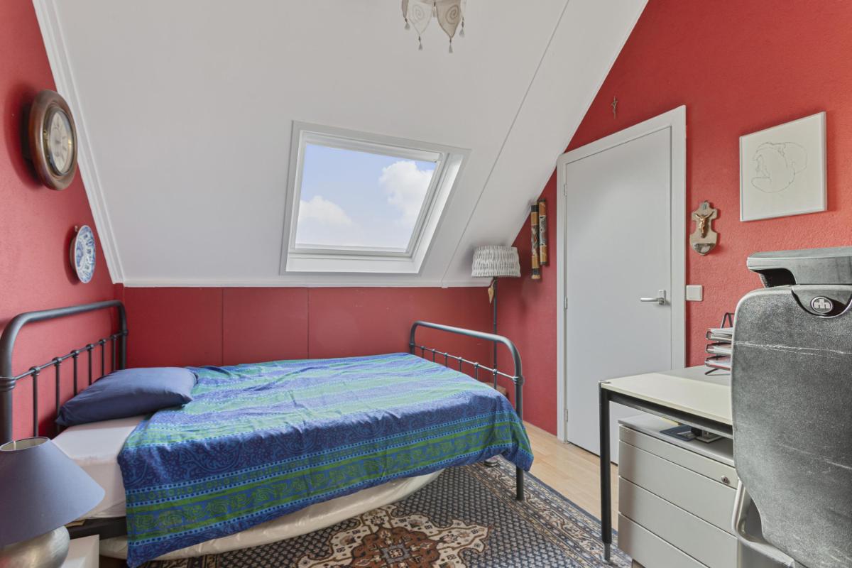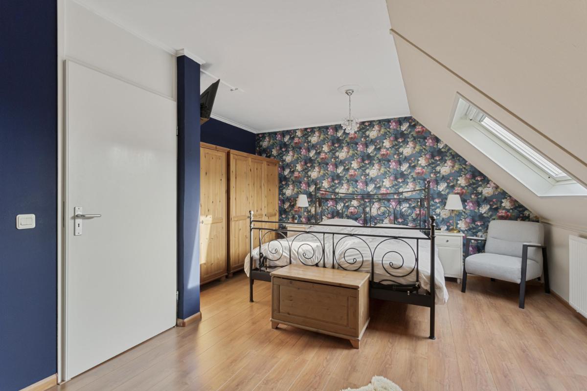 SLAAPKAMER II Zeer royale (ouder) slaapkamer gelegen aan de achterzijde met laminaatvloer en enorm veel lichtinval middels het VELUX-dakraam (met verduistering) en zijraam (met rolluik). Deze kamer is eenvoudig terug te brengen naar de oorspronkelijke 2 slaapkamers indien gewenst.