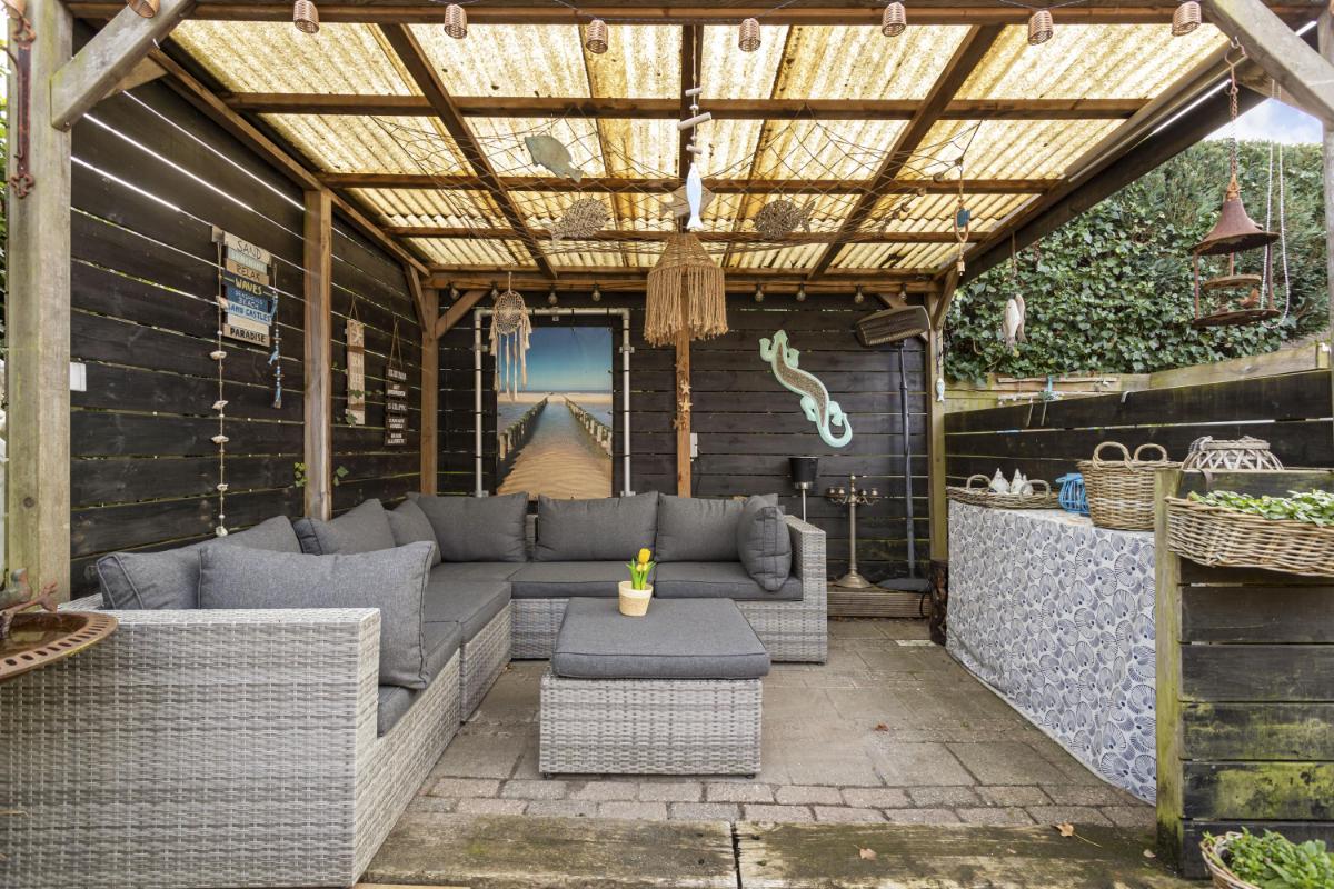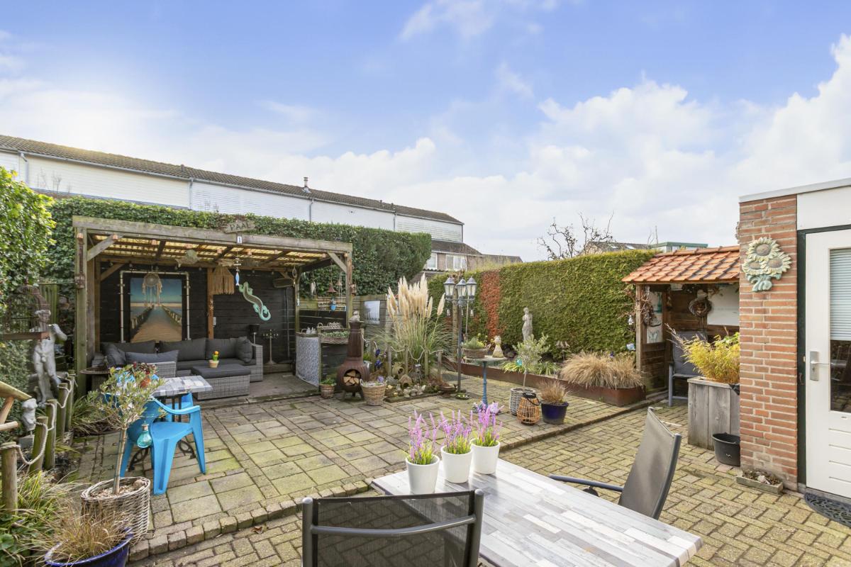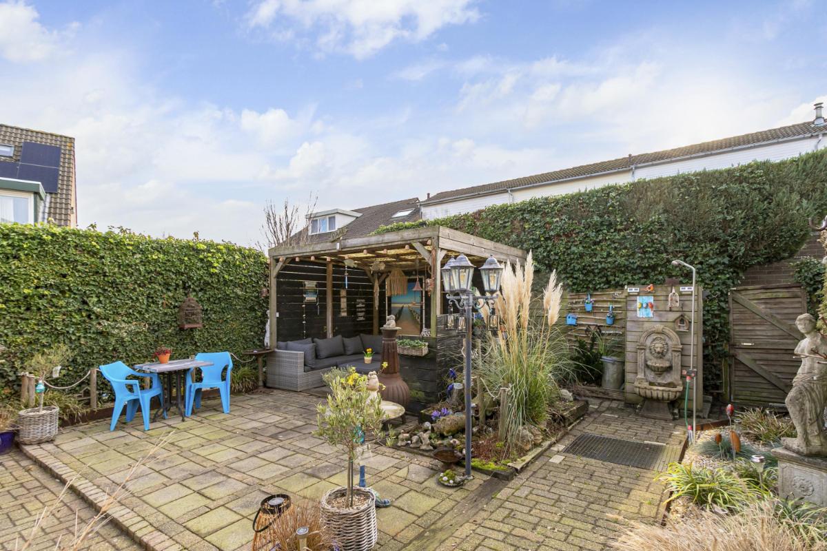 TUIN Verzorgd aangelegde achtertuin gelegen op het zonnige zuiden en voorzien van bestrating, borders met beplanting, buitendouche, overkapping, waterkraan, praktische afscheiding voor de containers, een achterom en een (elektrisch bedienbaar) zonnescherm aan de achtergevel. Vanuit de tuin is daarnaast toegang tot de wellnessruimte en berging. De voortuin is eveneens verzorgd aangelegd en voorzien van een border met beplanting.