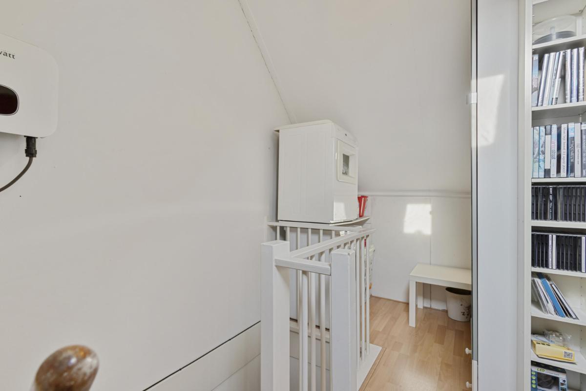 TWEEDE VERDIEPING Overloop met de aansluitingen ten behoeve van de wasapparatuur, omvormer voor de zonnepanelen, bergruimte achter het knieschot, dakraam en toegang tot de 3e slaapkamer.