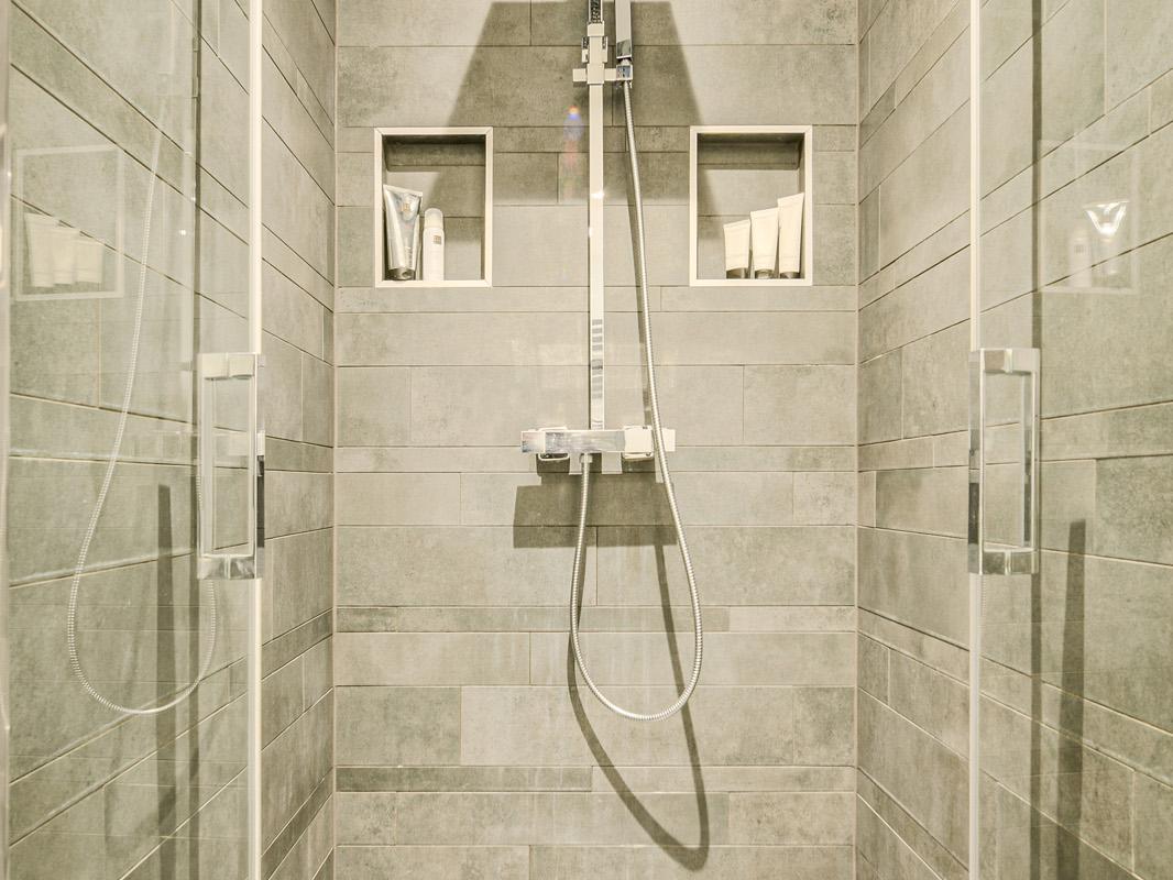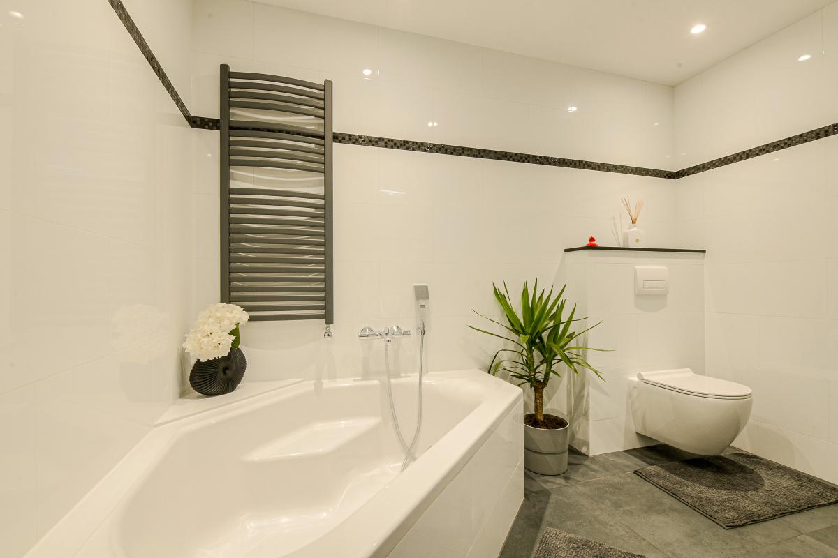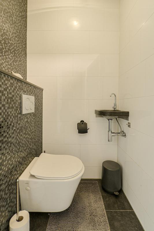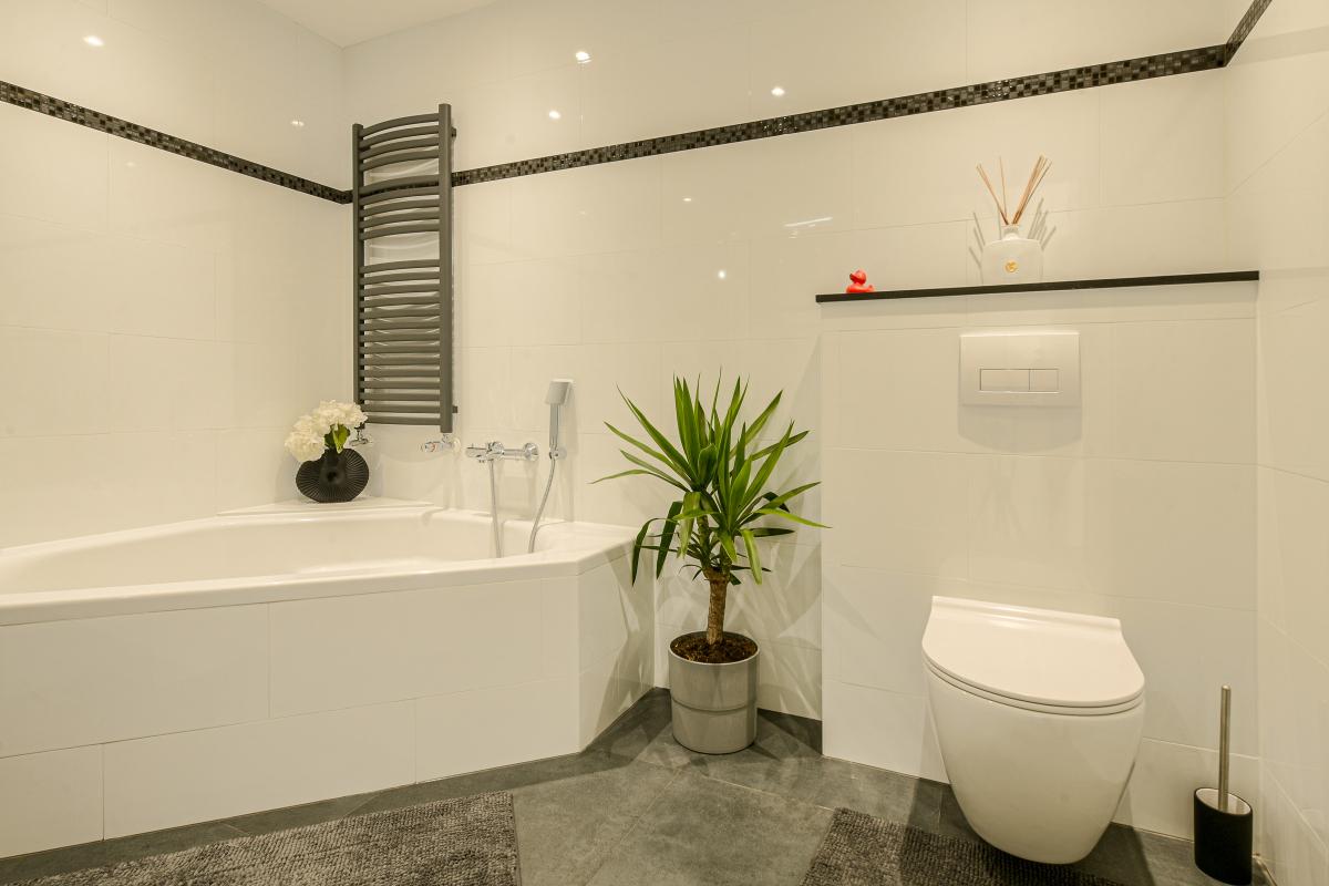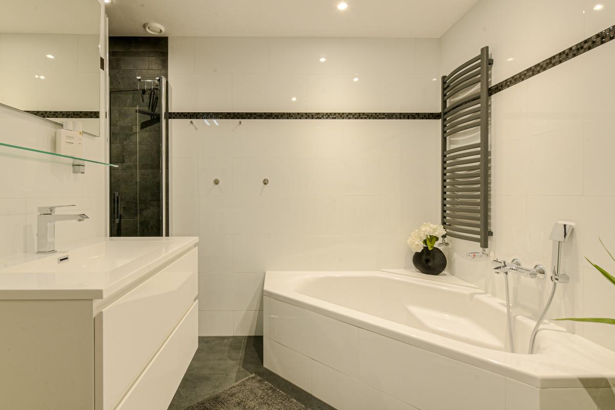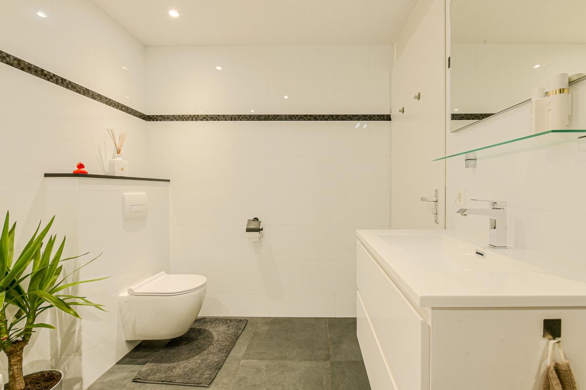 Badkamer & toilet De badkamer op de eerste verdieping (2020) heeft een moderne indeling met een hoekbad, inloopdouche, tweede toilet, wastafelmeubel en een verlaagd plafond met inbouwspots. Het toilet op de begane grond is in 2019 vernieuwd en voorzien van een fonteintje.