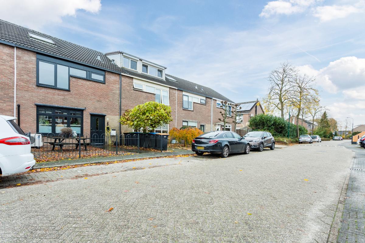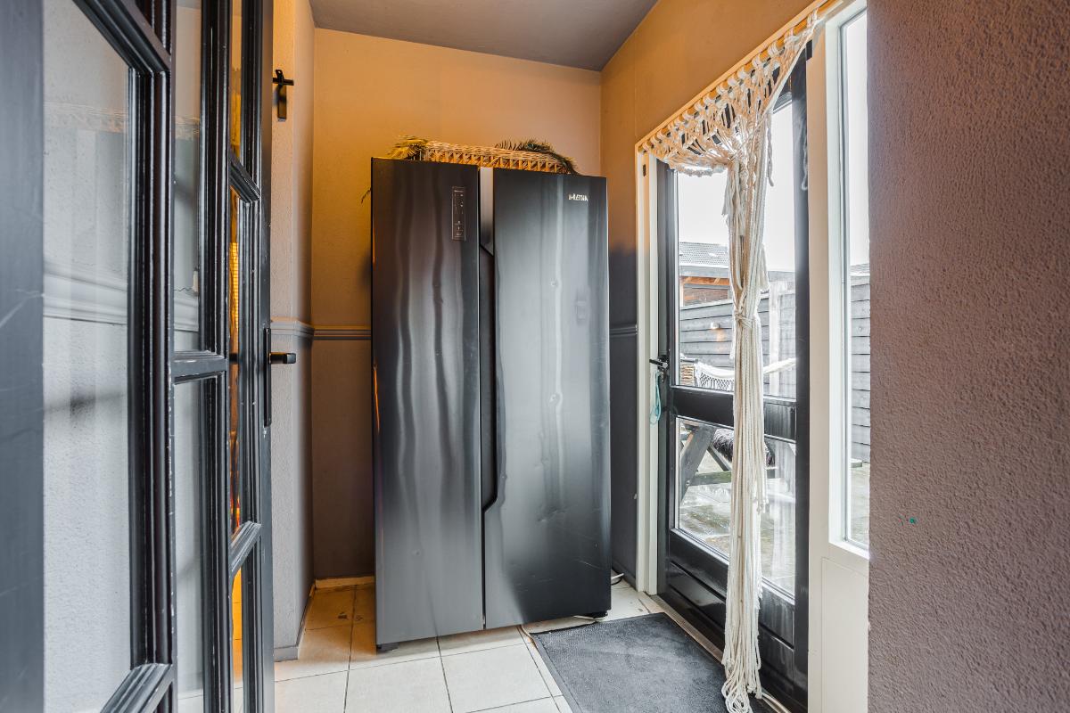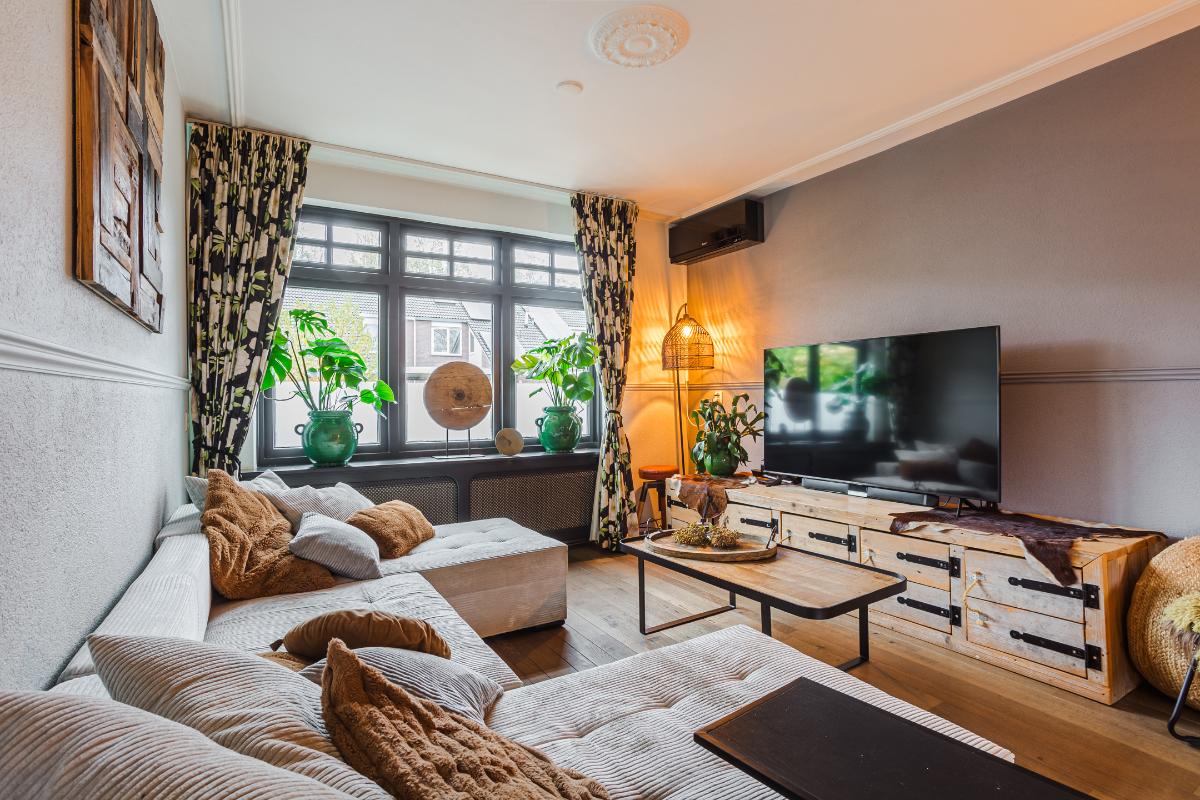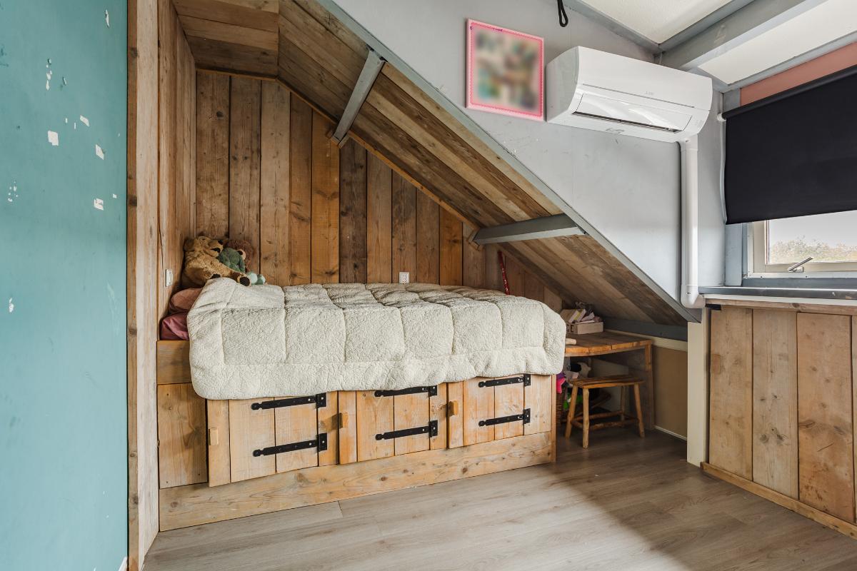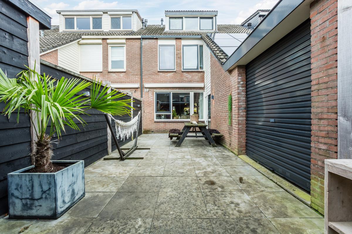 Indeling Begane grond: Bij binnenkomst tref je een nette hal met toilet, meterkast, vaste kast en de trapopgang. De sfeervolle woonkamer is voorzien van een houten vloer, spachtelputz wanden, een trapkast en een airco (2024) – ideaal voor zowel warme zomers als koele winters. De open keuken is compleet uitgerust met diverse inbouwapparatuur, waaronder een 6-pits gasfornuis, oven, afzuigkap, koelkast en vaatwasser. Aangrenzend bevindt zich de hal met toegang tot de handige bijkeuken/berging met directe toegang tot de tuin. De achtertuin is volledig betegeld en voorzien van schuttingen, een ruime veranda met bar en een berging – een heerlijke plek om te ontspannen of vrienden te ontvangen.