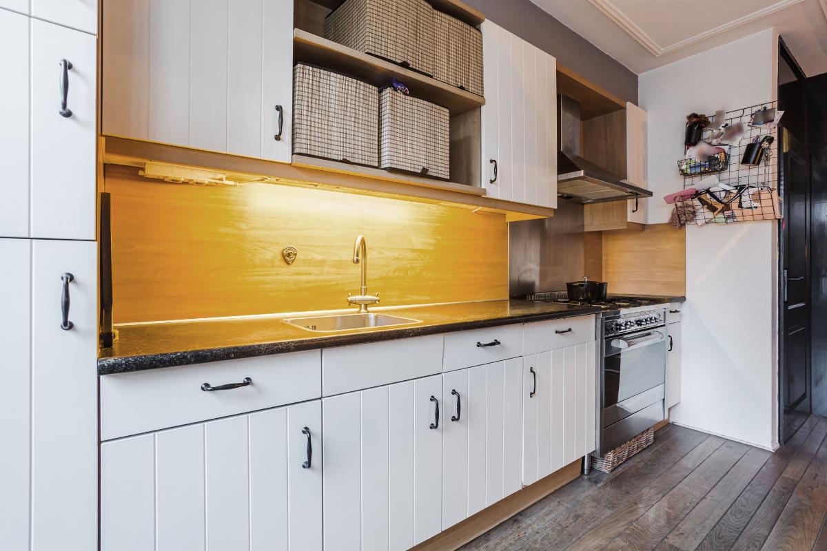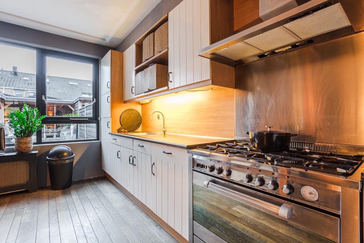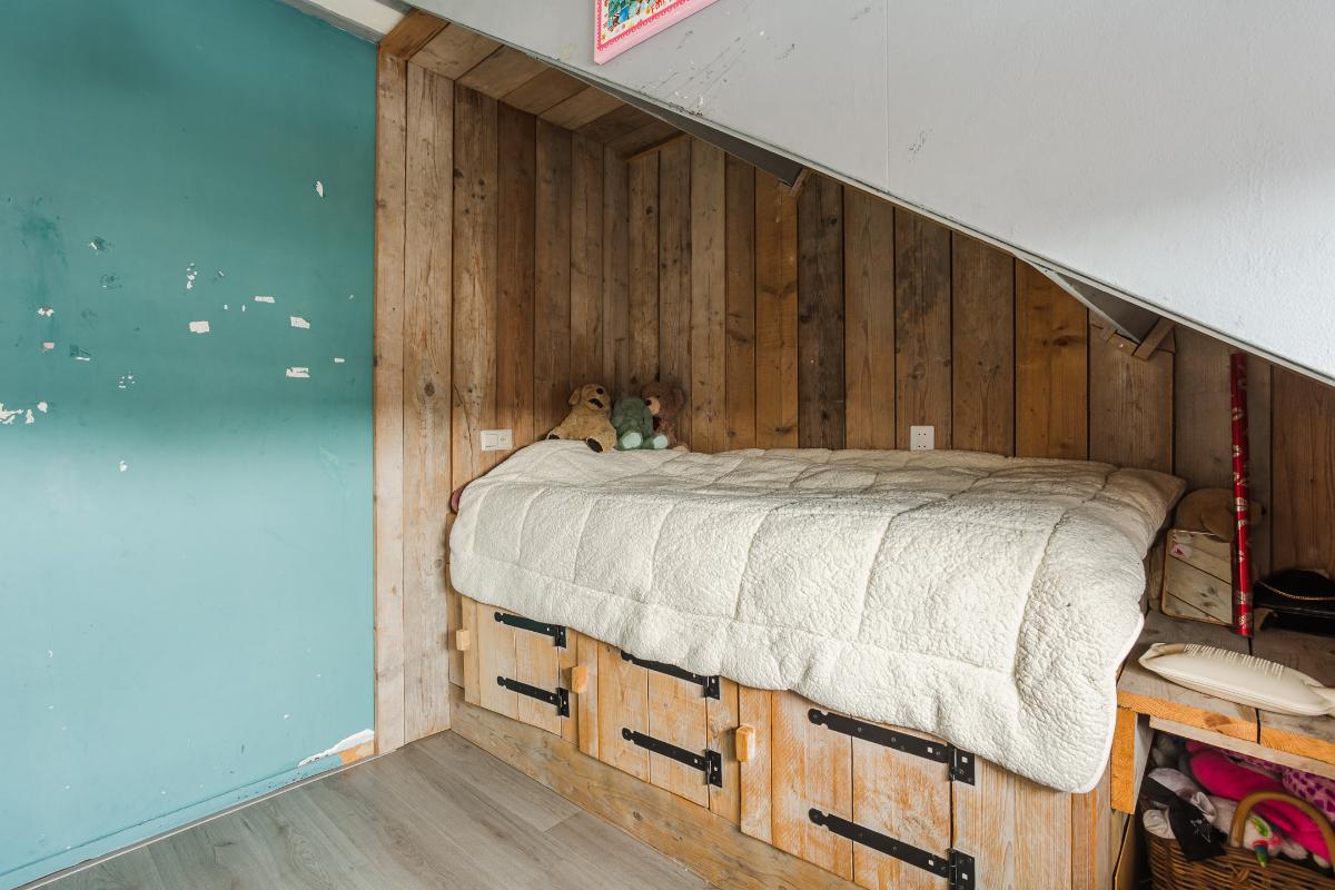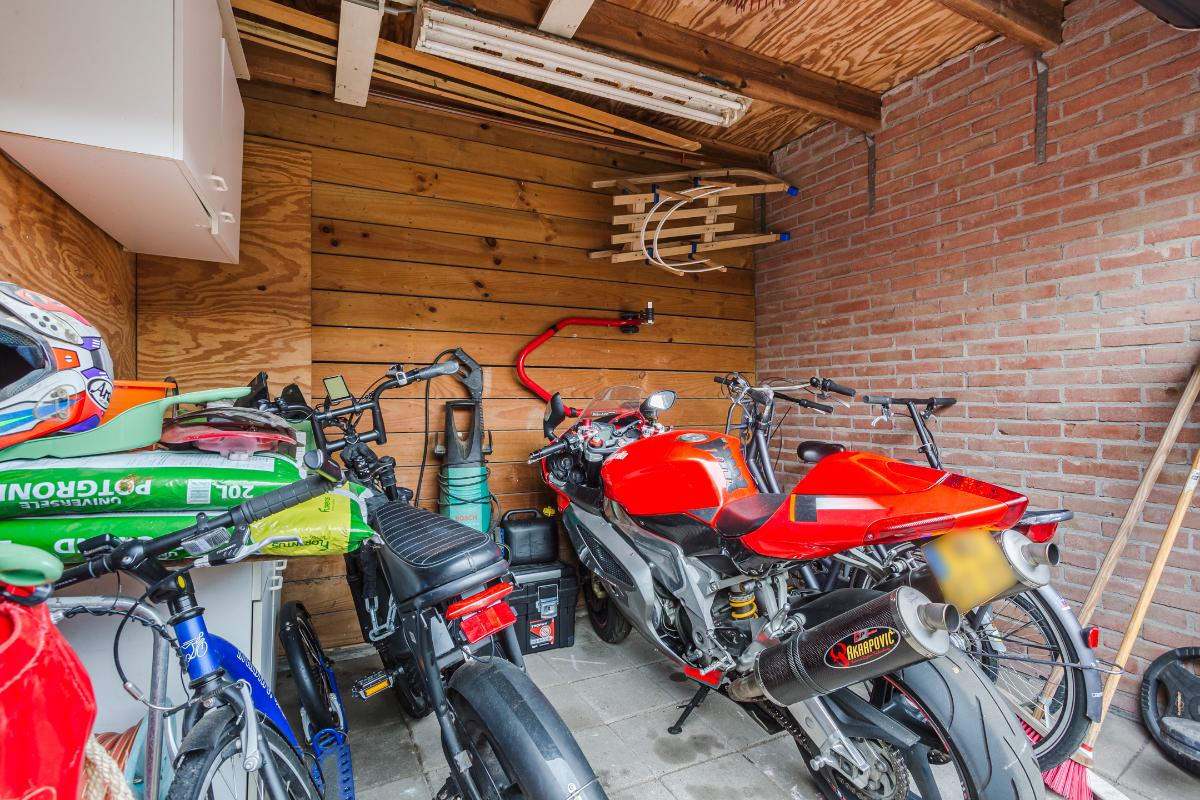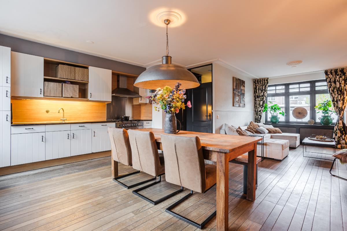Indeling Begane grond: Bij binnenkomst tref je een nette hal met toilet, meterkast, vaste kast en de trapopgang. De sfeervolle woonkamer is voorzien van een houten vloer, spachtelputz wanden, een trapkast en een airco (2024) – ideaal voor zowel warme zomers als koele winters. De open keuken is compleet uitgerust met diverse inbouwapparatuur, waaronder een 6-pits gasfornuis, oven, afzuigkap, koelkast en vaatwasser. Aangrenzend bevindt zich de hal met toegang tot de handige bijkeuken/berging met directe toegang tot de tuin. De achtertuin is volledig betegeld en voorzien van schuttingen, een ruime veranda met bar en een berging – een heerlijke plek om te ontspannen of vrienden te ontvangen.