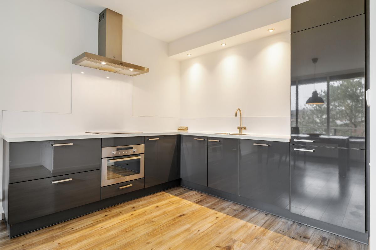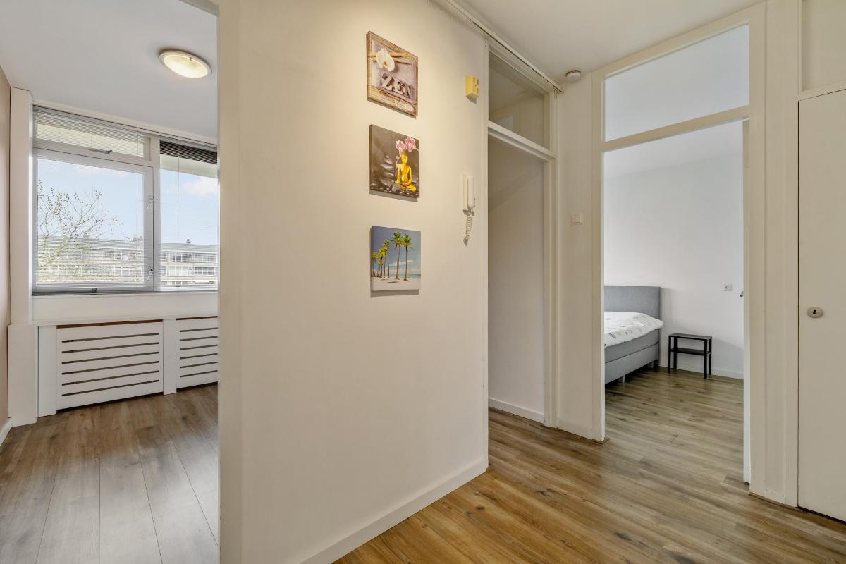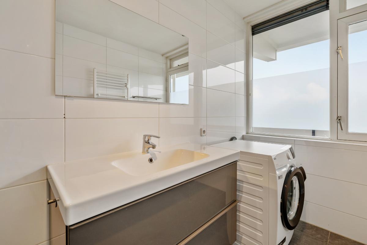 Galerij, entree, vestibule, hal met meterkast en opslagkast. Royale living met aansluitend een grote eetkeuken voorzien van een L-vormige keuken die is voorzien diverse inbouwapparatuur zoals een 4-pits inductiekookplaat, oven, vaatwasser, koel/vriescombinatie en vaste servieskast. Vanuit de keuken is het ruime balkon bereikbaar dat op het westen is gelegen. Aan de voorzijde van het appartement bevinden zich twee slaapkamers. Luxe, ruime badkamer met inloopdouche, wastafelmeubel en aansluiting voor de wasmachine en droger.