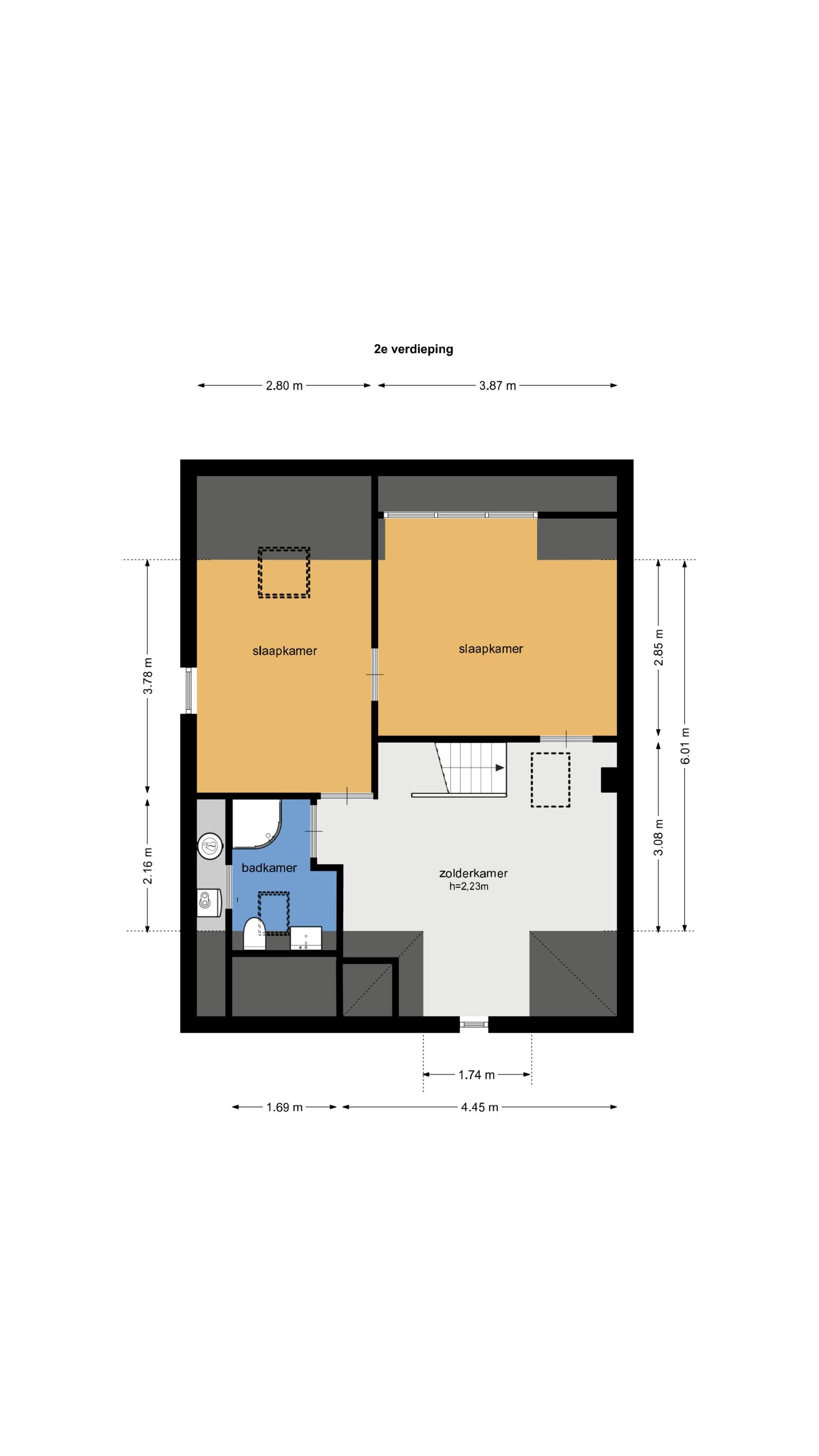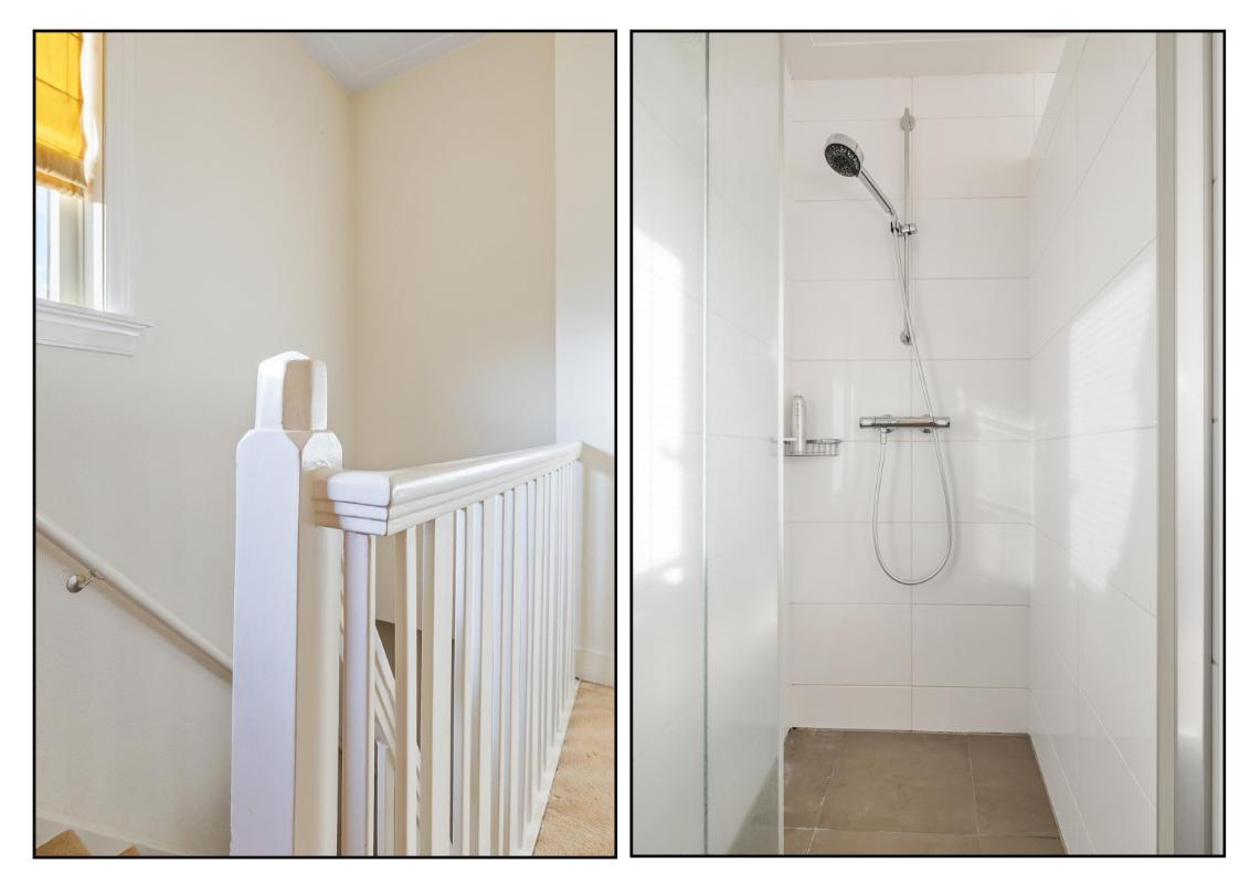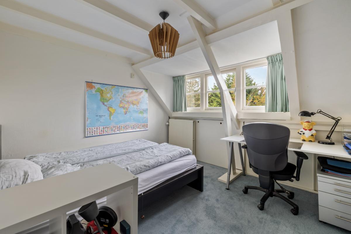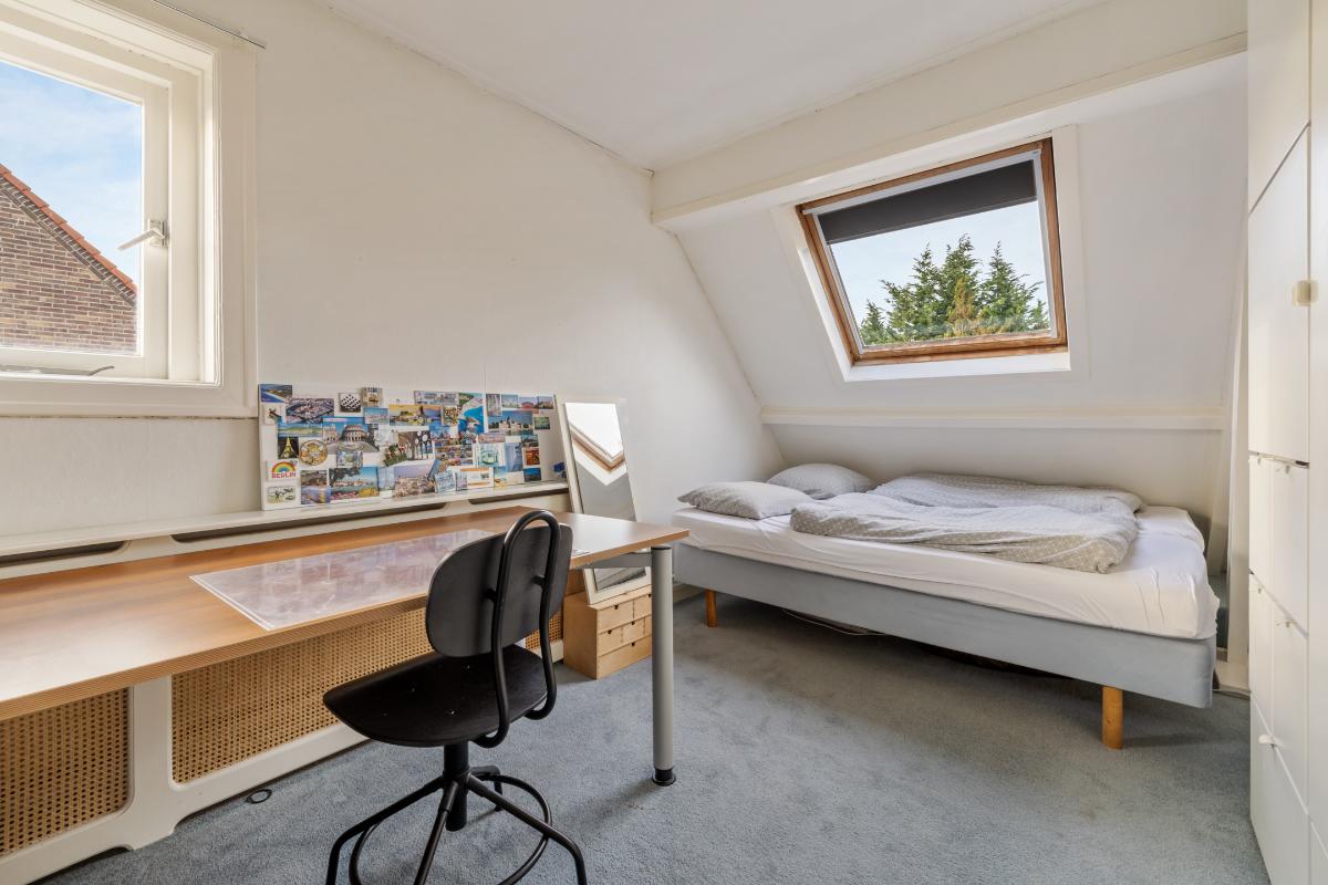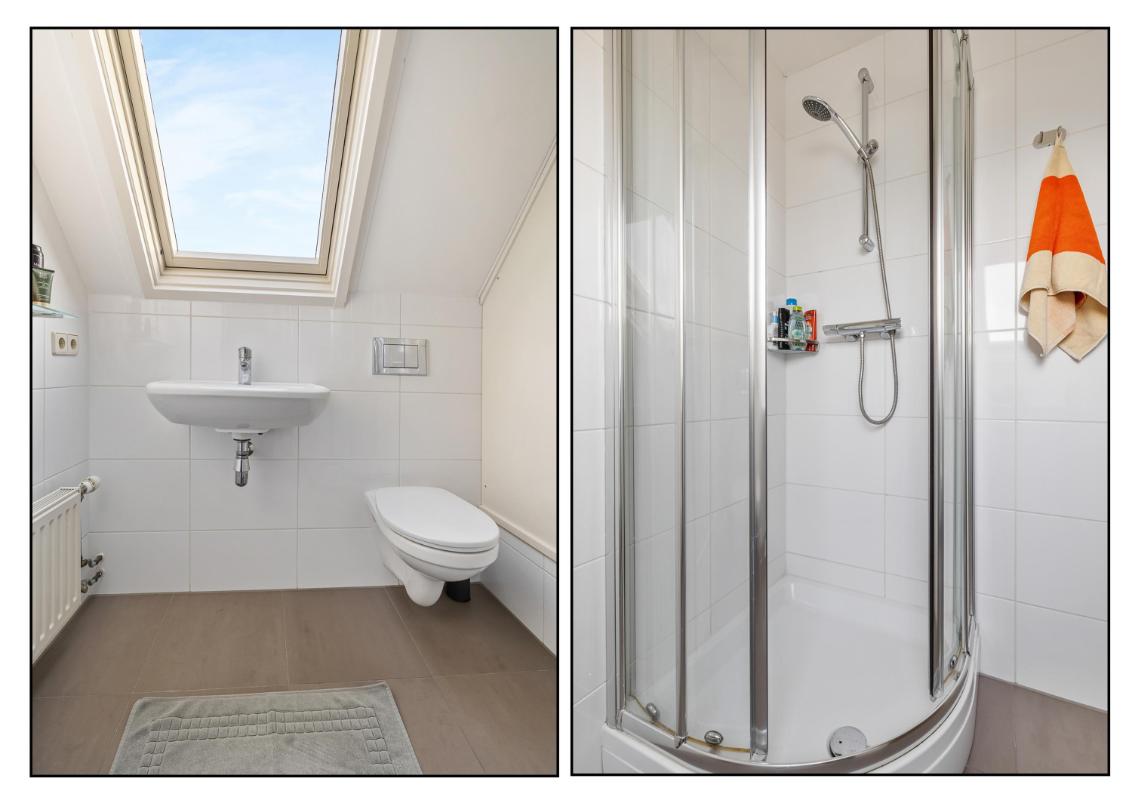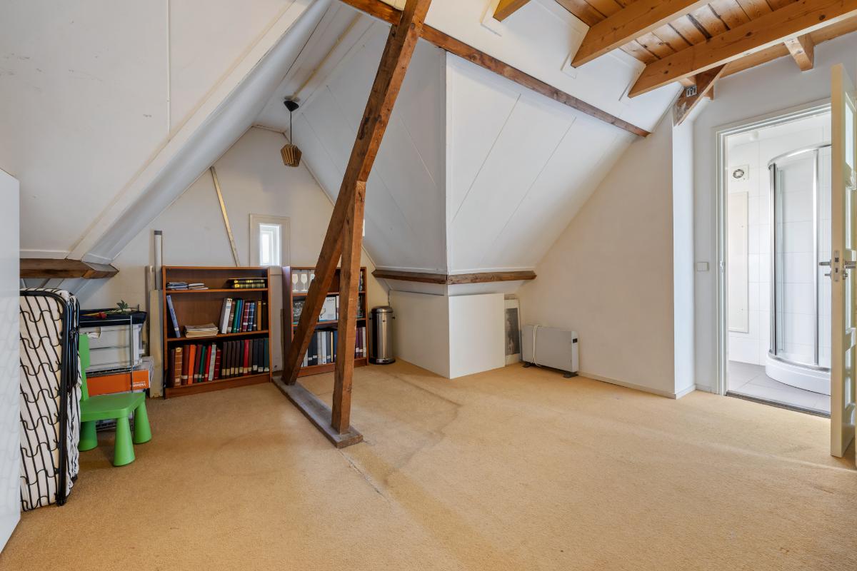 Tweede verdieping: • Via een vaste trap bereikbare zolderverdieping met grote open speelruimte • 2 royale slaapkamers waarvan één met dakkapel en de ander met een groot Velux dakraam. • De tweede badkamer is voorzien van een douche, toilet en een wastafel